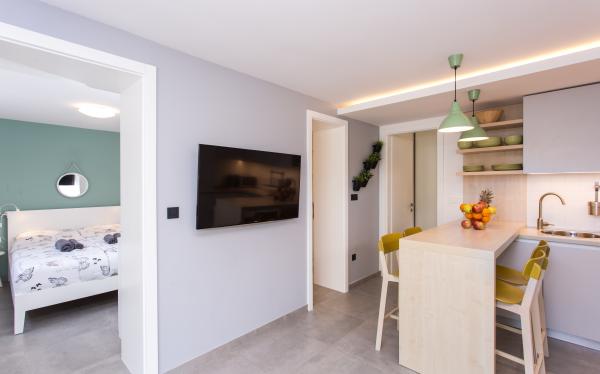 I recommend the apartments, I recommend the host, very nice and helpful. You feel taken care of from the very beginning. My apartment was fully equipped, we were welcomed with fruit and rakija and the children with sweet treats. On-site SUP board, bicycle, laundry. Literally 3 minutes to the beach, a bakery, restaurant and ice cream nearby. The owner will answer all your questions and advise you how to find your way around.
