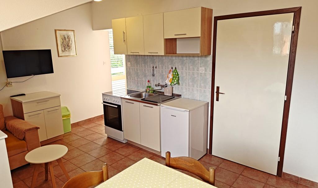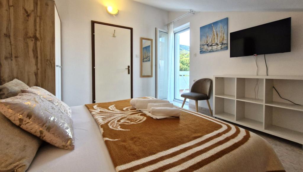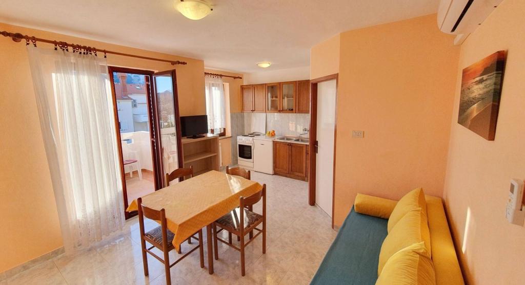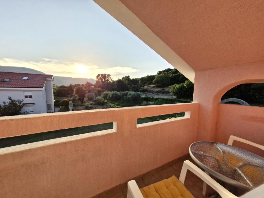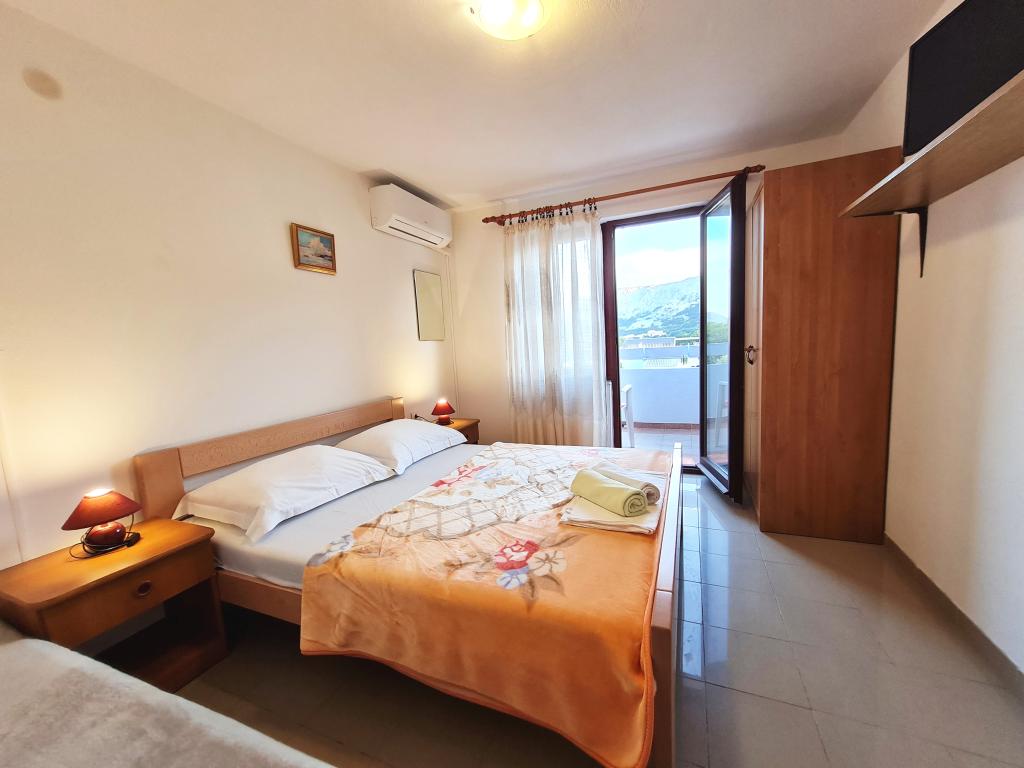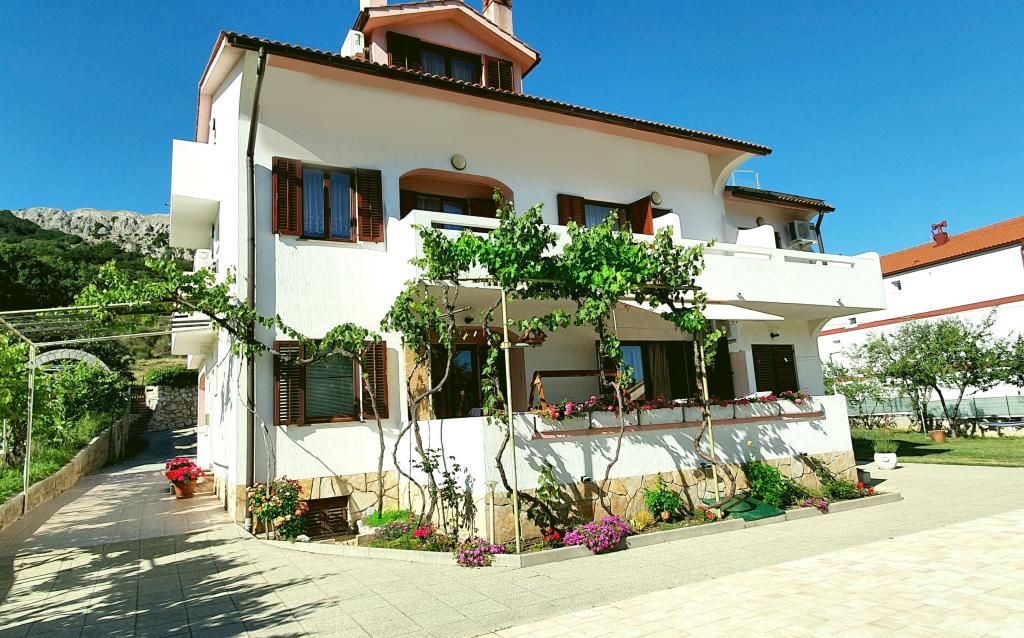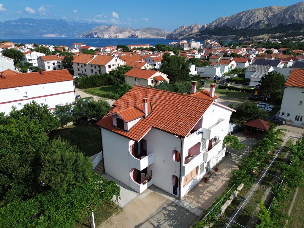 Apartments Mirjana Fičor are located in Baška, the most popular summer resort on the island of Krk, known for its most beautiful sandy beach. The apartments are located in a family house, we are in a quiet location, only 8 minutes walk to the beautiful beach and the same distance to the town center. Each apartment has a balcony with a beautiful view of the sea or the mountains surrounding Baška. We have a spacious parking lot in front of the house. We also have a large fenced garden, with lots of olive trees, fruit trees, lavender. Suitable for families with children. We have a total of 6 apartments. There is also an outdoor barbecue. Each apartment has air conditioning, satellite TV and free internet. We wish you a pleasant stay with us. Welcome. Family Mirjana and Vlatko Fičor, Baška