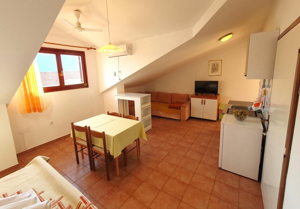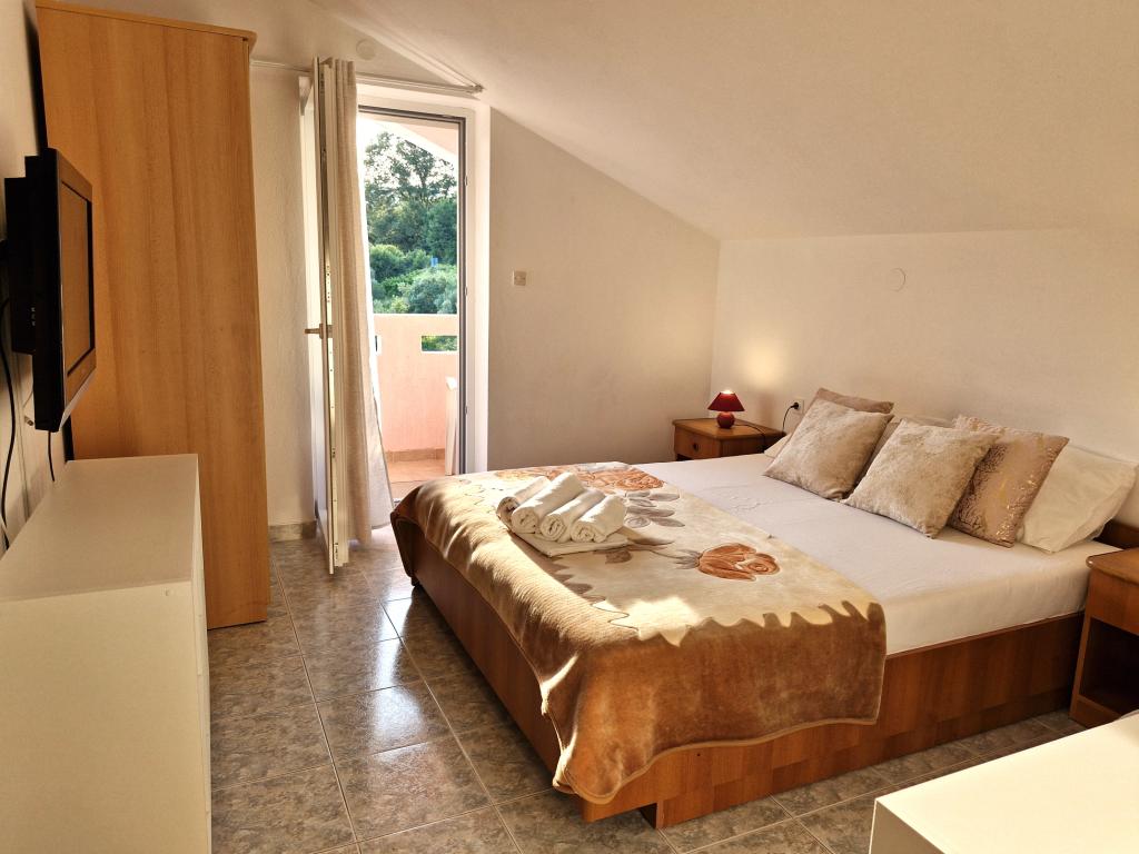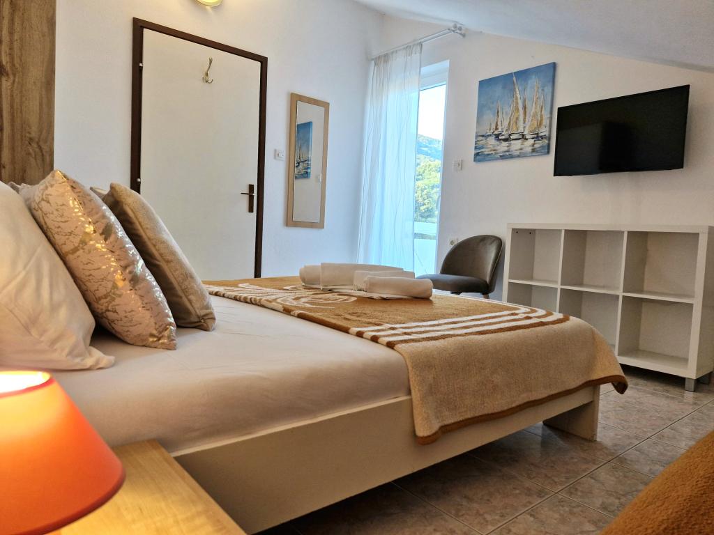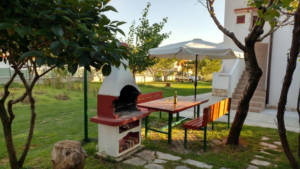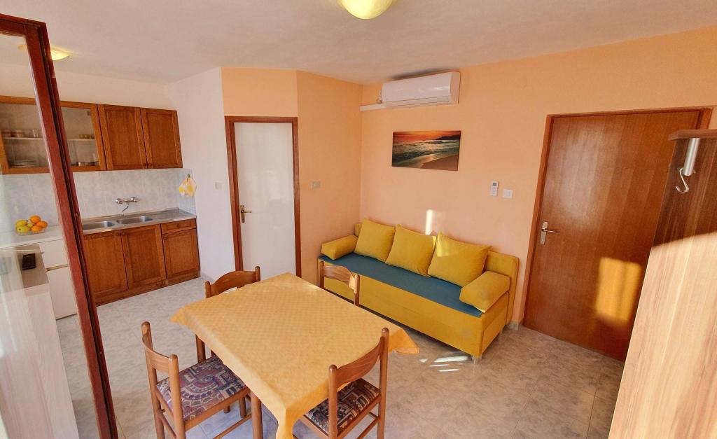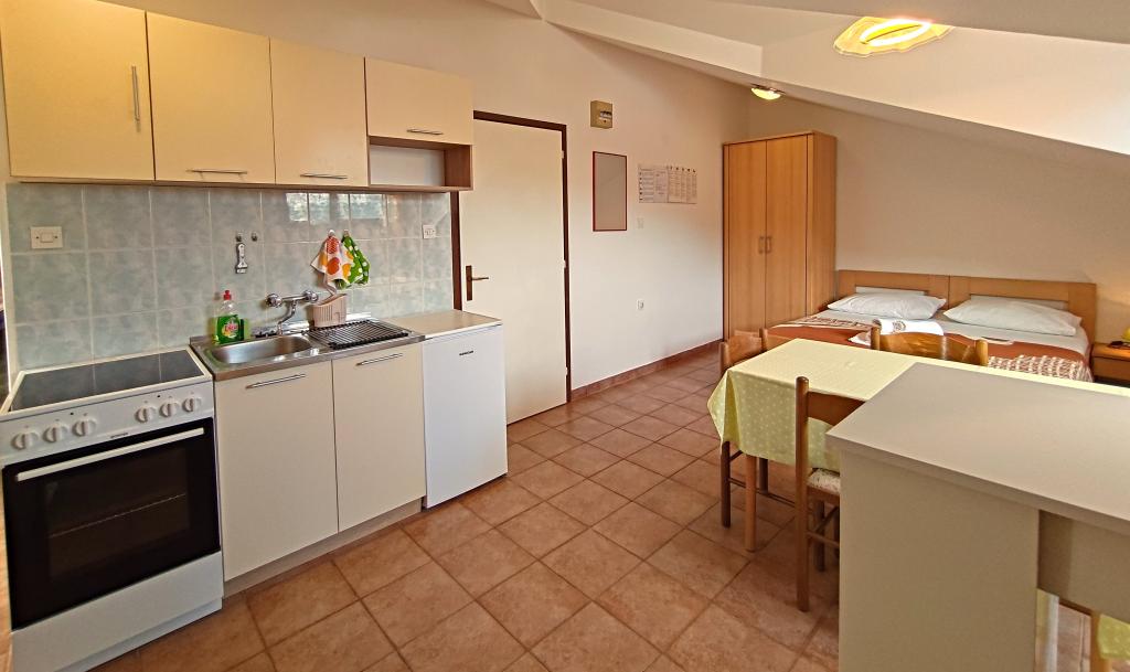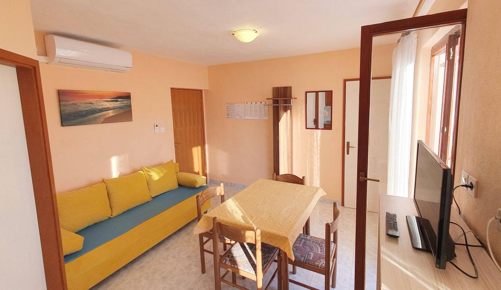 Apartments Mirjana Fičor are located in Baška, the most popular summer resort on the island of Krk, known for its most beautiful sandy beach. The apartments are located in a family house, we are in a quiet location, only 8 minutes walk to the beautiful beach and the same distance to the town center. Each apartment has a balcony with a beautiful view of the sea or the mountains surrounding Baška. We have a spacious parking lot in front of the house. We also have a large fenced garden, with lots of olive trees, fruit trees, lavender. Suitable for families with children. We have a total of 6 apartments. There is also an outdoor barbecue. Each apartment has air conditioning, satellite TV and free internet. We wish you a pleasant stay with us. Welcome. Family Mirjana and Vlatko Fičor, Baška