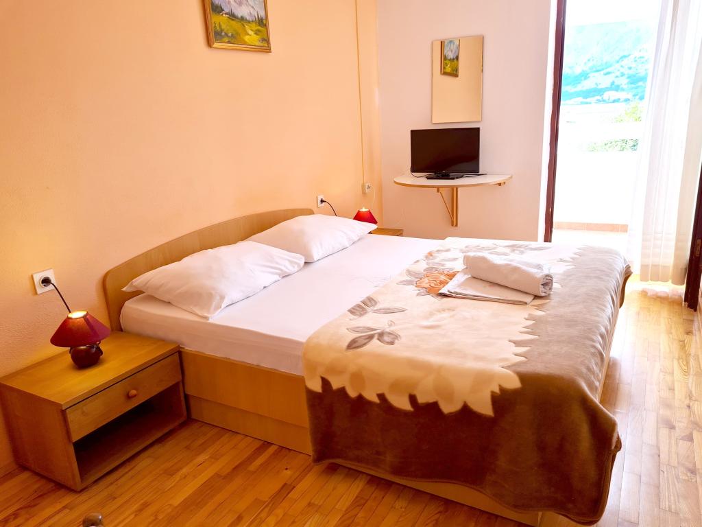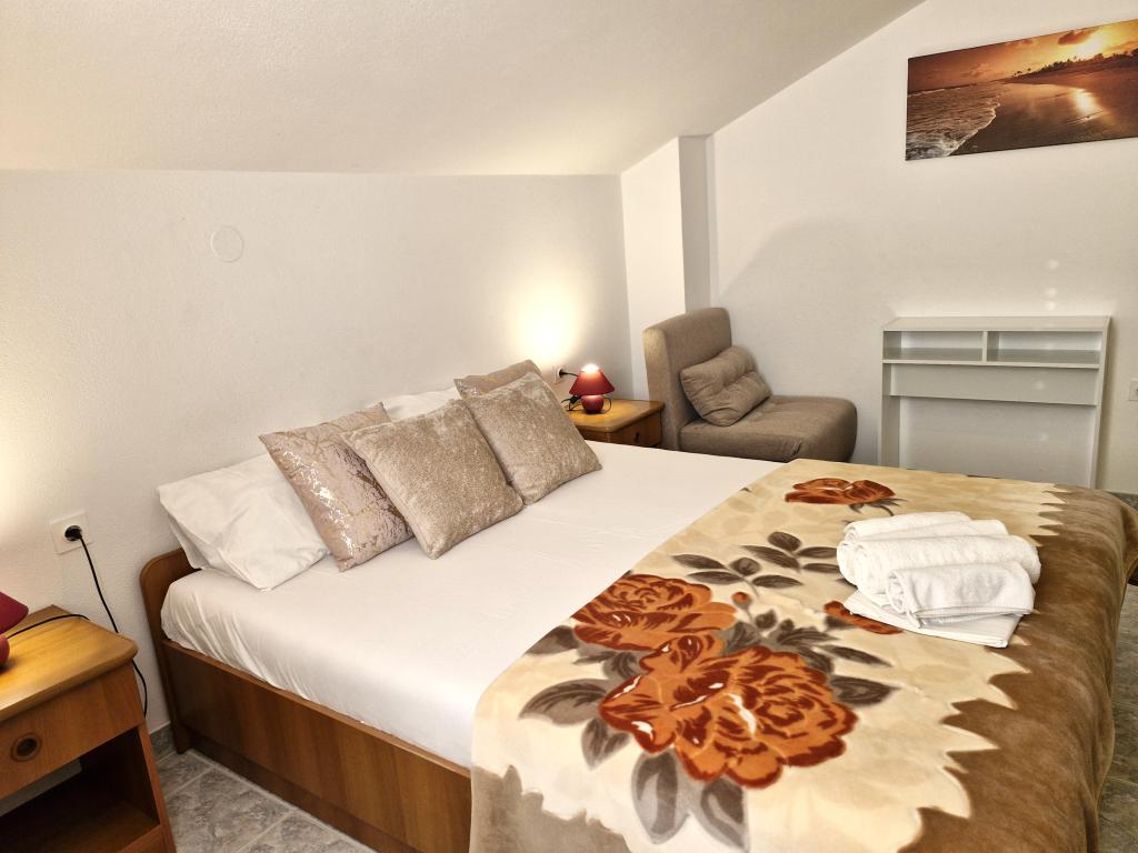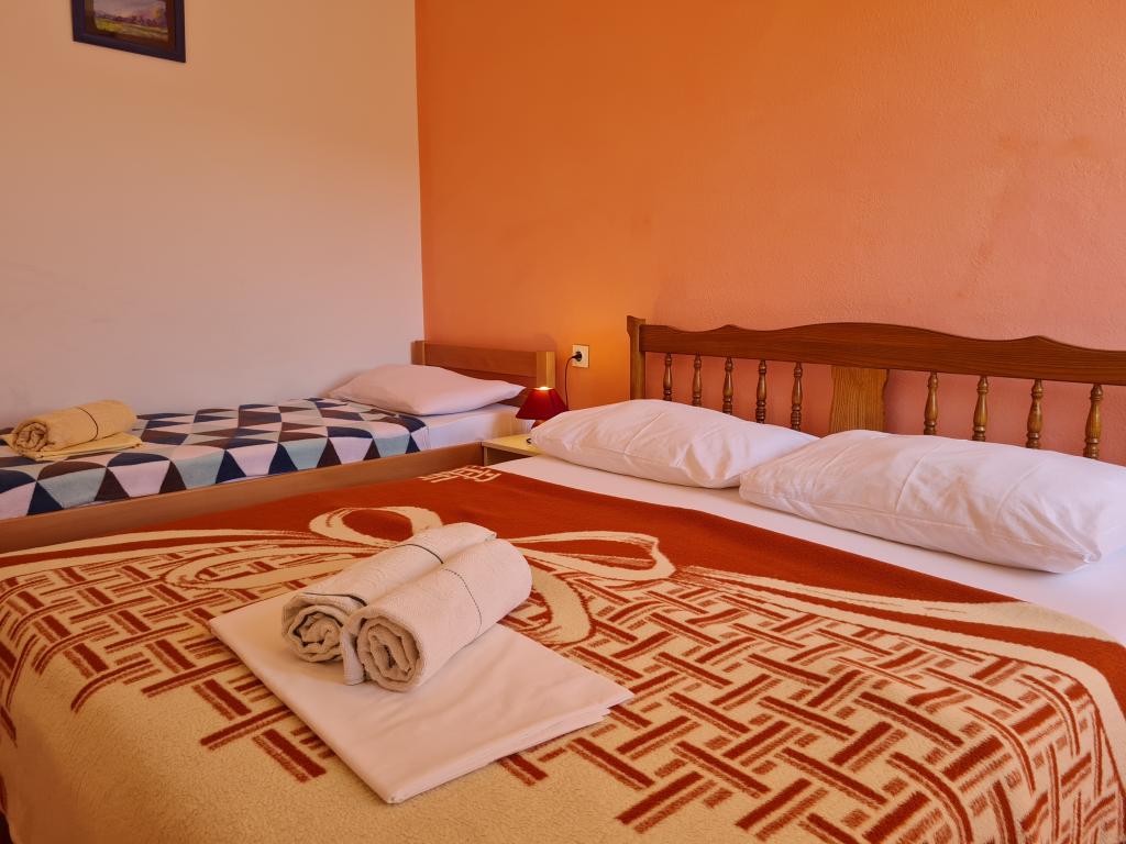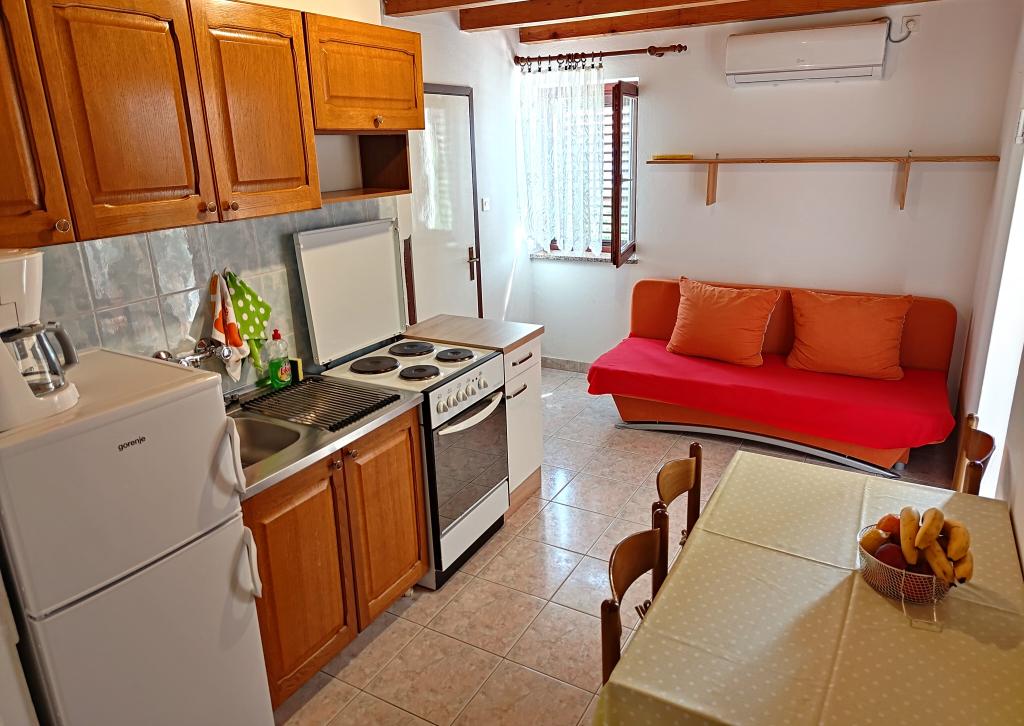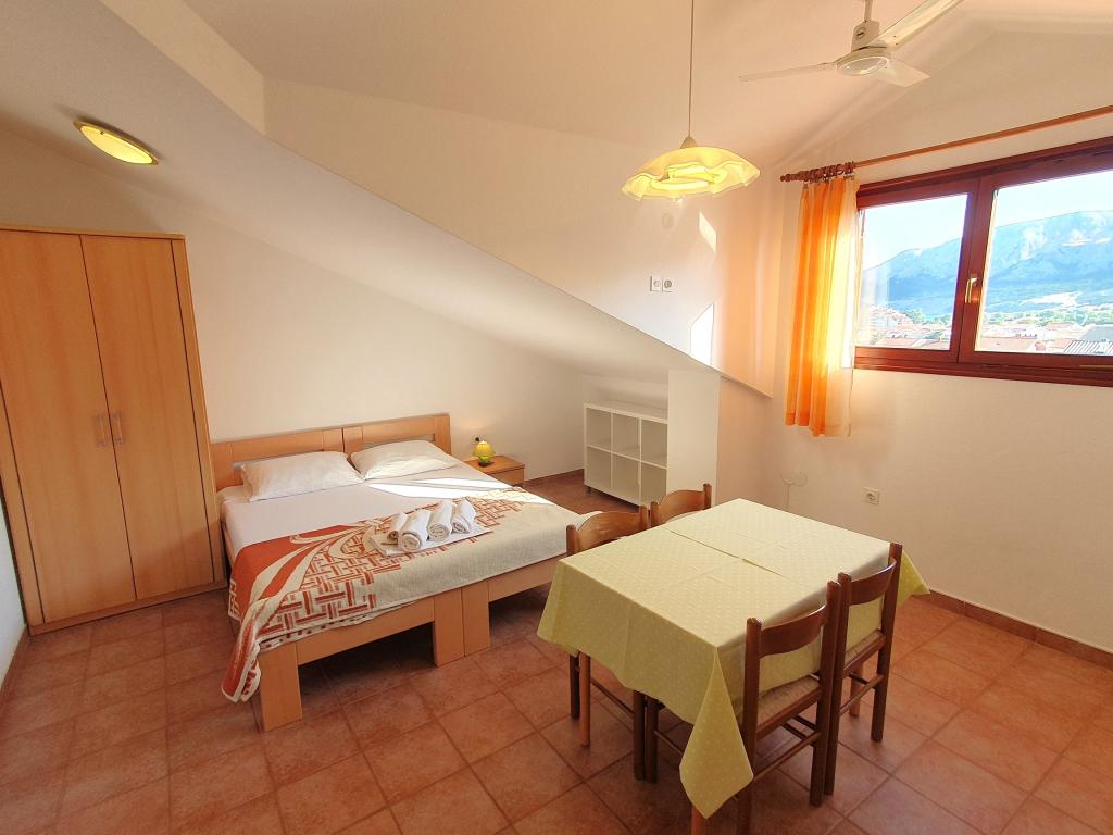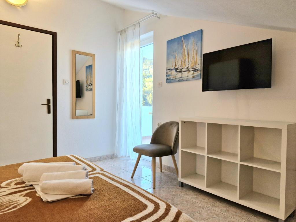 Apartments Mirjana Fičor are located in Baška, the most popular summer resort on the island of Krk, known for its most beautiful sandy beach. The apartments are located in a family house, we are in a quiet location, only 8 minutes walk to the beautiful beach and the same distance to the town center. Each apartment has a balcony with a beautiful view of the sea or the mountains surrounding Baška. We have a spacious parking lot in front of the house. We also have a large fenced garden, with lots of olive trees, fruit trees, lavender. Suitable for families with children. We have a total of 6 apartments. There is also an outdoor barbecue. Each apartment has air conditioning, satellite TV and free internet. We wish you a pleasant stay with us. Welcome. Family Mirjana and Vlatko Fičor, Baška