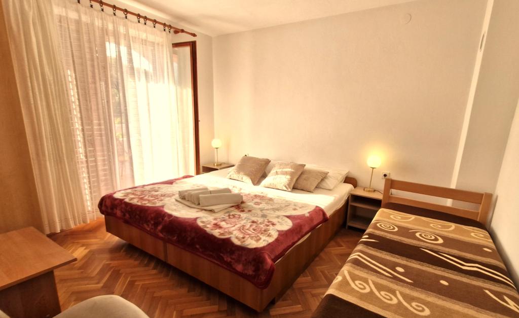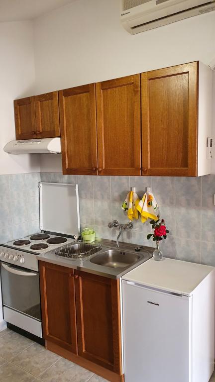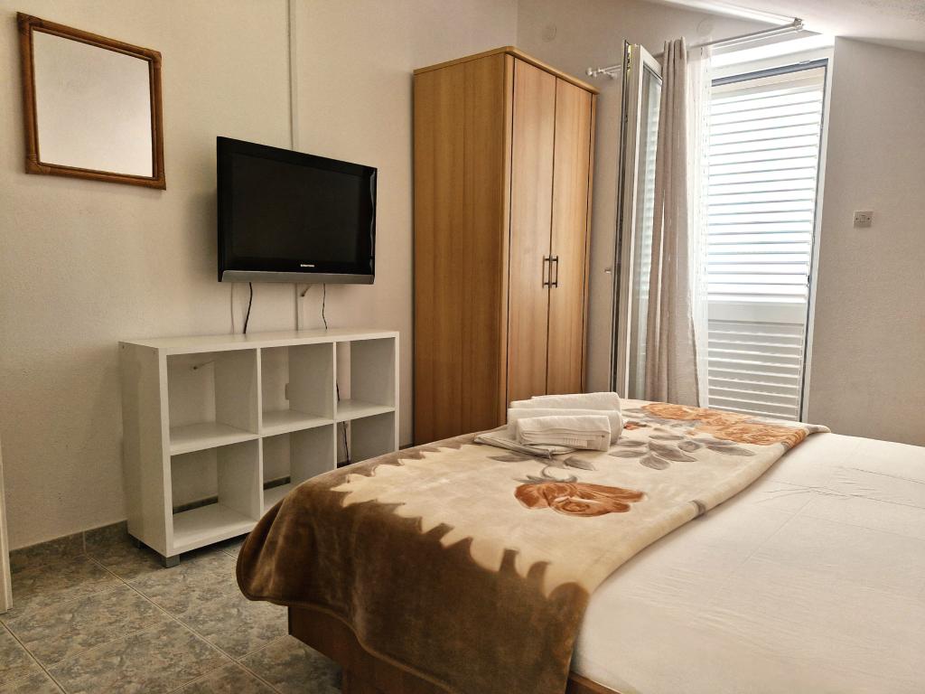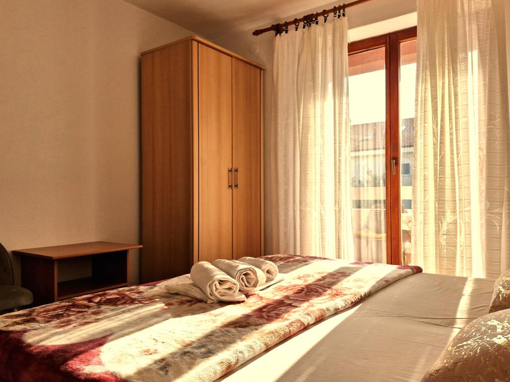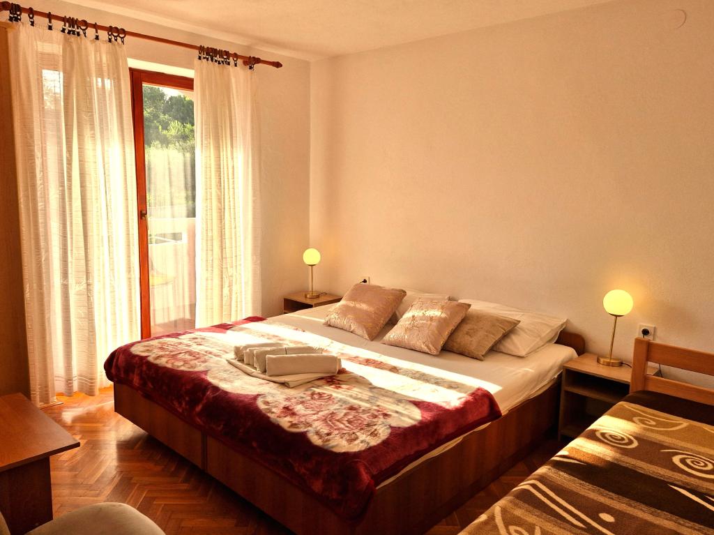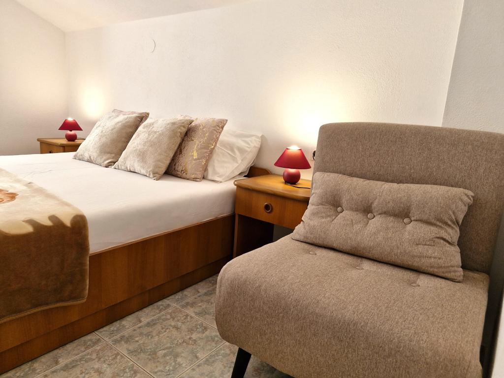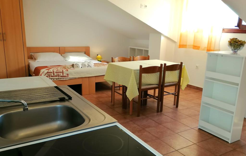 Apartments Mirjana Fičor are located in Baška, the most popular summer resort on the island of Krk, known for its most beautiful sandy beach. The apartments are located in a family house, we are in a quiet location, only 8 minutes walk to the beautiful beach and the same distance to the town center. Each apartment has a balcony with a beautiful view of the sea or the mountains surrounding Baška. We have a spacious parking lot in front of the house. We also have a large fenced garden, with lots of olive trees, fruit trees, lavender. Suitable for families with children. We have a total of 6 apartments. There is also an outdoor barbecue. Each apartment has air conditioning, satellite TV and free internet. We wish you a pleasant stay with us. Welcome. Family Mirjana and Vlatko Fičor, Baška