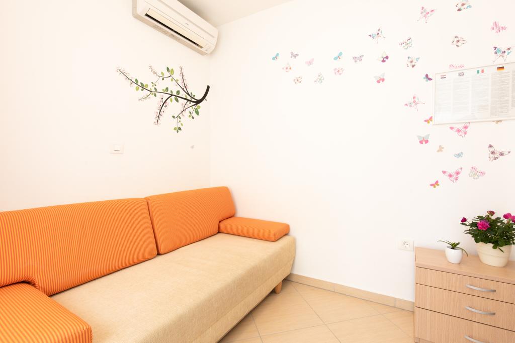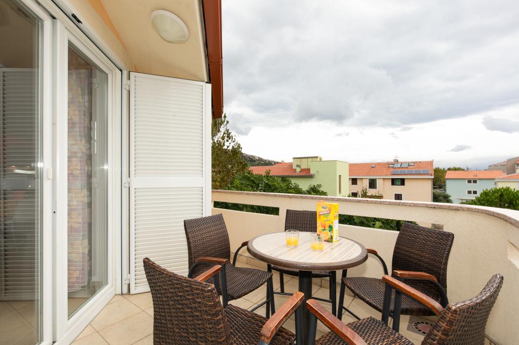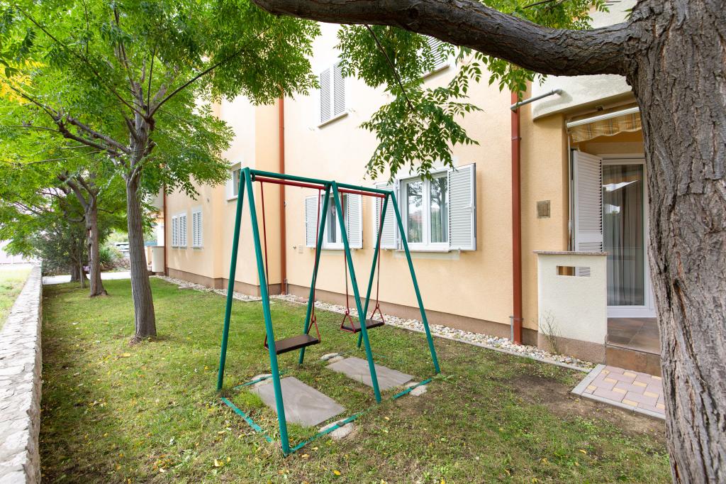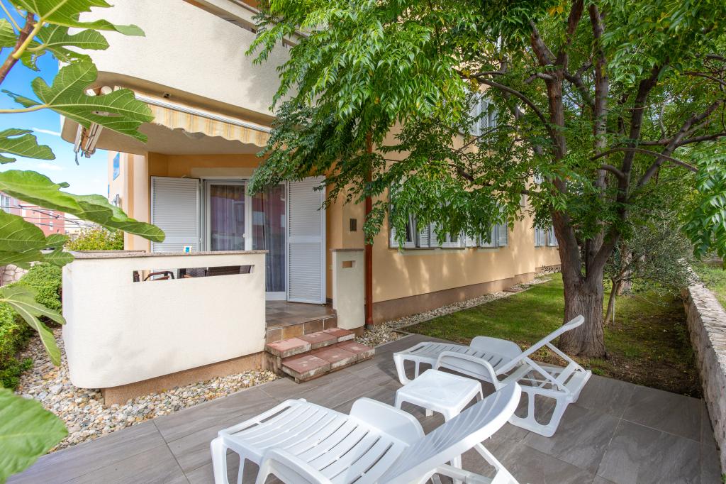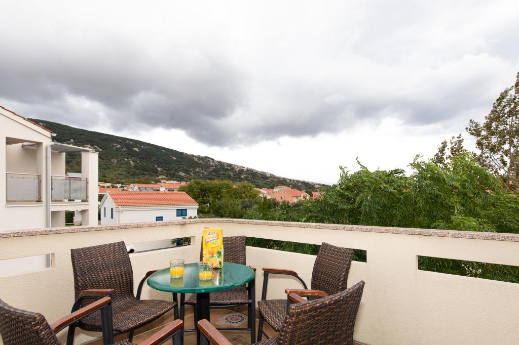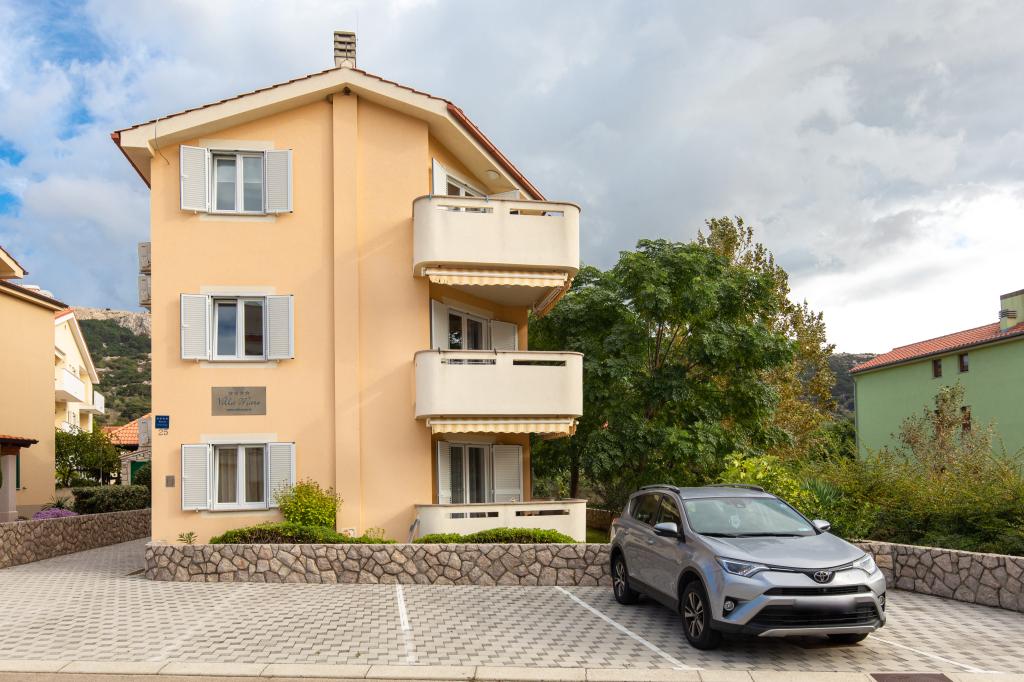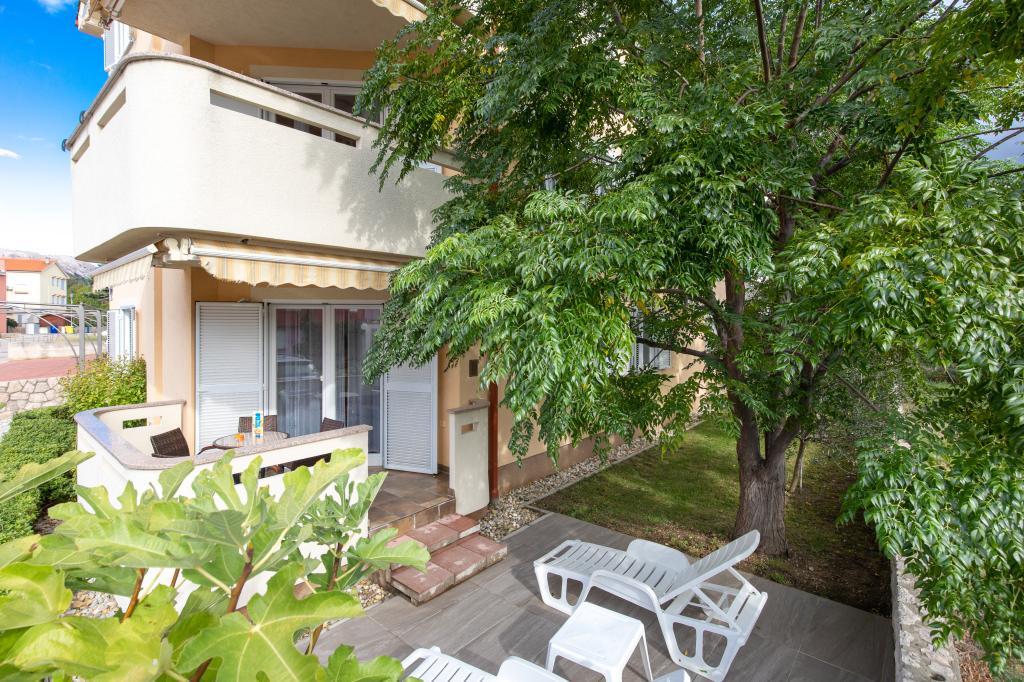 Apartments VillaMare are located in a quiet part of Baška, a 5-7 minute easy walk to a beautiful sandy beach as well as the center itself with all the amenities offered by a tourist town. There are 5 apartments in the 4**** category: 4 x A/4+2 for max 4-6 people, 1 x A/2+2 for max 2-4 people and a nice studio for max 1-2 people. All apartments are air-conditioned and modernly equipped, free WiFi, satellite TV, 1 parking space per apartment; in the courtyard part, a garden area with a barbecue, a wooden gazebo and a children's playground is available to all guests. A cot, high chair/feeding table, washing machine are available on request. All apartments in the extension have a comfortable terrace where you can completely relax and enjoy the beautiful view of Baška and the mountain that surrounds it, while the apartment on the ground floor has an additional extended terrace with deckchairs and direct access to the beautiful garden (...and fig trees :- )