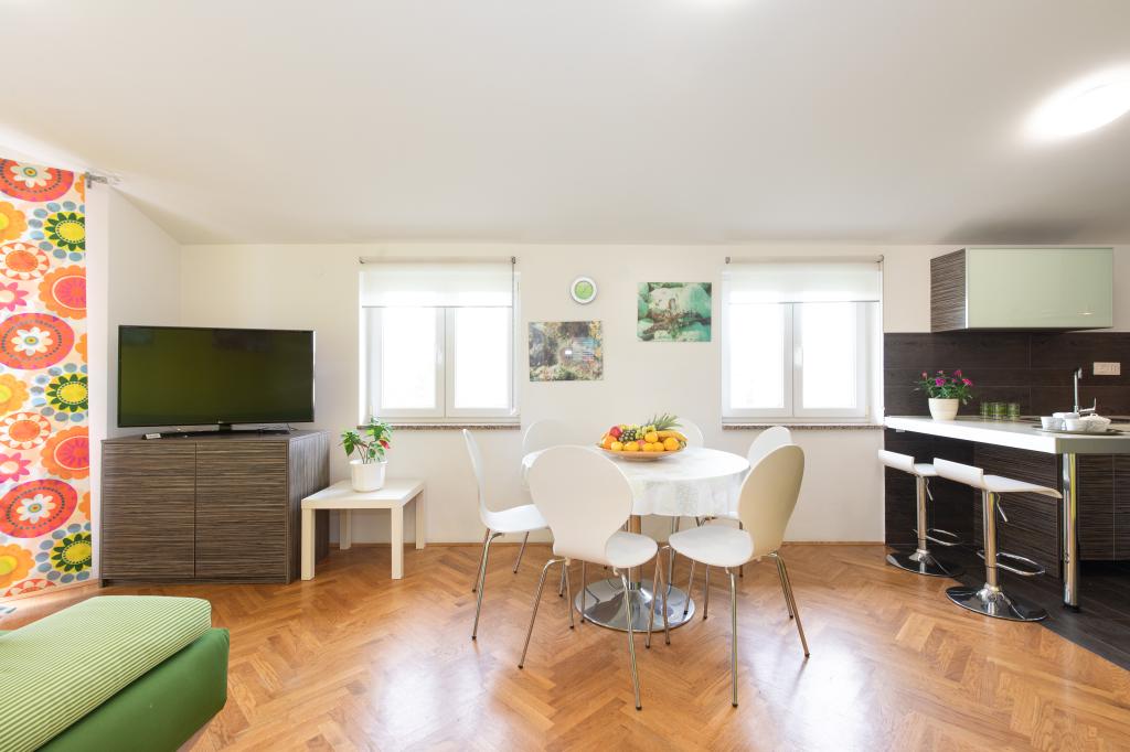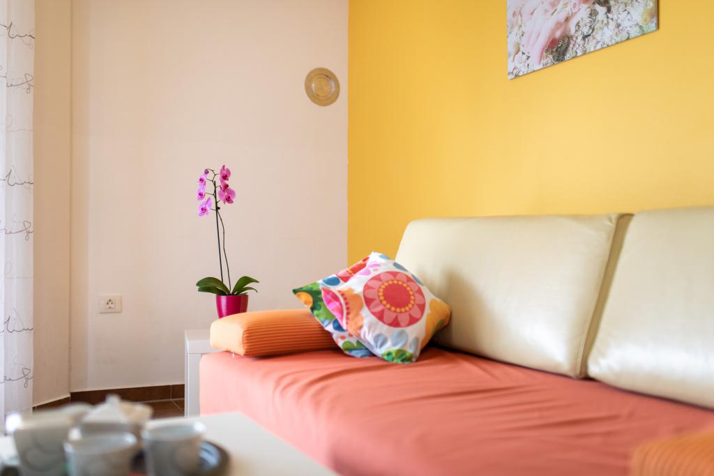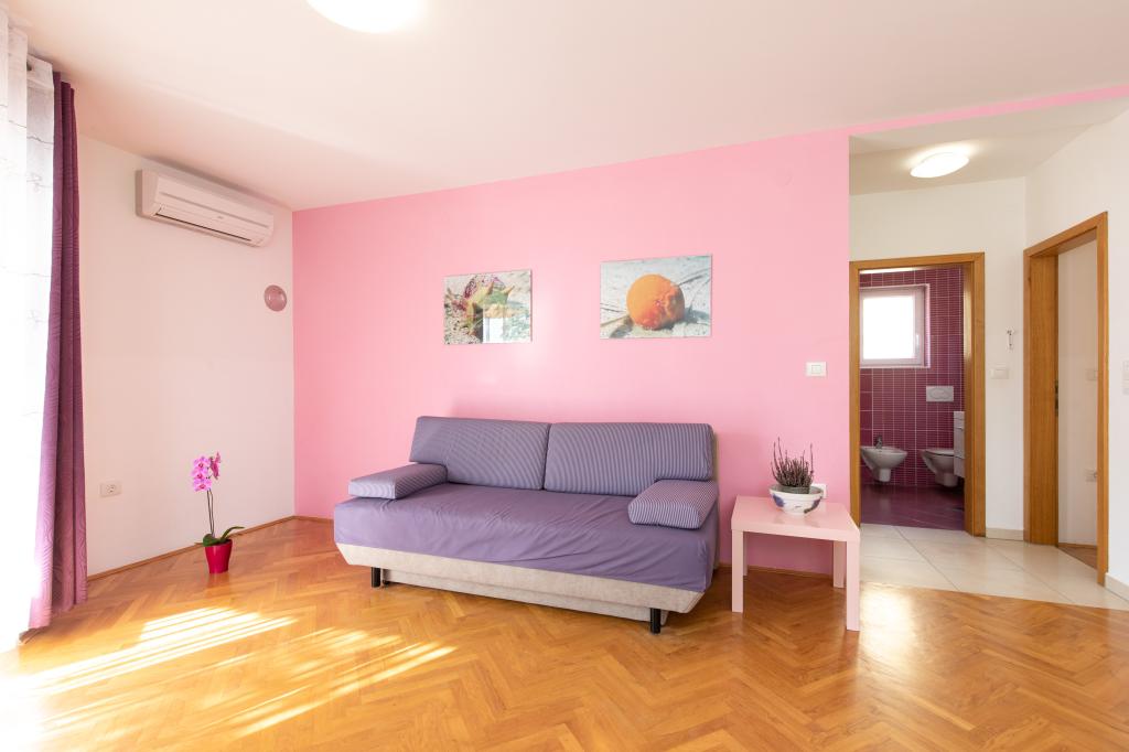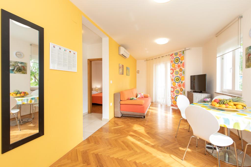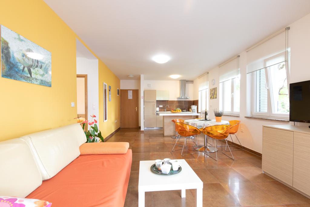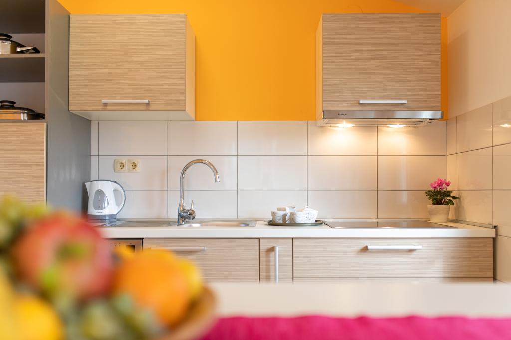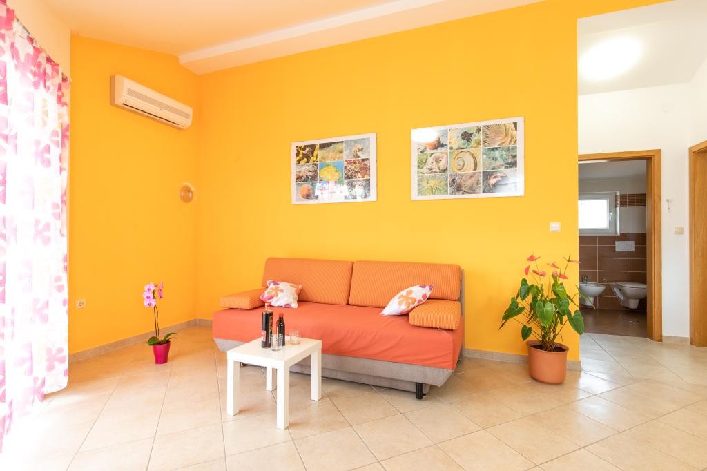 Apartments VillaMare are located in a quiet part of Baška, a 5-7 minute easy walk to a beautiful sandy beach as well as the center itself with all the amenities offered by a tourist town. There are 5 apartments in the 4**** category: 4 x A/4+2 for max 4-6 people, 1 x A/2+2 for max 2-4 people and a nice studio for max 1-2 people. All apartments are air-conditioned and modernly equipped, free WiFi, satellite TV, 1 parking space per apartment; in the courtyard part, a garden area with a barbecue, a wooden gazebo and a children's playground is available to all guests. A cot, high chair/feeding table, washing machine are available on request. All apartments in the extension have a comfortable terrace where you can completely relax and enjoy the beautiful view of Baška and the mountain that surrounds it, while the apartment on the ground floor has an additional extended terrace with deckchairs and direct access to the beautiful garden (...and fig trees :- )