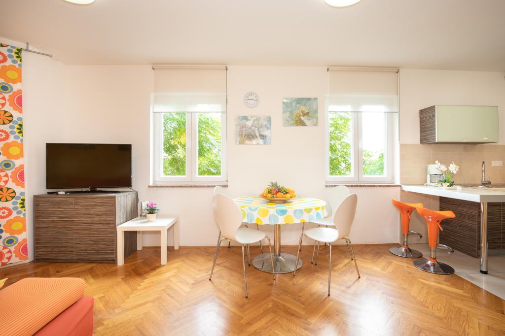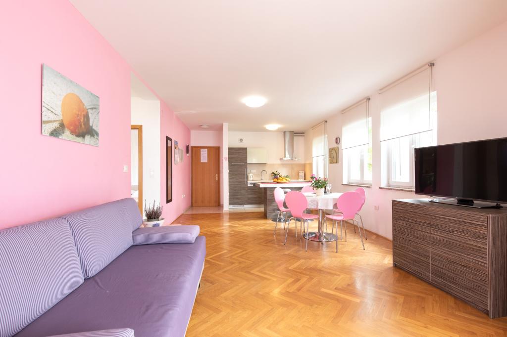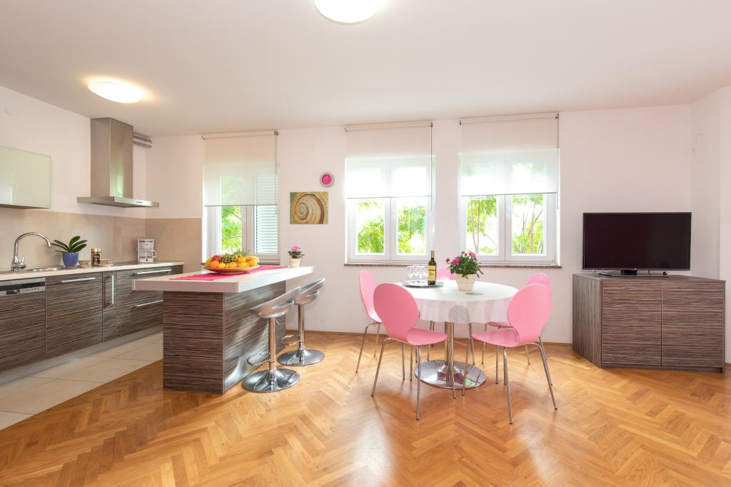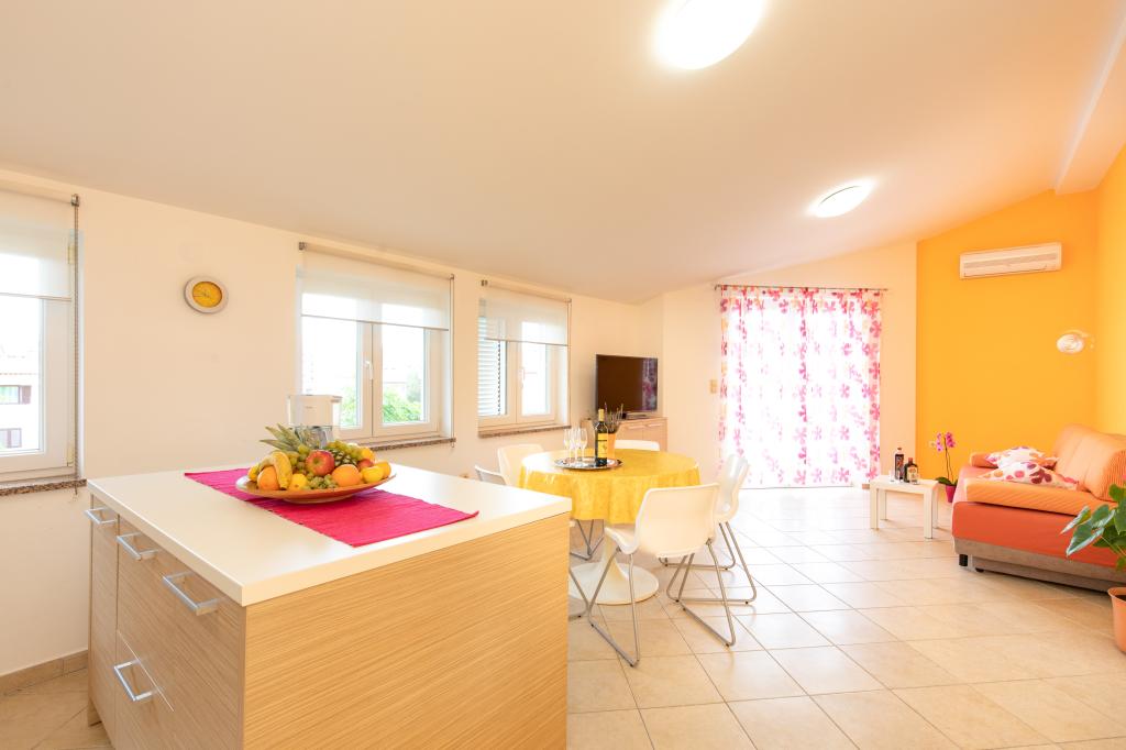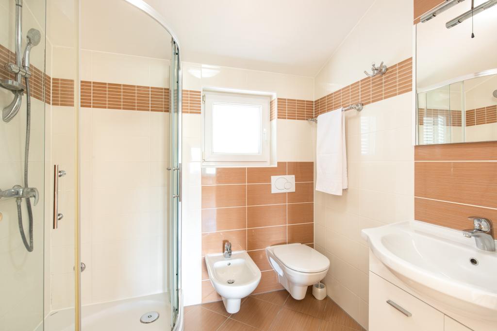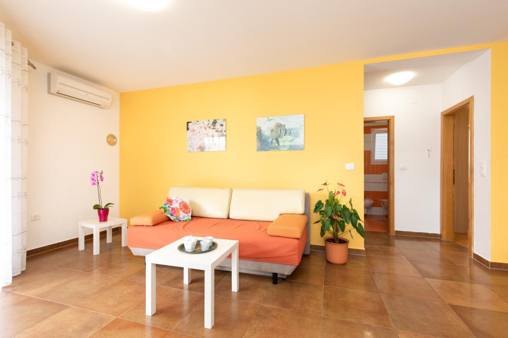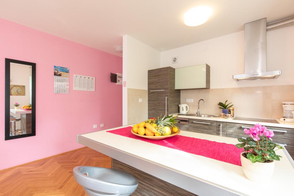 Apartments VillaMare are located in a quiet part of Baška, a 5-7 minute easy walk to a beautiful sandy beach as well as the center itself with all the amenities offered by a tourist town. There are 5 apartments in the 4**** category: 4 x A/4+2 for max 4-6 people, 1 x A/2+2 for max 2-4 people and a nice studio for max 1-2 people. All apartments are air-conditioned and modernly equipped, free WiFi, satellite TV, 1 parking space per apartment; in the courtyard part, a garden area with a barbecue, a wooden gazebo and a children's playground is available to all guests. A cot, high chair/feeding table, washing machine are available on request. All apartments in the extension have a comfortable terrace where you can completely relax and enjoy the beautiful view of Baška and the mountain that surrounds it, while the apartment on the ground floor has an additional extended terrace with deckchairs and direct access to the beautiful garden (...and fig trees :- )