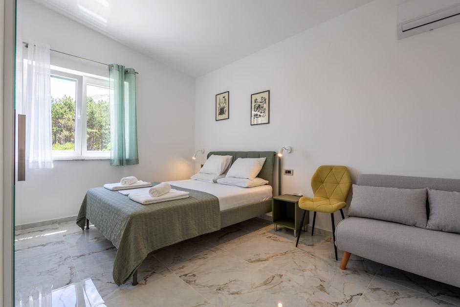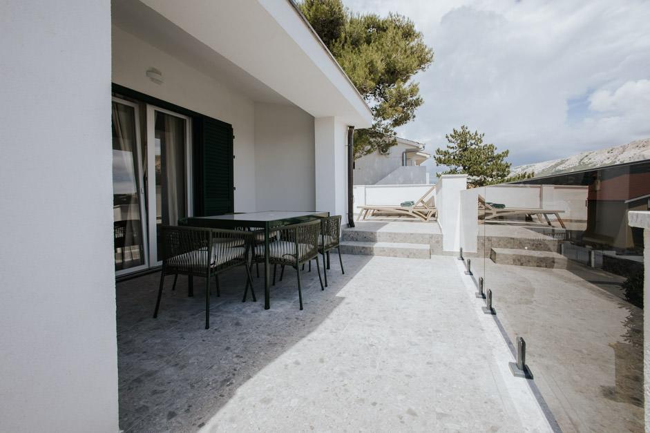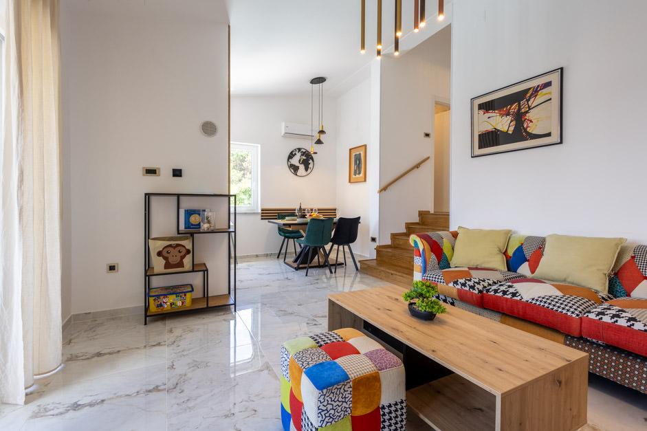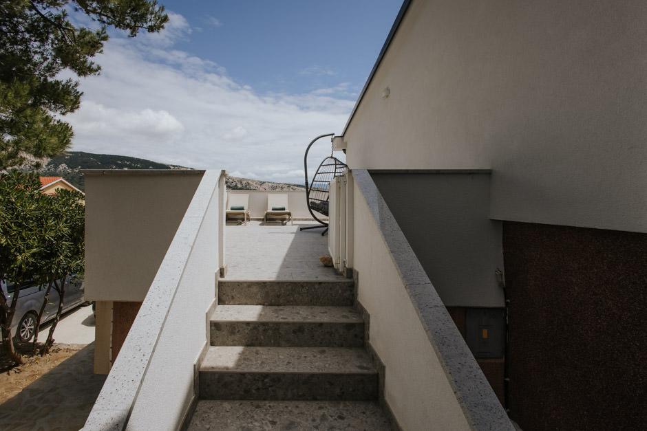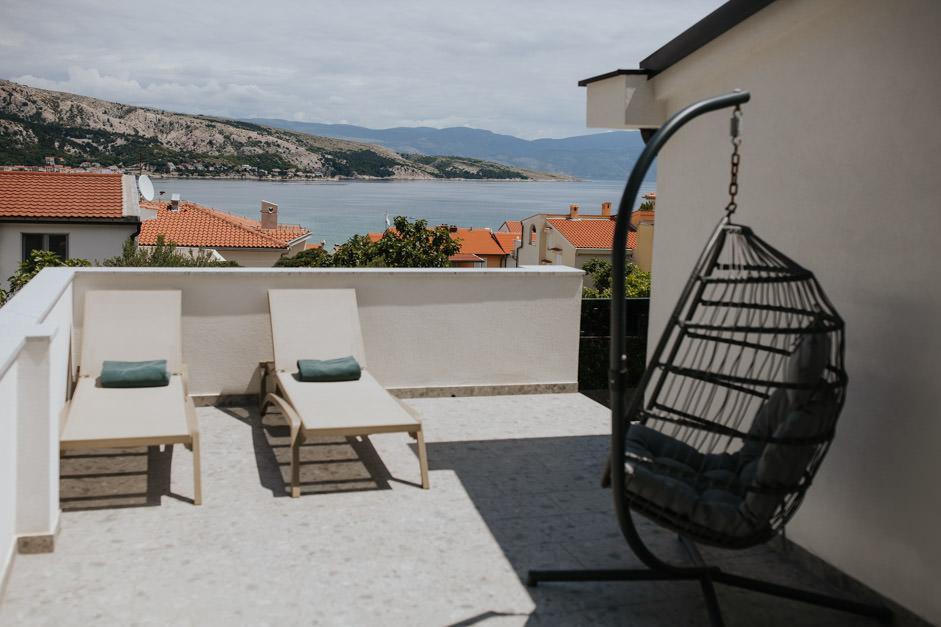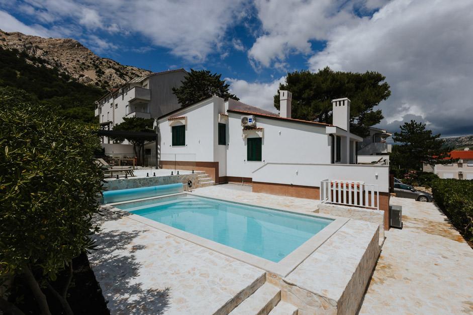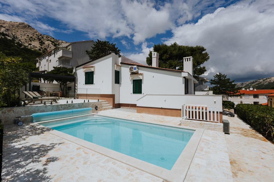 Our newly renovated Villa Zlata is located in Baška, the tourist pearl of the hidden bay of the island of Krk. The house is 400 m from the town center and 200 m from the sea, whose waves hit the 1800 m long pebble beach. Baška is a place with a rich past and cultural heritage, and not far away, in Jurandvor, there is the famous Bašćanska ploča, one of the oldest written monuments in the Croatian language. Villa Zlata offers accommodation for 4+2 people, it is also pet friendly, so it will be happy to host your pet as well. It is fully decorated and equipped, and it is located in an intimate environment of a pine forest where you will be able to enjoy the newly built private heated pool. You can feel the special pleasure of vacation by hanging out with the outdoor grill and the gazebo, while the youngest can have fun in the safety of the children's play area. For the ideal end of a summer day, relax on two terraces with the smell of pine and a view of the enchanting bay where the gentle blue of the sea and sky blend with the harshness of the huge Velebit in the distance.