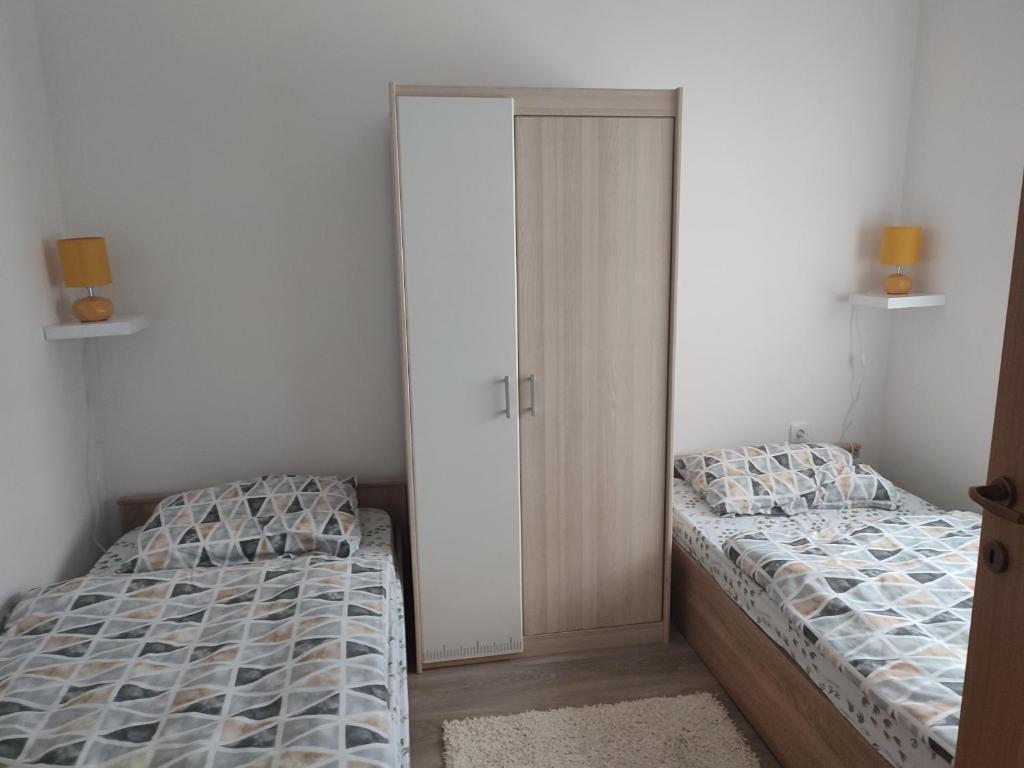 The air-conditioned apartment consists of 2 bedrooms, a living room, a fully equipped kitchen with a fridge and a kettle, and 1 bathroom with a shower and a hairdryer. The apartment also has a seating area, a washing machine which is also a dryer, wi-fi and parking for a vehicle within the building, it also has a terrace with a barbecue, which is also a place for smokers, as it is not allowed in the apartment. There is no host in the apartment, so you have the whole apartment at your disposal.