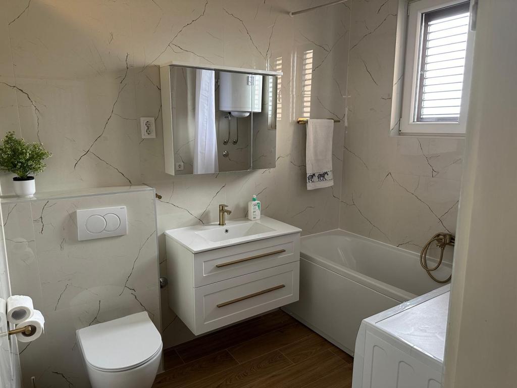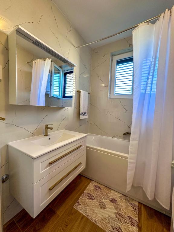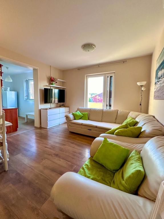 The apartment house is located in a quiet part of Betina, surrounded by greenery. The house has 4 apartments, and is only a 5-minute walk to the center and a 10-minute walk to the beach. Guests have free parking and use of the grill in the yard.
