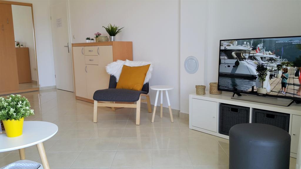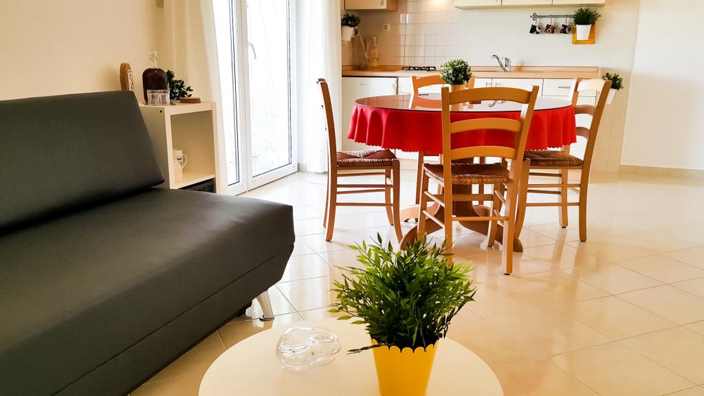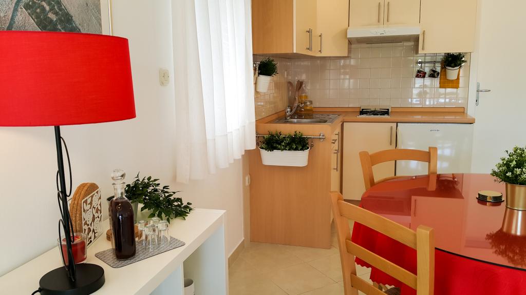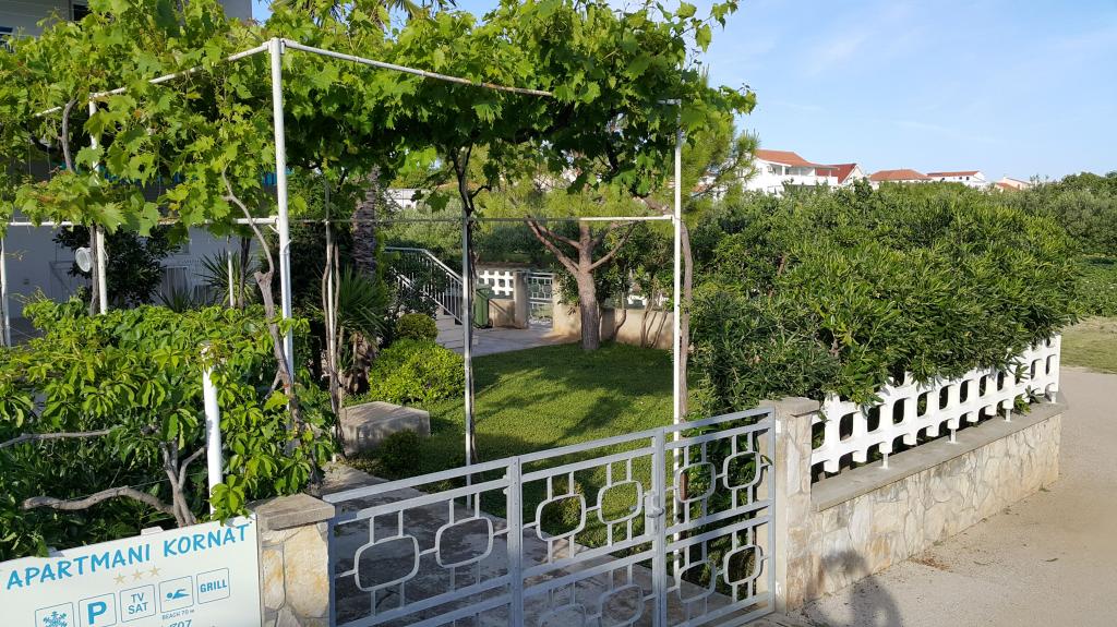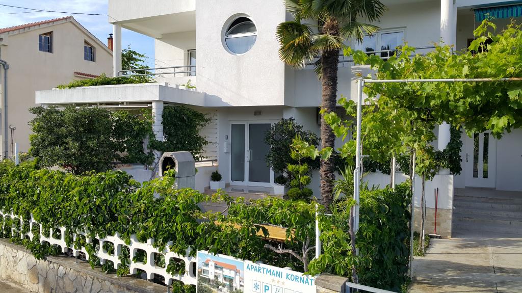 Modernly furnished apartments in a quiet part of Betina on the island of Murter, 100 meters from the city beach. Apartments Kornat are located 300 meters from the center of Betina and 800 meters from the center of Murter. Each apartment has a large covered terrace that is separate from the neighboring terraces. Wireless internet, use of air conditioning, water, electricity and gas consumption, weekly change of bed linen and towels, cleaning supplies and final cleaning of the apartment are included in the price. The facility is about 60 m from the road, so guests are assured of a real vacation. The kitchens in the apartments are fully equipped for preparing and serving food. The owners of Apartments Kornat pay special attention to cleanliness with the desire to make guests feel at home. Guests have access to a barbecue in the yard.