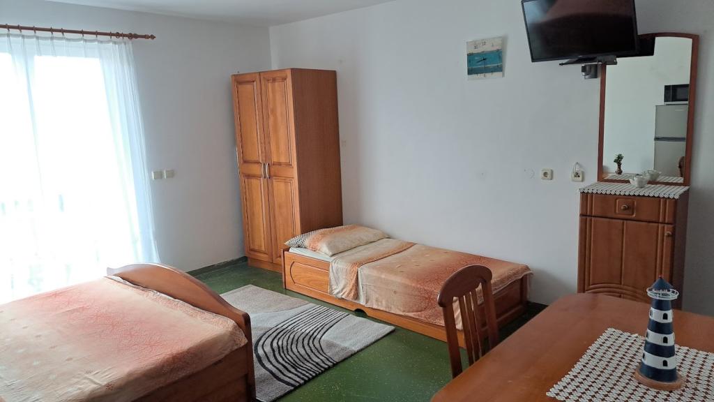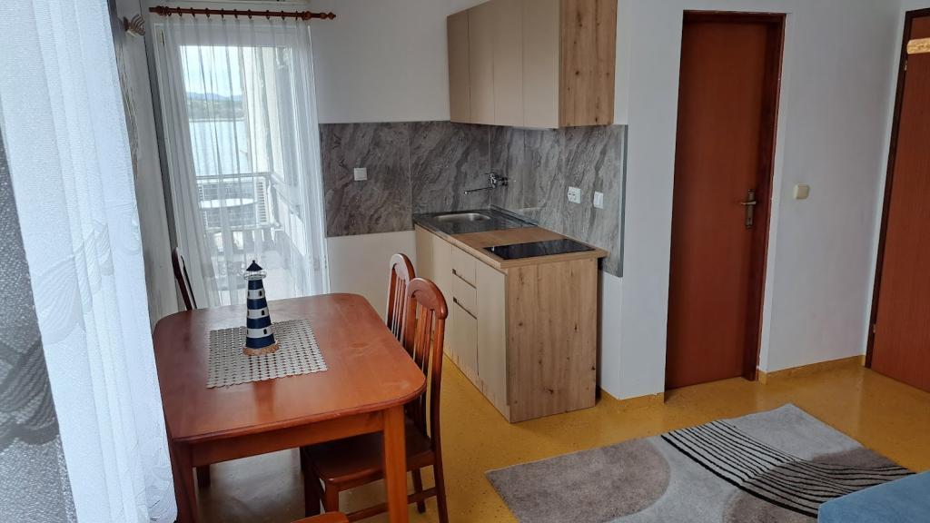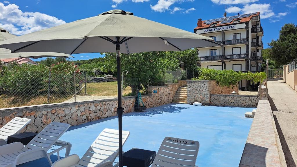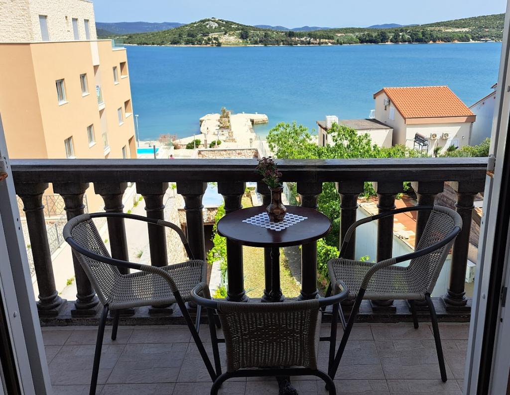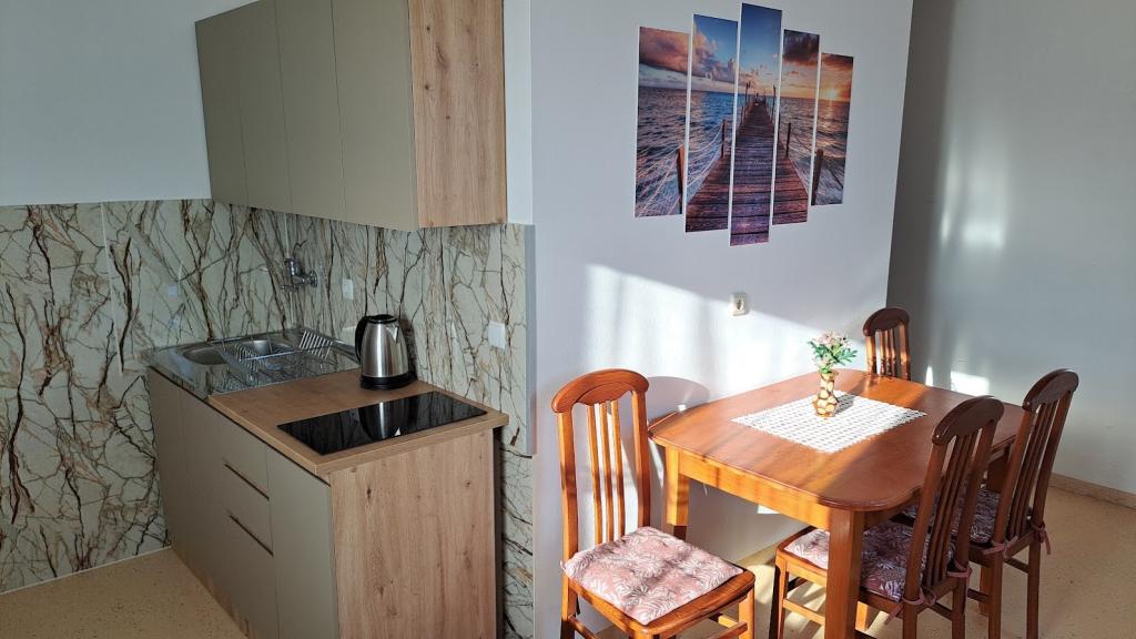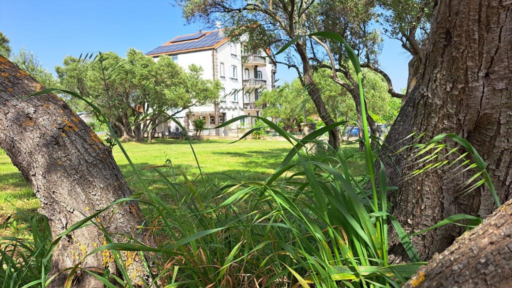Apartment house ŠTIZ-BETINA – Your ideal vacation by the sea! Located directly on the coast in Betina on the island of Murter, apartment house ŠTIZ-BETINA offers the perfect setting for a relaxing vacation. Our well-maintained stone beach is equipped with deck chairs and large umbrellas that you can use free of charge. Are you coming by boat? We offer a launch and a berth for boats up to 7 meters long, with secured parking for a trailer within the fenced yard. Location: The house is located 1.5 km from the center of Betina, where you will find the old town center, shops, cafes, restaurants and the main town beach. The island of Murter is easily accessible by car because it is connected to the mainland by a drawbridge, which rises twice a day. We offer: six apartments (2+2) and four studios (2+1). Each accommodation unit includes: a fully equipped kitchen, air conditioning, free Wi-Fi, flat-screen SAT HDTV, toilet with shower, bed linen and towels. All apartments and studios have a beautiful view of the sea and garden.