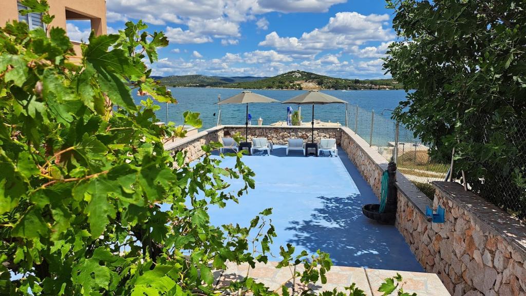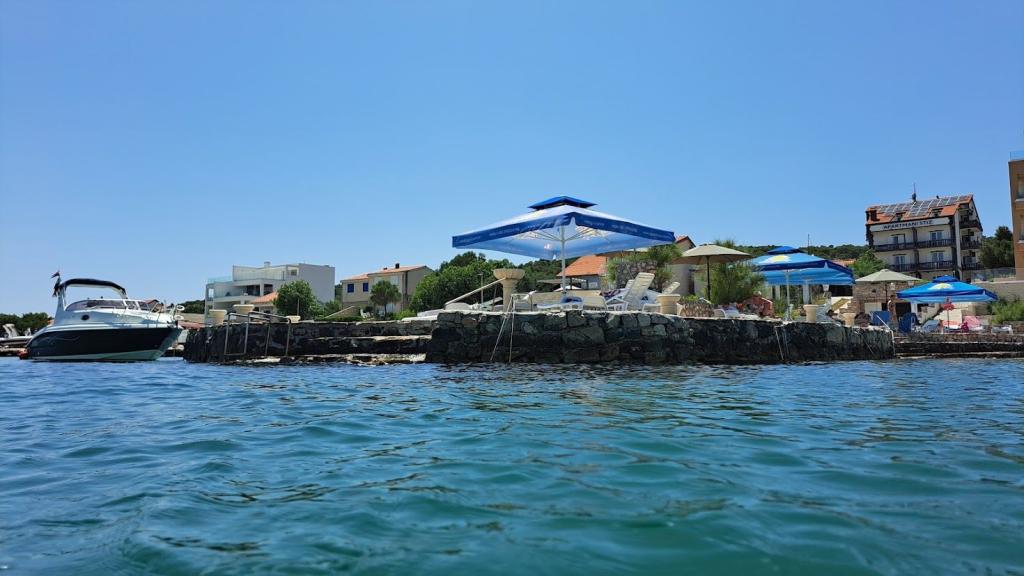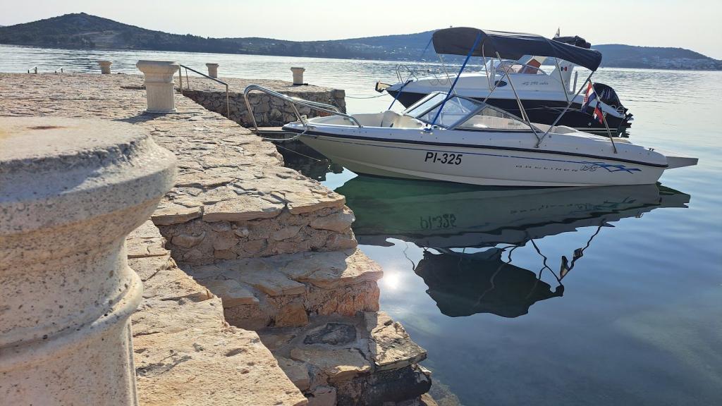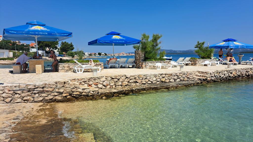 Residential tax is included in price.Well-maintained beach and facilities for complete enjoyment! You don't have to look for an ideal place to swim - the well-kept beach is right in front of our house! The beach is paved with natural stone, and there is fine sand in the sea that allows easy and safe entry into the water. On the beach, you can use deck chairs and large umbrellas for free to relax by the sea. There is a large garage with a toilet next to the beach, where you can leave your equipment such as SUP, kayaks, windsurfing boards, inflatables... For guests who come with a boat (up to 7 m), we offer the possibility of launching directly on our beach. You can moor the boat along the shore or on a buoy, while there is also a large parking lot for a car and a trailer inside the fenced yard. In our green garden, a large barbecue with complete equipment for preparing delicious meals awaits you, which is at your disposal. In addition, a welcome drink awaits you upon arrival.