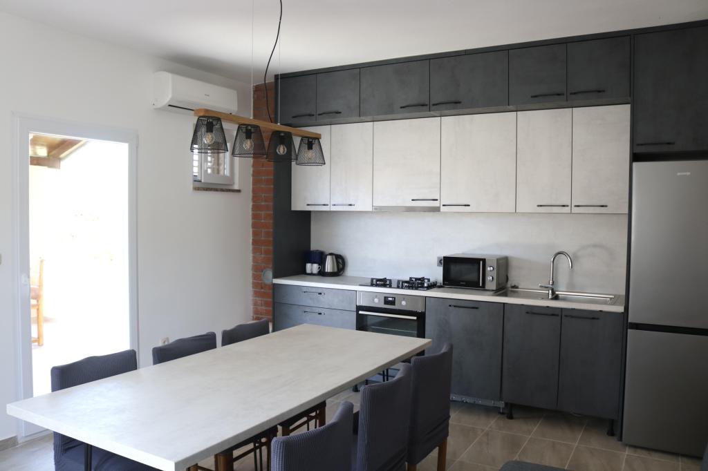 I highly recommend this place. The apartment is spacious, clean, very well equipped, with everything you need in the kitchen. Air conditioning in the living room, washing machine, terrace available. Situated in a quiet place, a bit of a walk to the beach but a very pleasant walk. Very friendly owners. I recommend.