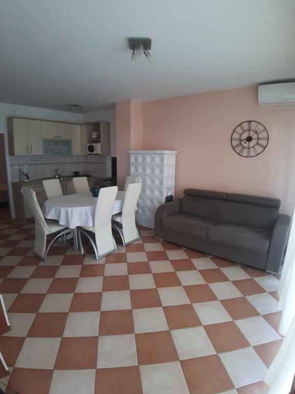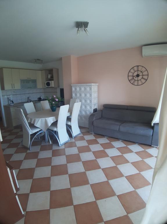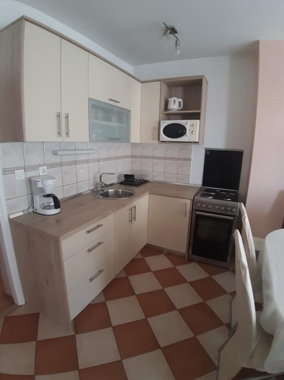 A great place to relax, close to a small pebble beach, the apartment is clean and cozy (it's a pity that "invisible" mosquitoes "welcomed us" the first night, but you can deal with it (by buying mosquito repellent), a great terrace where you can sit ( it's a pity that it's right next to the street, but it wasn't a big problem). Overall, a great place to relax. Aha, our German Shepherd dogs felt very well there. The hostess was very nice and communicative, no problems if not for that that we visit a different place every year, we would love to come back. Fully equipped kitchen, change of bed linen and towels after a week, everything as it should be.