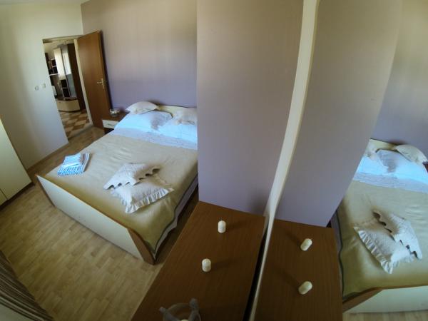Very good, clean and neat accommodation, best for two couples or for families like mine 2 + 1 + 1 - each child had their own room and large bed. Relax fit here 5 persons (2 + 2 + 1). Very close to the sea - perhaps 50 meters. The peace and quiet, away from the busy and noisy road. Facilities good. Delightfully, he is smiling hostess who every day giving away our watermelons or fruit, tomatoes or your naleweczką .... word of all that she had. The shops on major purchases you have to drive a few kilometers, but that's no problem because you can combine the trip with a visit eg. Zadar. For daily shopping you can go to the store about 10 minutes away from accommodation or buy a booth pieczywko 3 meters from the accommodation. Very wypoczęliśmy, and these 10 days have passed far too quickly .... I highly recommend THIS ACCOMMODATION. We will definitely go back. I cordially greet the Maya and her Mom !!!!! Carolina of the Family, Poland.