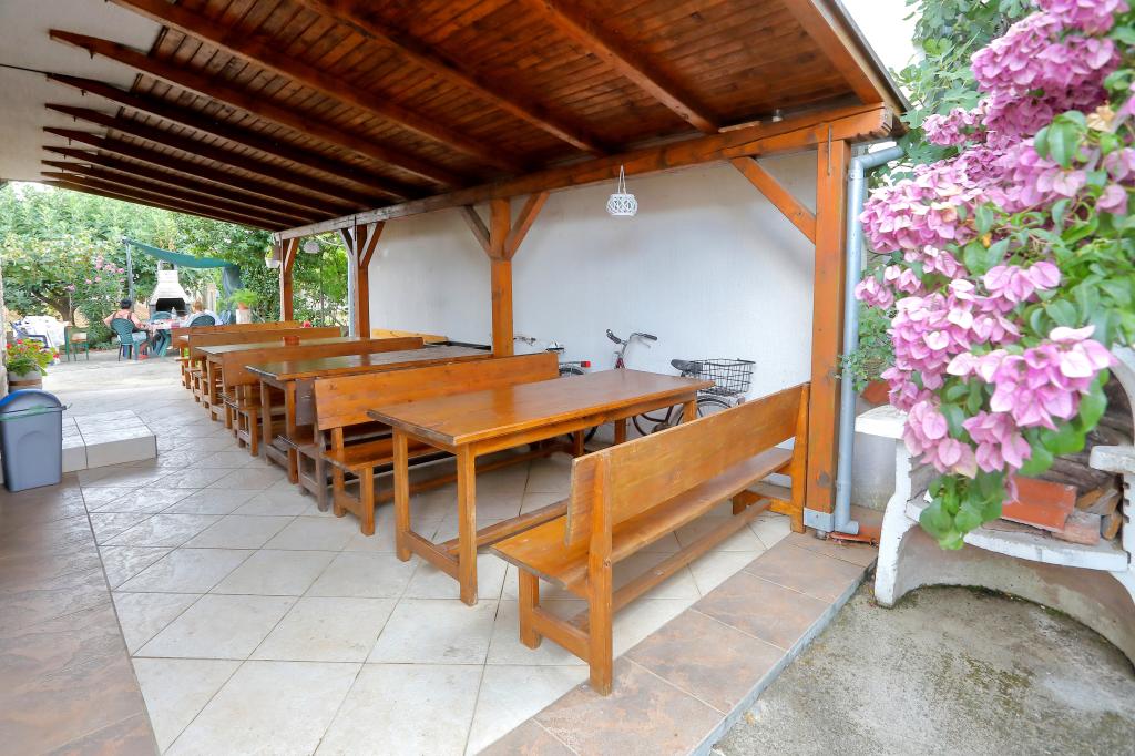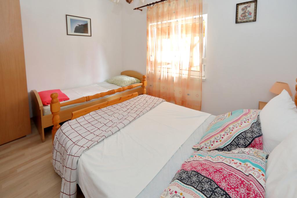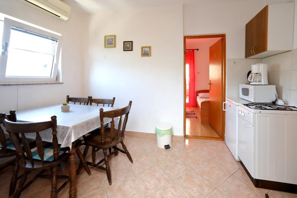 The apartments consist of a kitchen with a dining area, a bathroom and 2 bedrooms. In one room there is a double bed and in the other double and single bed. They are equipped with a microwave, kettle, rod mixer, hair dryer, iron and coffee machine. In the courtyard with covered parking are also 3 barbecues for guests. In front of ap. is a large covered terrace with 4 tables. There are 100 m to the first store, and to large shopping centers 4 km (Lidl, Kaufland, Plodine, Konzum, Pevec). There are 5 km to Zadar. There is a 350 m beach with concrete, pebbles and forests, and sand in the sea (suitable for small children). The Zemunik-Zadar Airport is 12 km away and Zadar Bus Station is 5 km away. Apartments are away from the first bus station 200 m.