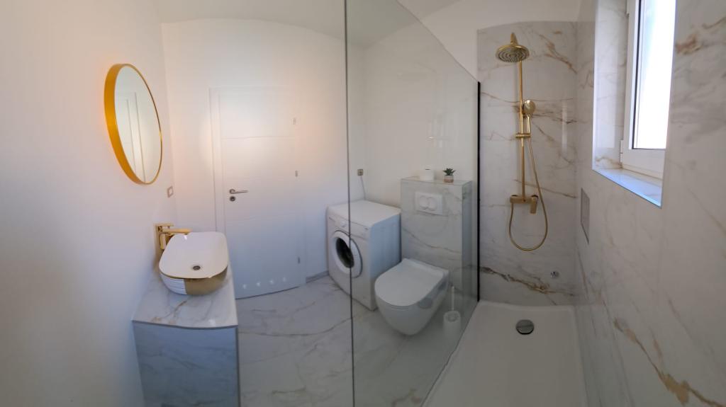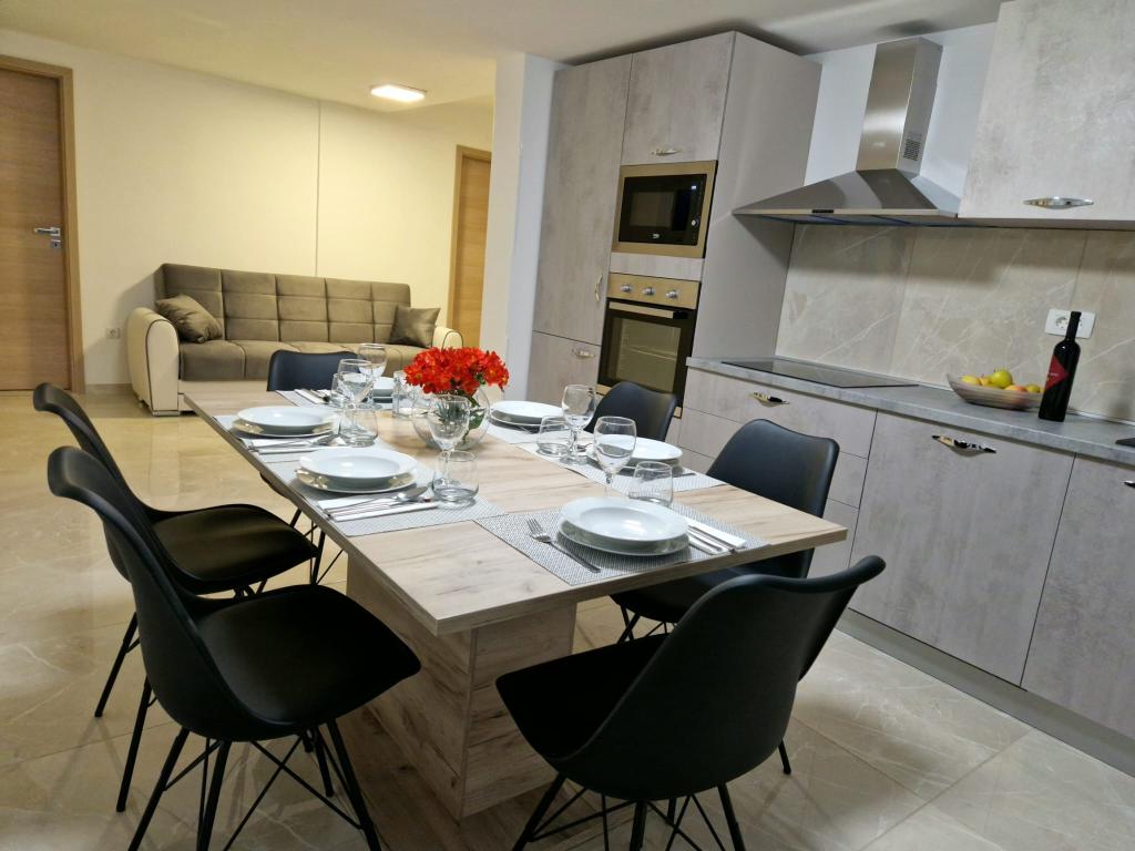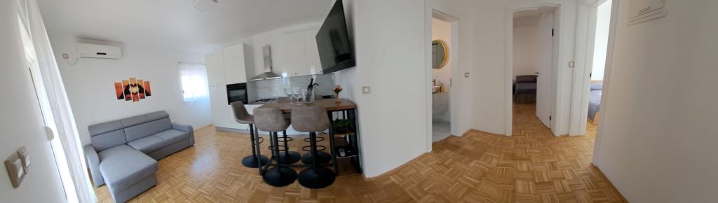 Apartments D are located 100-150 m from Karabana beach (3-5 minutes walk), and 400 m from Sulterova vala beach. Zadar airport is 12 km away (5 km by shorter route). Apartments D offer guests free parking, free Wi-Fi, terrace/balcony, garden view, seating area, flat-screen TV, air-conditioned accommodation, fully equipped kitchen with fridge, oven, dishwasher, microwave, hob, kettle for water, a toaster and a private bathroom with a shower. The indoor shared barbecue is available by prior arrangement. Bibinje (over 4,000 inhabitants) is located 6 km southeast of the historic town of Zadar (10 minutes by car or bus), between the Adriatic Tourist Road and the sea, it has four kilometers of coastline with beaches and paths, and walking along the promenade in the morning and in the evening is a special experience by the sea. Local restaurants offer special dishes of the region, there are cafes, small shops, a market, s