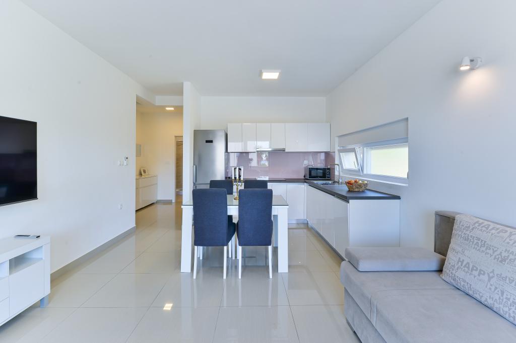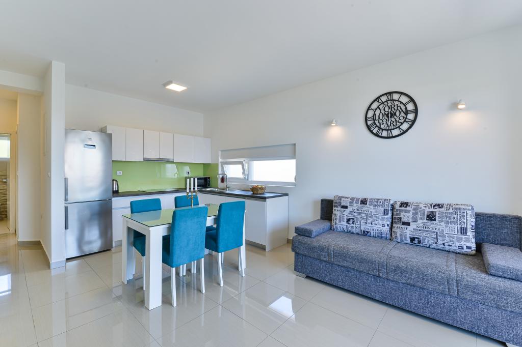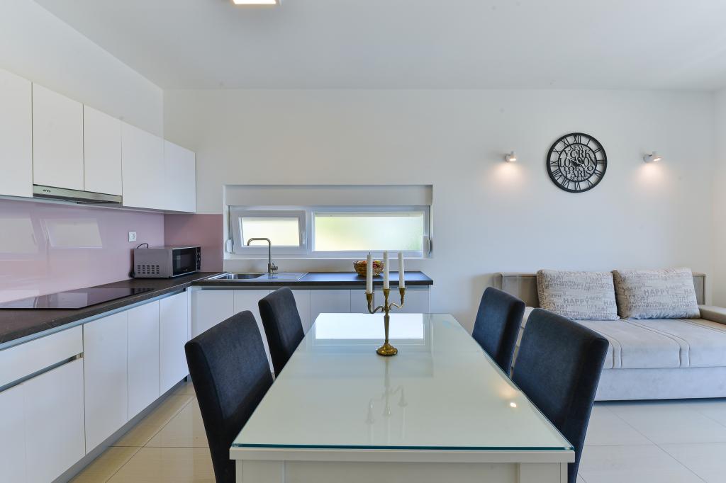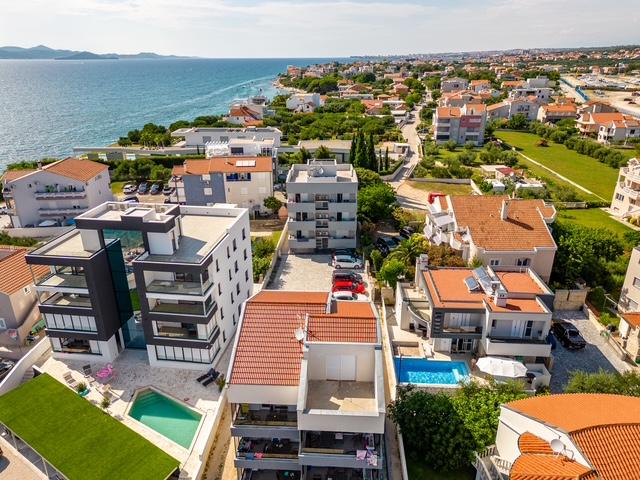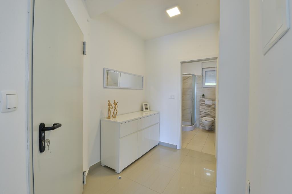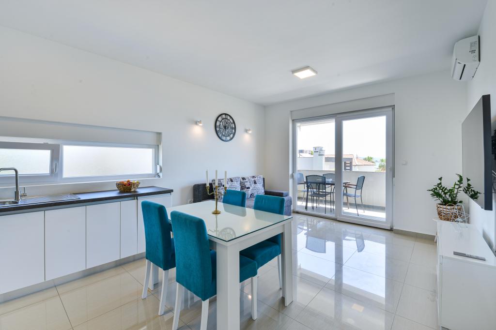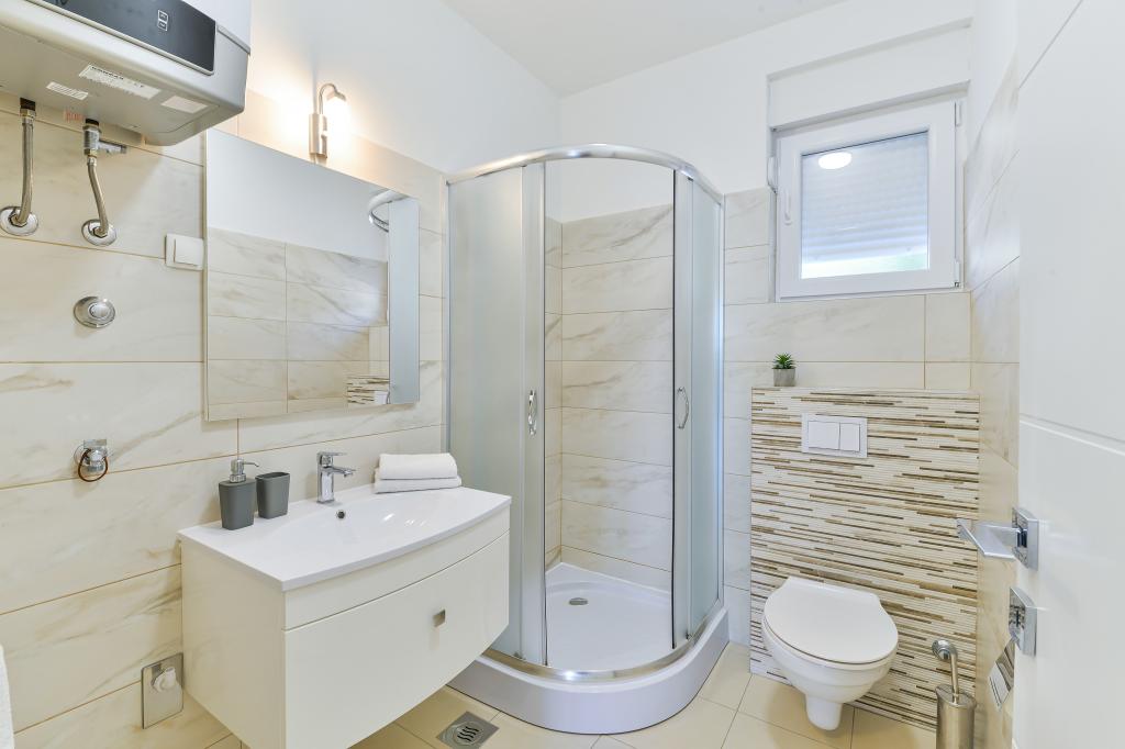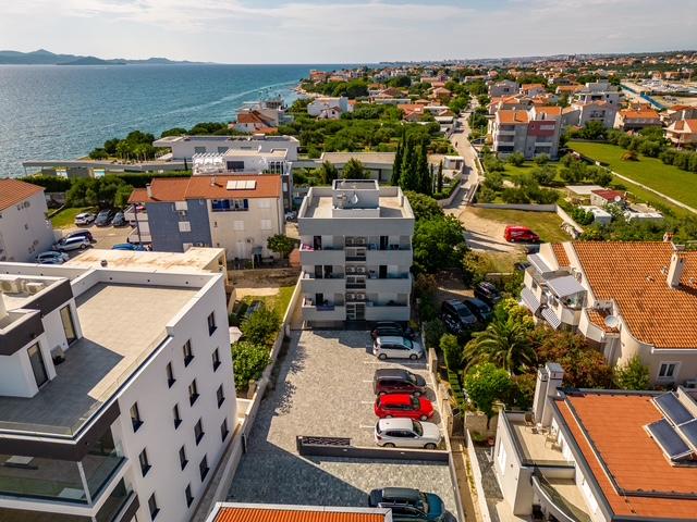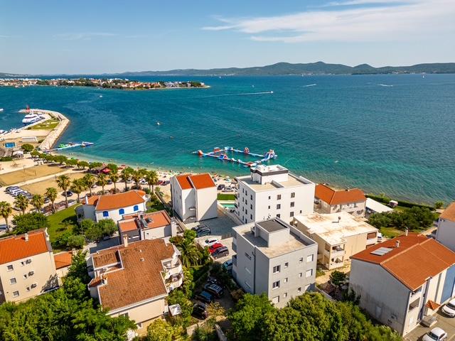 Fabian Apartments are located in the tourist area of Bibinje called "Kraj Punta". The facility is located 20 meters from the sea, from where a beautiful view of the Adriatic Sea and the Dalmatian islands stretches. The distance from the ancient city of Zadar is 10 minutes by car, where there are several large shopping centers. Within a radius of 30 km there are three national parks: NP Paklenica, NP Kornati, NP Krka. Excursions to the national park are also organized with departure from Bibinje or Zadar. All accommodation units are air-conditioned, equipped with a private bathroom, terrace, smart TV diagonal 140cm with satellite channels, room TV diagonal 110cm, equipped kitchen with dishwasher. The nearest restaurant and shop are 150m from the facility. A cafe bar and cocktail bar are 50m away. The beach is 20m from the facility, on the beach guests can rent a jet ski, go windsurfing or play beach volleyball. The facility includes free WIFI Internet, free parking. For a pleasant summer vacation with rays of sunshine and the smell of the sea, Apartments Fabian