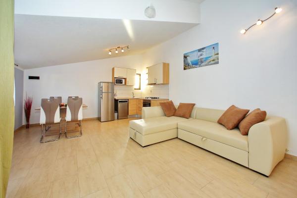 I am extremely pleased with the apartment and location. The apartment is very clean and beautiful, the beach with sun loungers and olive trees is beautiful, in a quiet location. People are very kind. Everything is within reach. I recommend very much! I recommend further. I wish you a lot of good guests!