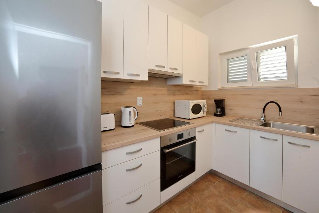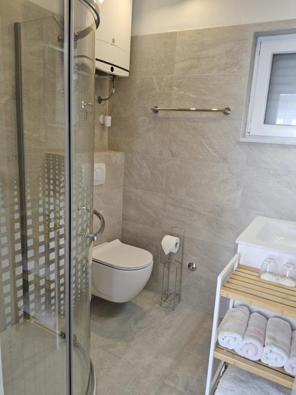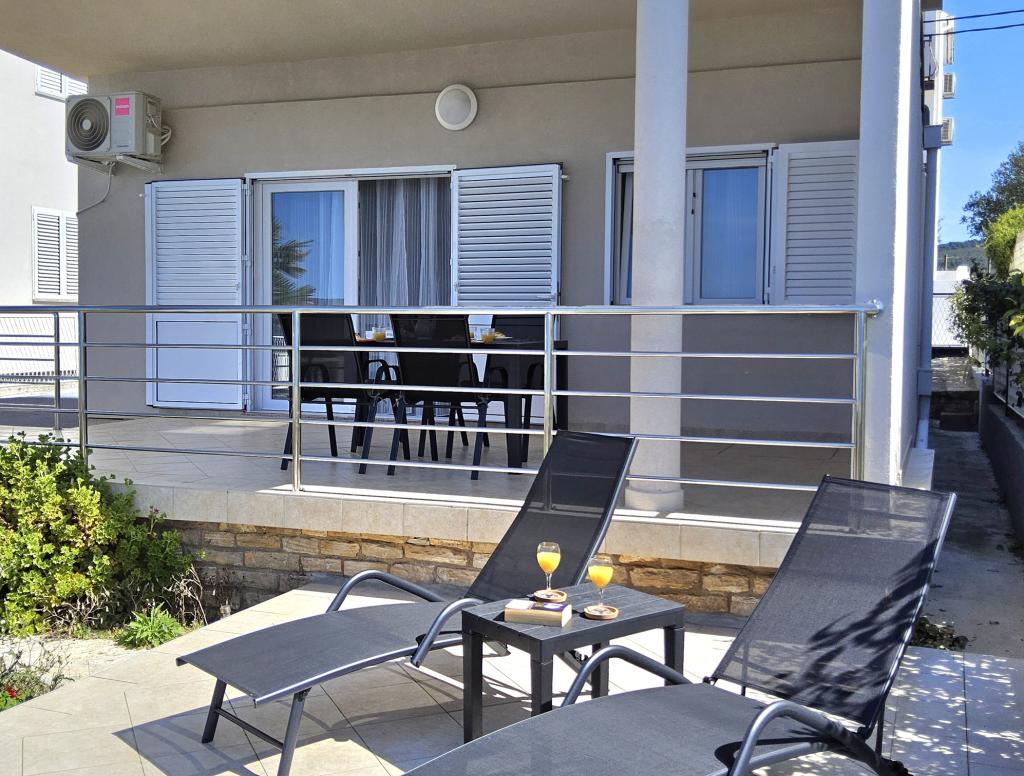 Adria Seaside House and Maribel Apartment offer air-conditioned accommodation with beautiful views of the sea, nearby islands and unforgettable sunsets. Guests have access to a private beach just steps away from the property, equipped with sun loungers, parasols and an outdoor shower with hot water - ideal for swimming, relaxing and sunbathing throughout the day. The apartments are a 15-minute walk from the town centre, where you can find shops, bakeries and restaurants. The historic town of Zadar with its numerous attractions is just a 15-minute drive away. A perfect choice for a pleasant and relaxing family holiday.