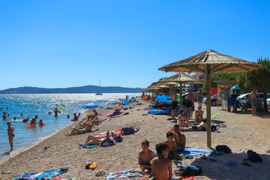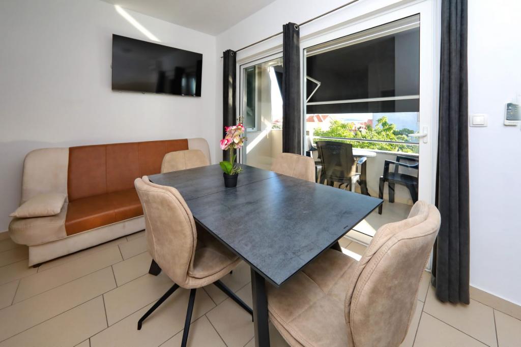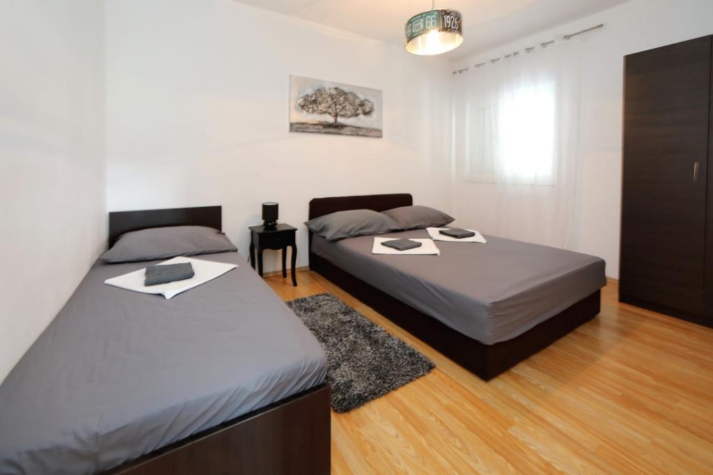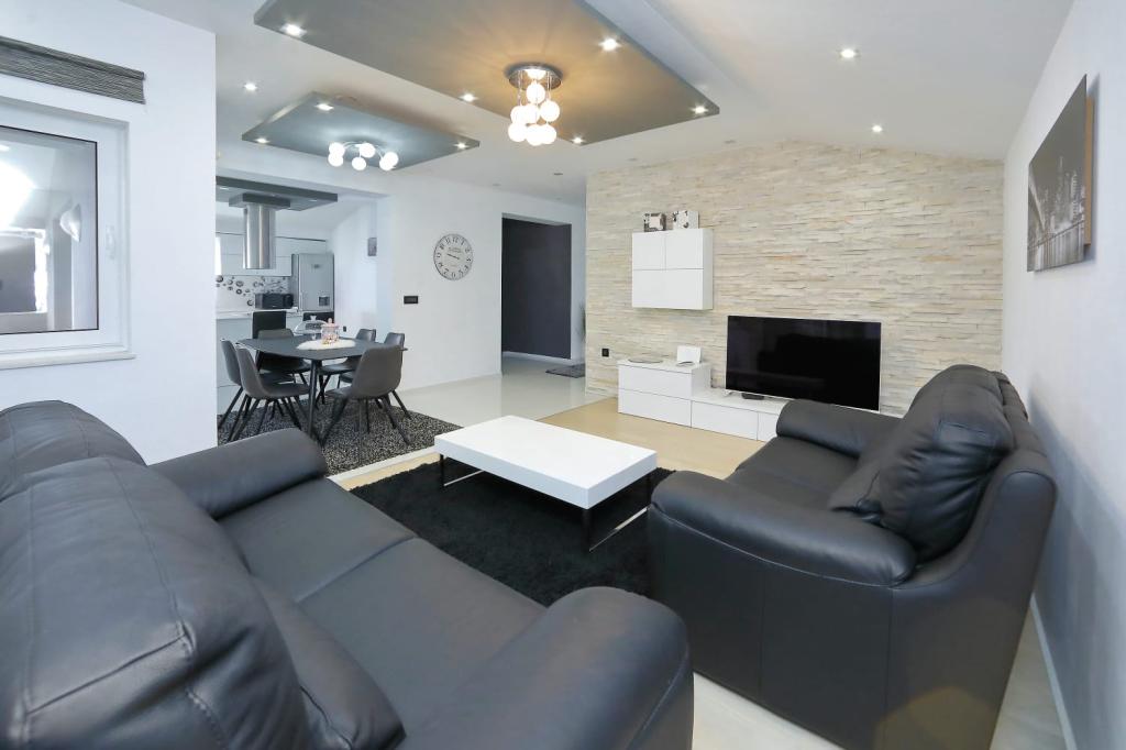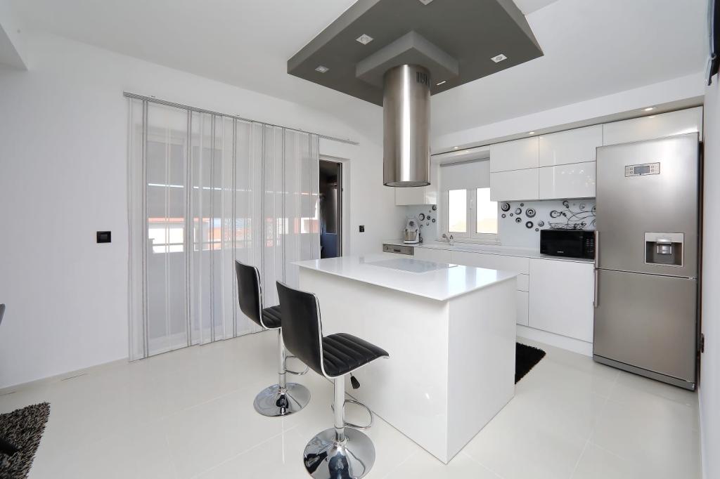 Luxuriously equipped deluxe apartment Neli with three bedrooms is located near the sea in Bibinje. The apartment is fully equipped with three bedrooms, two bathrooms, kitchen with all appliances, large refrigerator with freezer, oven, kettle, coffee maker, dishwasher ... the apartment has a large terrace overlooking the sea and islands, wifi, satellite TV, air conditioning and parking in front of the house. Close to shops, restaurant center and bus station
