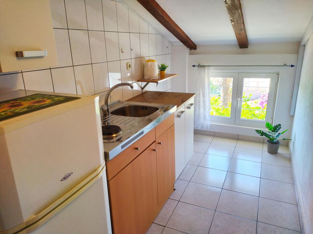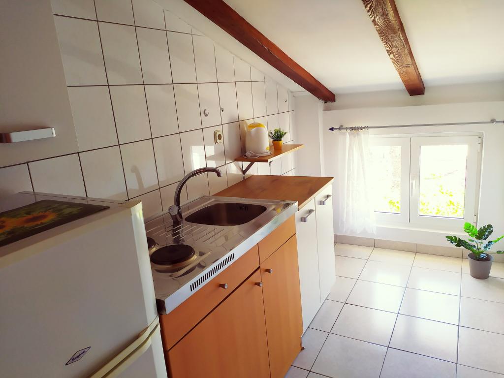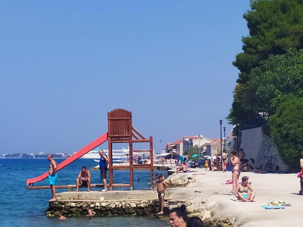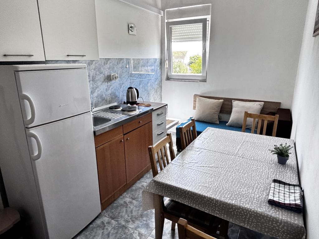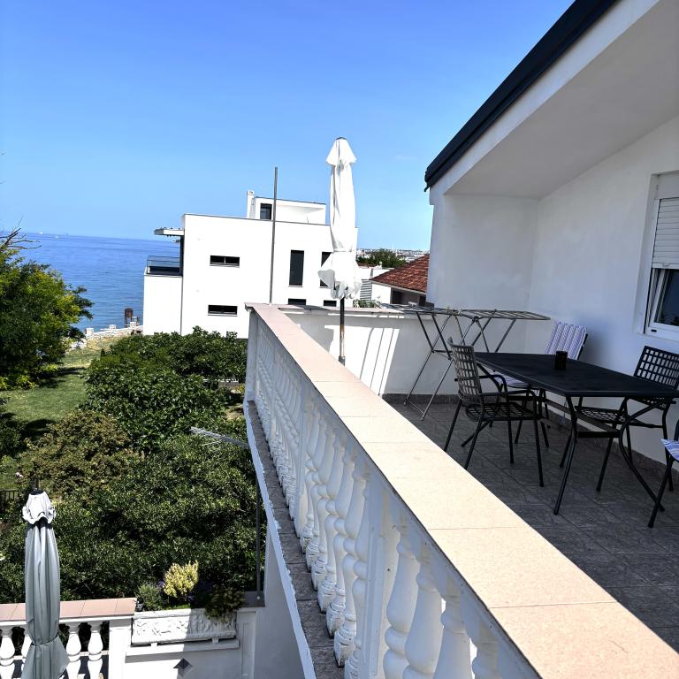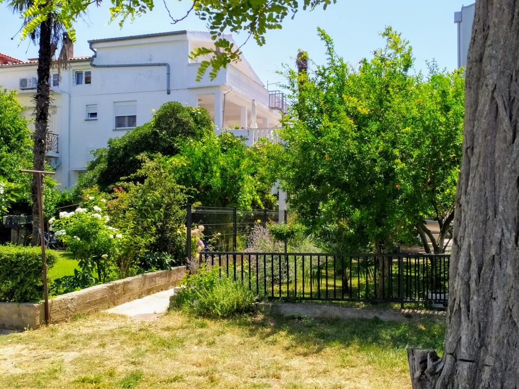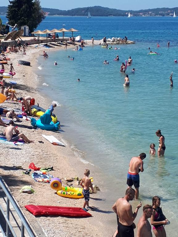 The family house is located in a quiet part of the town, bordering the Punta Rožica beach, first row to the sea. The beach is 10 meters away. Suitable for families with children. The beach is also suitable for non-swimmers. The 1st and 2nd floors are for rent. We live on the ground floor, which we do not rent. We have 6 apartments and one double room with a bathroom and a separate kitchen. Nearby are a market, fast food, restaurants, everything is within 200 meters. Parking is provided within the accommodation. Pets are allowed in some accommodation units for an additional fee of 5 euros per day.