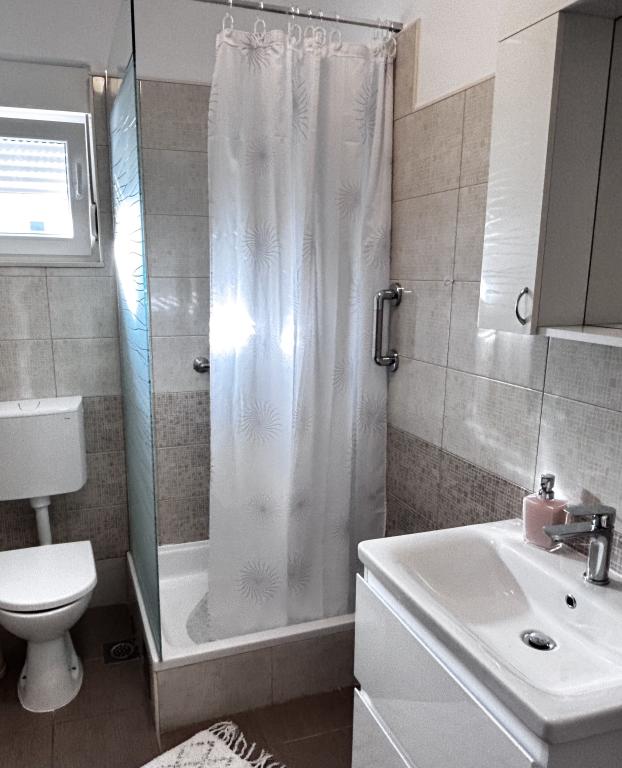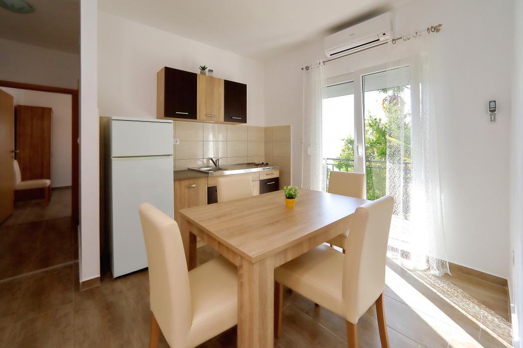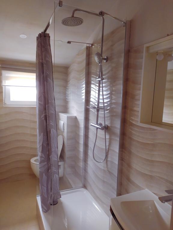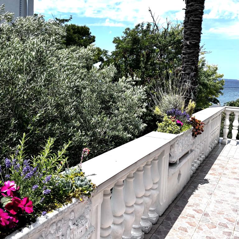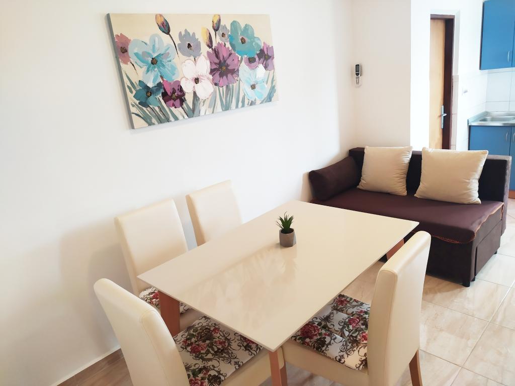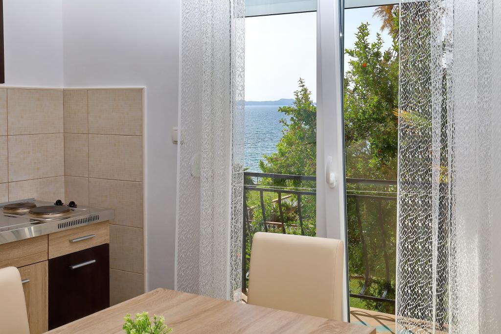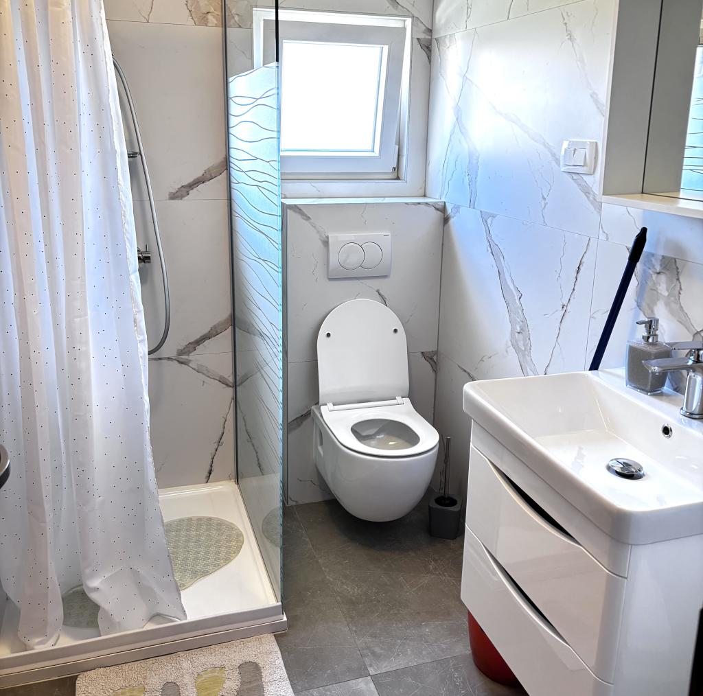 The family house is located in a quiet part of the town, bordering the Punta Rožica beach, first row to the sea. The beach is 10 meters away. Suitable for families with children. The beach is also suitable for non-swimmers. The 1st and 2nd floors are for rent. We live on the ground floor, which we do not rent. We have 6 apartments and one double room with a bathroom and a separate kitchen. Nearby are a market, fast food, restaurants, everything is within 200 meters. Parking is provided within the accommodation. Pets are allowed in some accommodation units for an additional fee of 5 euros per day.