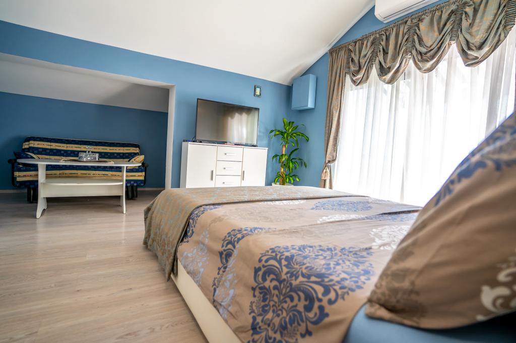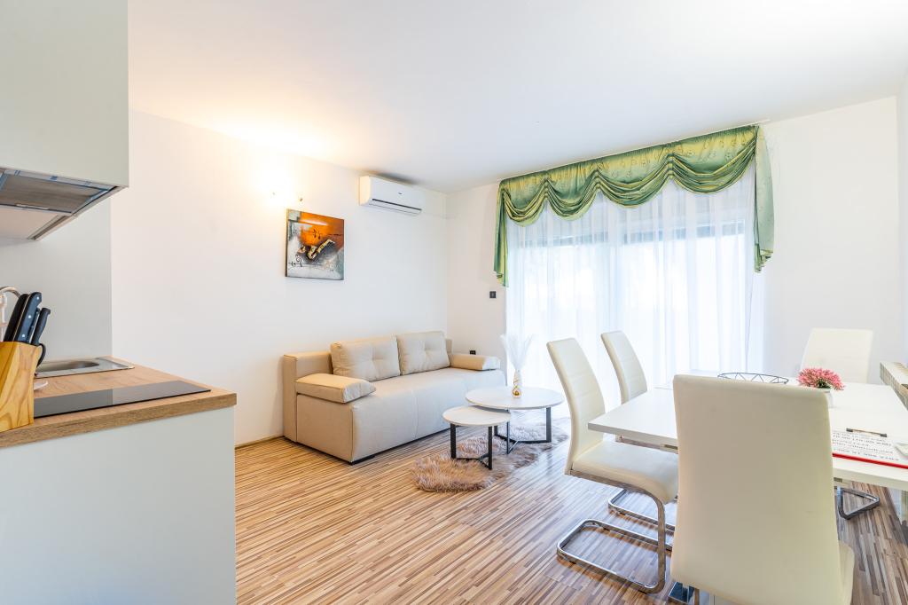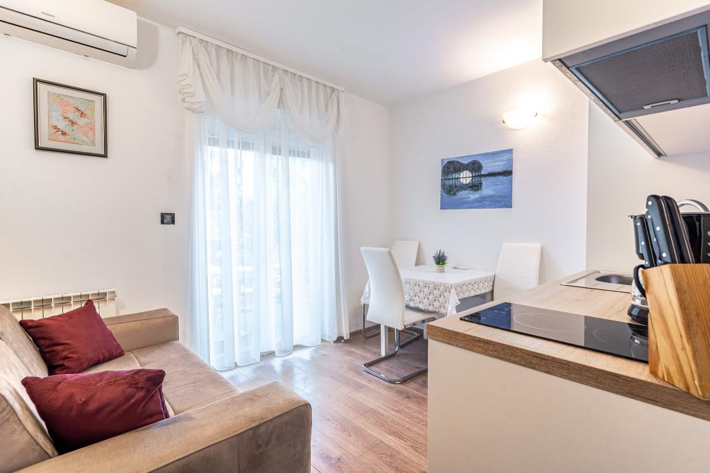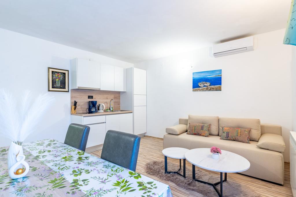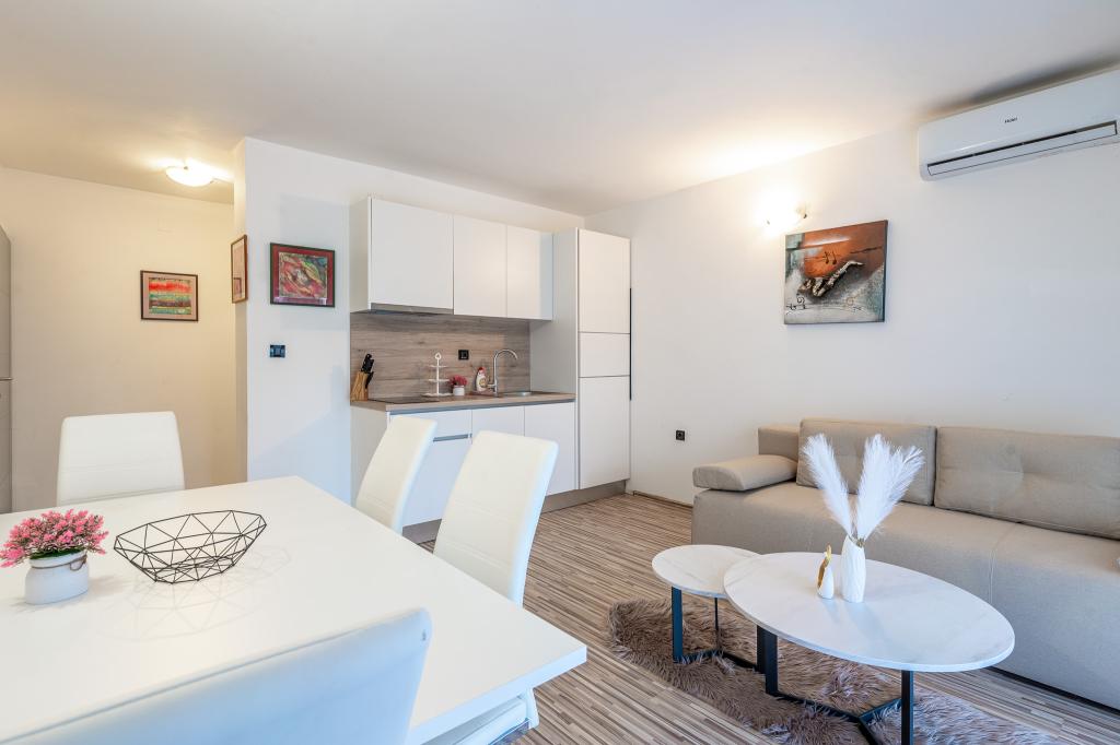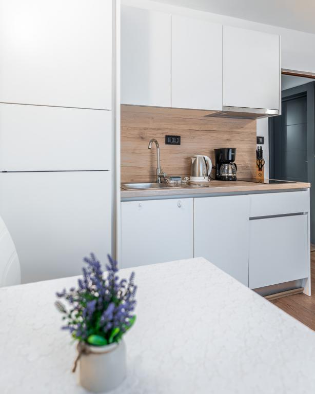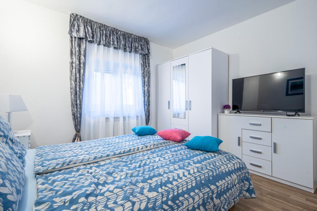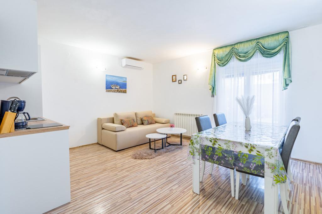 Located in Bibinje near Zadar, in a green oasis just a minute's walk from the beach, Villa Rudi offers its guests a relaxing atmosphere for an ideal stay. Villa Rudi also offers 8 accommodation units, of which 3 rooms and 5 apartments. Marina Dalmacija is located a few minutes from the Villa, and the city of Zadar, which is also known for the most beautiful sunsets, is only a 15-minute drive away. Villa Rudi offers free Wi-Fi and private parking. All accommodation units are equipped with LCD TVs, air conditioners and the latest technology - TV satellites that follow all world programs in all languages. Each apartment has its own equipped bathroom, modern kitchen, refrigerator and basic cutlery and coffee machine. During their stay, guests can enjoy a barbecue in the garden and use our sunbeds for free. The airport is only a 15-minute drive from the property, as is the entrance to the highway