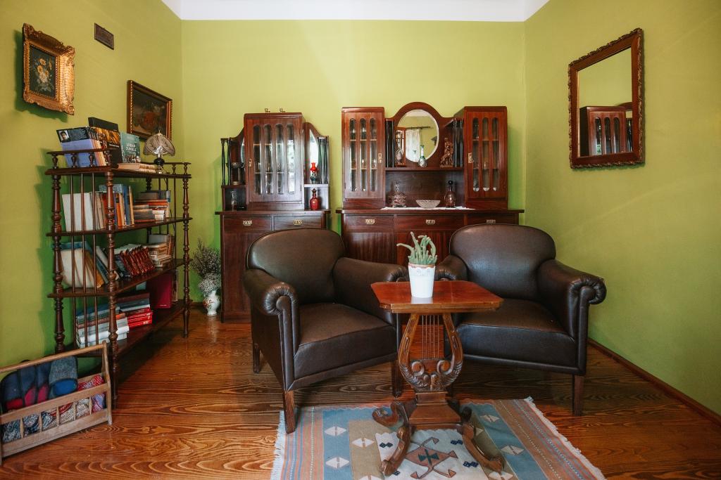 Biljka's father's house won the flattering title of the best traditional house in Croatia thanks to its interior that takes you back to ancient times. It is a house from the beginning of the 20th century of a traditional type of construction (the so-called Swabian house), which has preserved its charm until today. Two bedrooms contain solid wood furniture from the middle of the century, while the living room has 2 more beds so it can accommodate up to 6 people. There are also 2 bathrooms, a kitchen with a dining room and a long porch that leads to a covered terrace. In the courtyard part there is another terrace with a smaller covered area, a barbecue and a swimming pool in the summer. As the name suggests, the house is full of plants, and in the yard there is also a garden and an orchard.