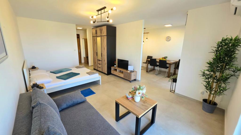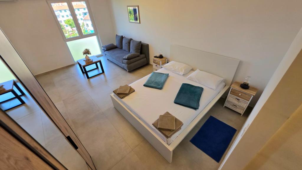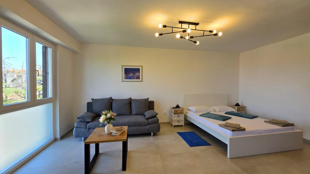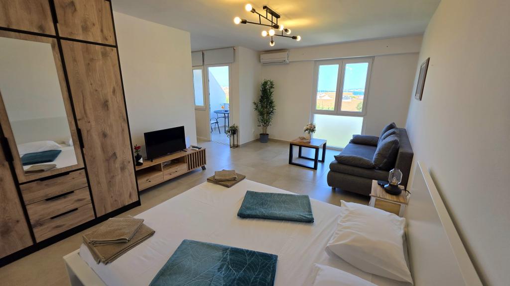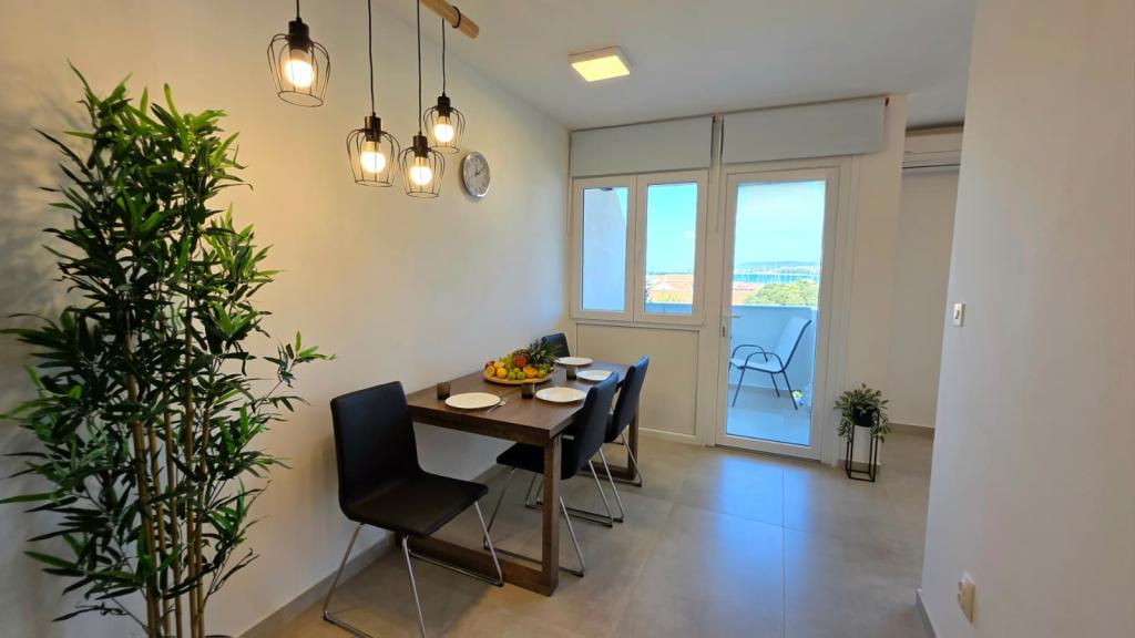 Newly renovated apartment in the center of Biograd. All essential amenities such as restaurants, cafes, pastry shops, shops, etc. are nearby. The beach is a 5-minute walk away. The balcony offers a view of the sea and the center of Biograd. The apartment has a dishwasher and a washing machine. The bus station is nearby. The apartment is located on the fourth floor in a building without an elevator.