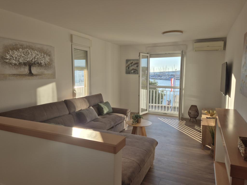 Fully equipped apartment in Biograd na Moru in the very center of the city, first row to the sea, with a beautiful sea view. The apartment is 20 m from the sea. Two balconies from which you can enjoy a beautiful view of the sea and the city. Ideal for a family and all amenities are within easy reach. Two bedrooms for 2+3 people.