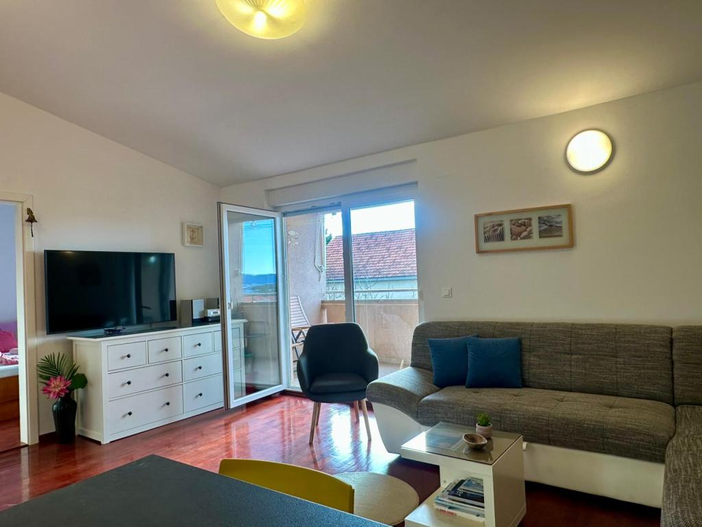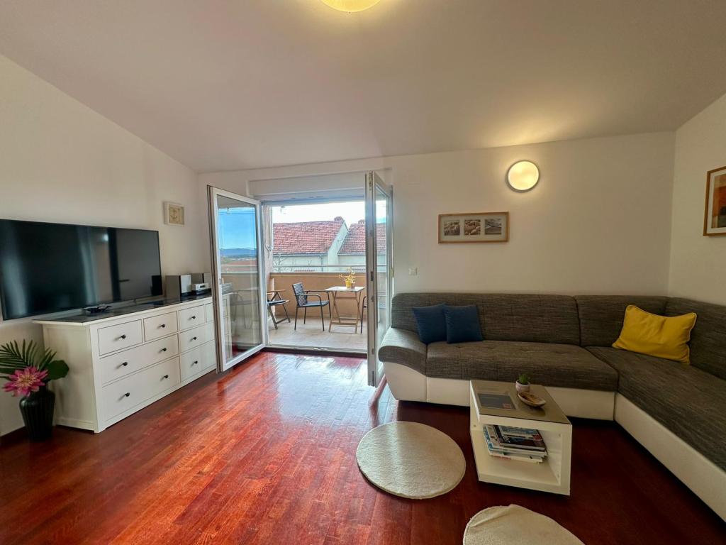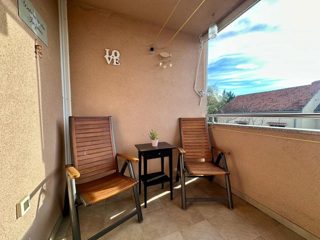 Dear guests, our apartment is located in an urban villa in a quiet city district, surrounded by greenery and just a few minutes' easy walk from the very center of Biograd. It is located on the second floor, and the spacious balcony offers a view of the sea, city landmarks and peaceful greenery, which automatically makes most guests have a morning coffee. The apartment can accommodate a maximum of 4 people, including children. The nearest beach is approximately 900m away. The interior is fully equipped with all necessary household appliances and practical details that make your stay pleasant, functional and simple. In short: you feel like at home, only the beach is much closer! The owners do not live in the same house, but we are only a hundred meters away. This means that you have complete privacy, but also the security that I am available to you whenever you need me! Send me an inquiry so that we can check if your desired date is available. If you have any additional questions, please feel free to contact me. Your Silva