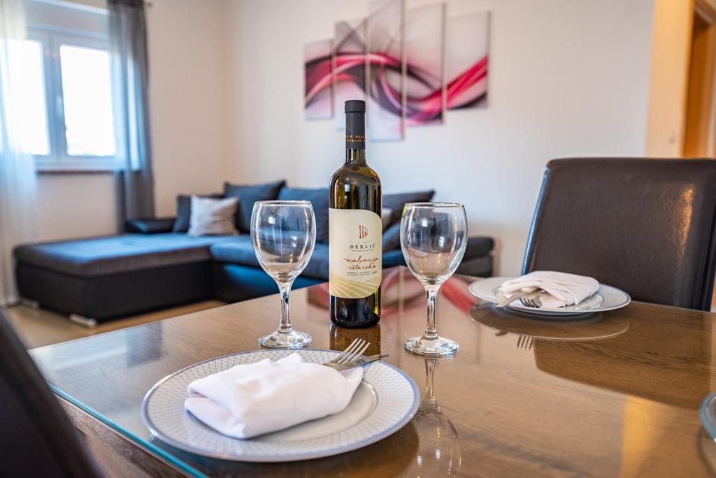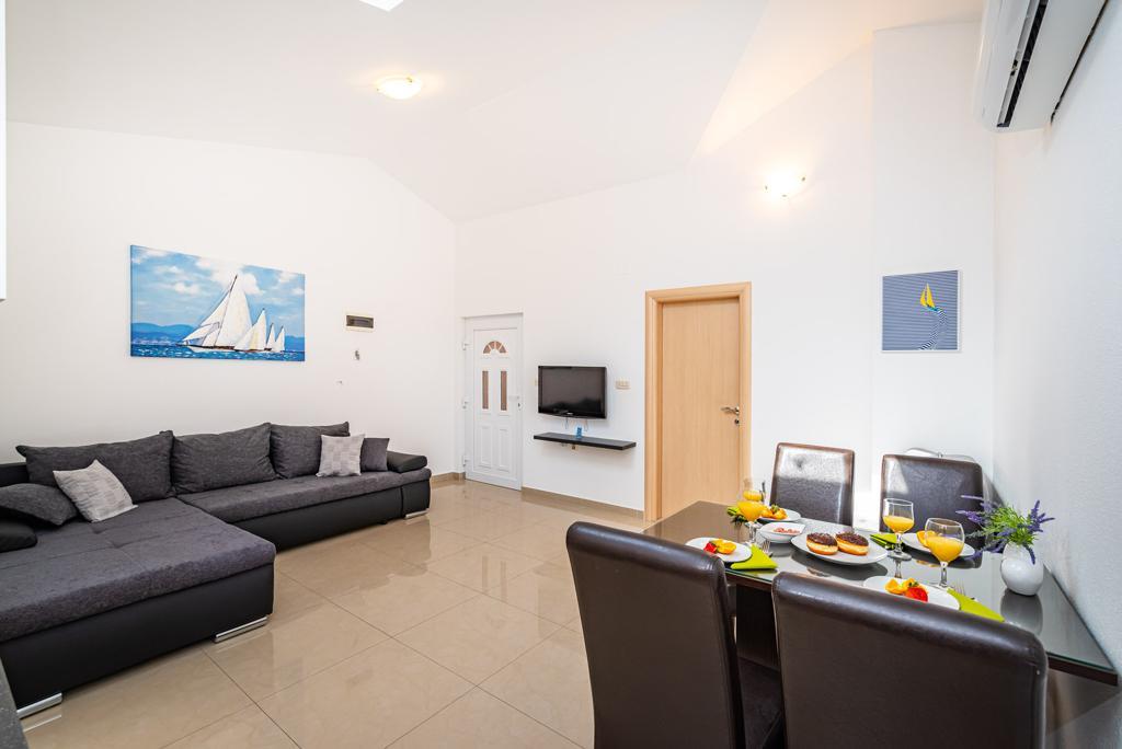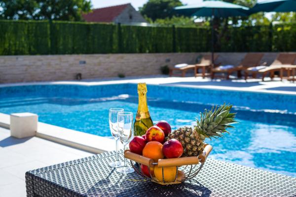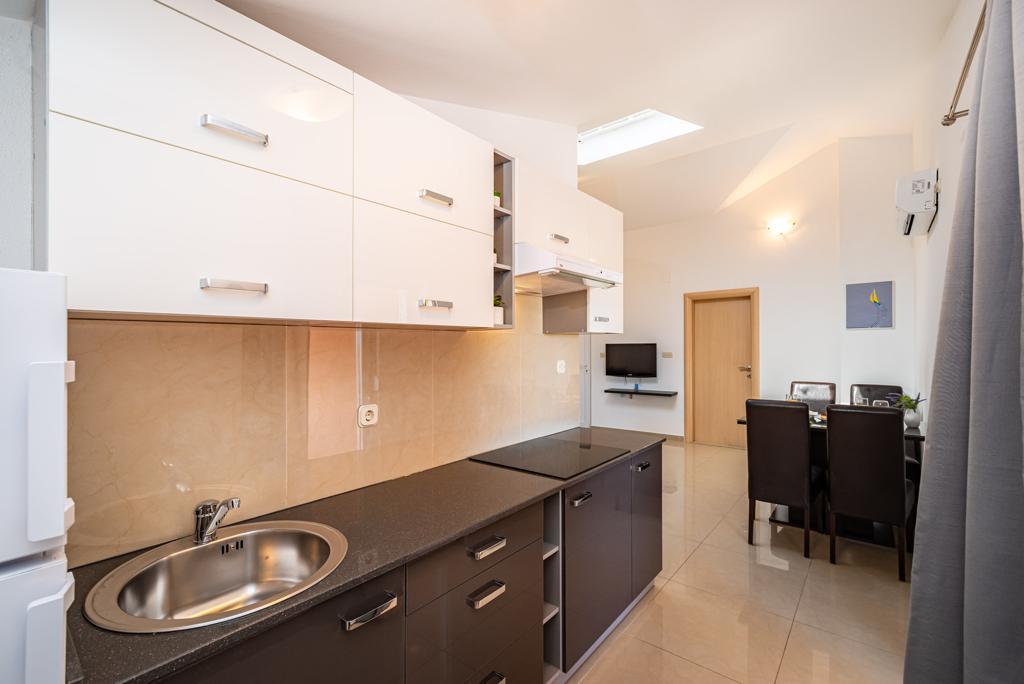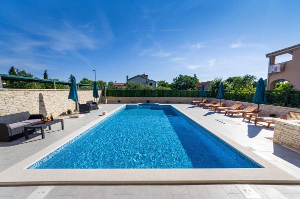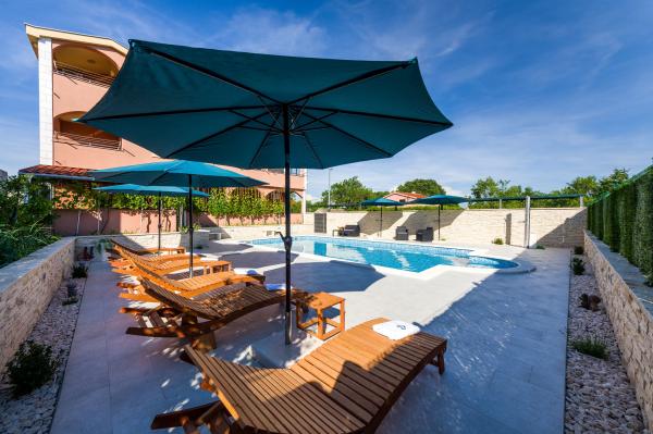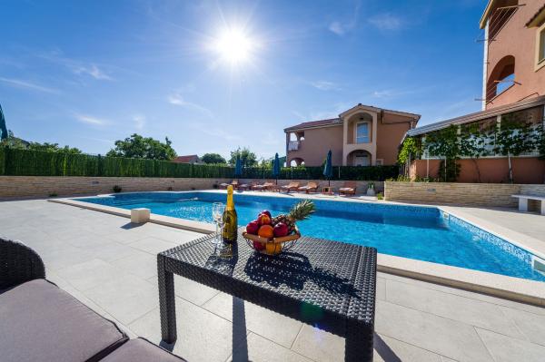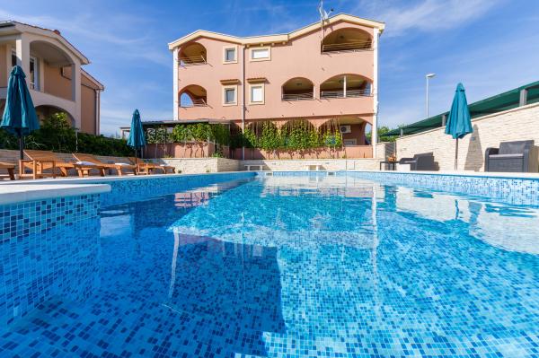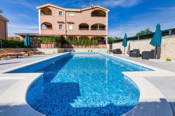I am renting 5 one-bedroom apartments with a swimming pool, the apartments are located in a quiet part of Biograd. Each apartment has a fully equipped kitchen (with dishes), a room with a double bed (bed linen), a living room with a large sofa bed (for two people), a baby cot, a single bed. (TV, satellite), toilet, balcony, barbecue, parking, air conditioning. The pool (10 × 5m) has counter-current swimming, hydromassage and ice lighting. The facility is under video surveillance. The apartments are intended exclusively for vacation because they are located in a family house so it is not for fun and partying. Each apartment can accommodate 4-5 people. The city is ideal for children, young and old given the diverse entertainment offer.