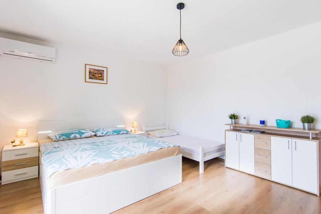 Welcome to RoLo apartments and rooms. Bošana beach is located right in front of the house. On the beach itself, our guests can engage in sports activities, and there are also facilities for children - children's playground, water park, water sports. In case you want to relax, have something to drink or eat, you can do it in nearby cafes, restaurants or fast food. The parking lot is right in front of the house, and in the yard of the house, next to the garden, there is also a barbecue, which our guests can freely use. We recommend our apartments and rooms to families, couples and singles. The accommodation price includes tourist tax, parking space, use of air conditioning, use of wireless internet and bed linen. All our accommodation units have their own bathrooms with toilets. Since we are located near the very center of the city, everything you need is close to our accommodation, and you need to walk to the center in less than 10 minutes.