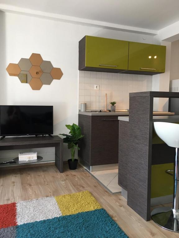 Accommodation heartily recommend to everyone !! We recently returned from a vacation and are delighted with the location, as well as the mistress who is very friendly and affordable, and discreet! It's literally as in the pictures, the center and the beach are a few minutes walk. In the garden there is a parking space for a car that is no need to burn. The apartment is neat, clean, equipped with everything you need ... even the little things that mean a lot, but rarely where you can get them ... towels, towels, garbage bags, dish washing detergent, sponge .... even greeted us and freshly cut flowers in a vase on arrival !!