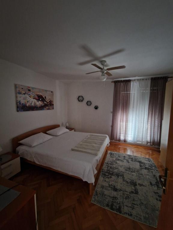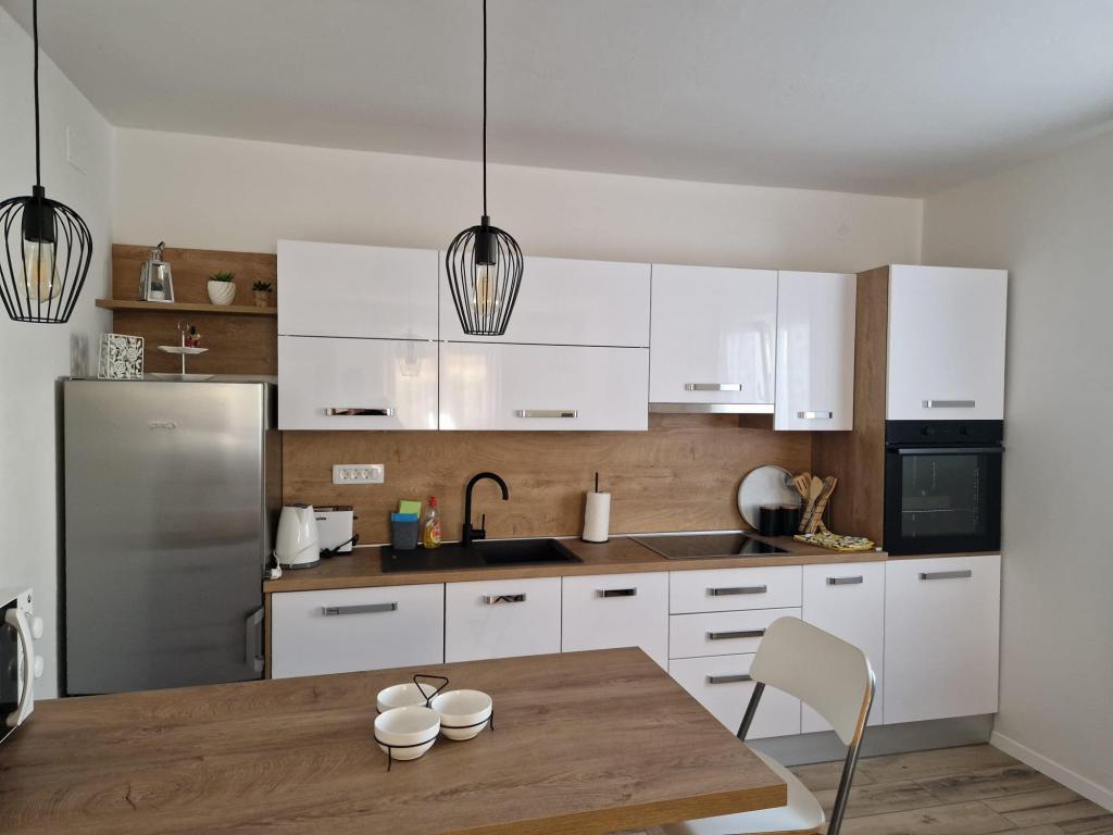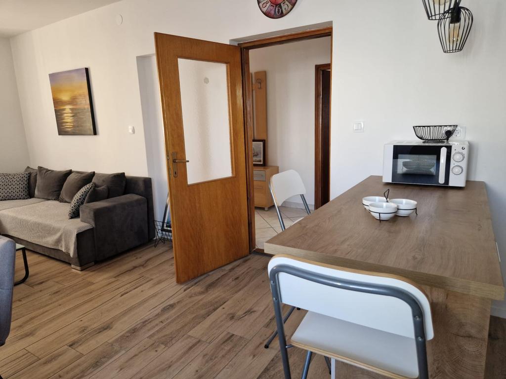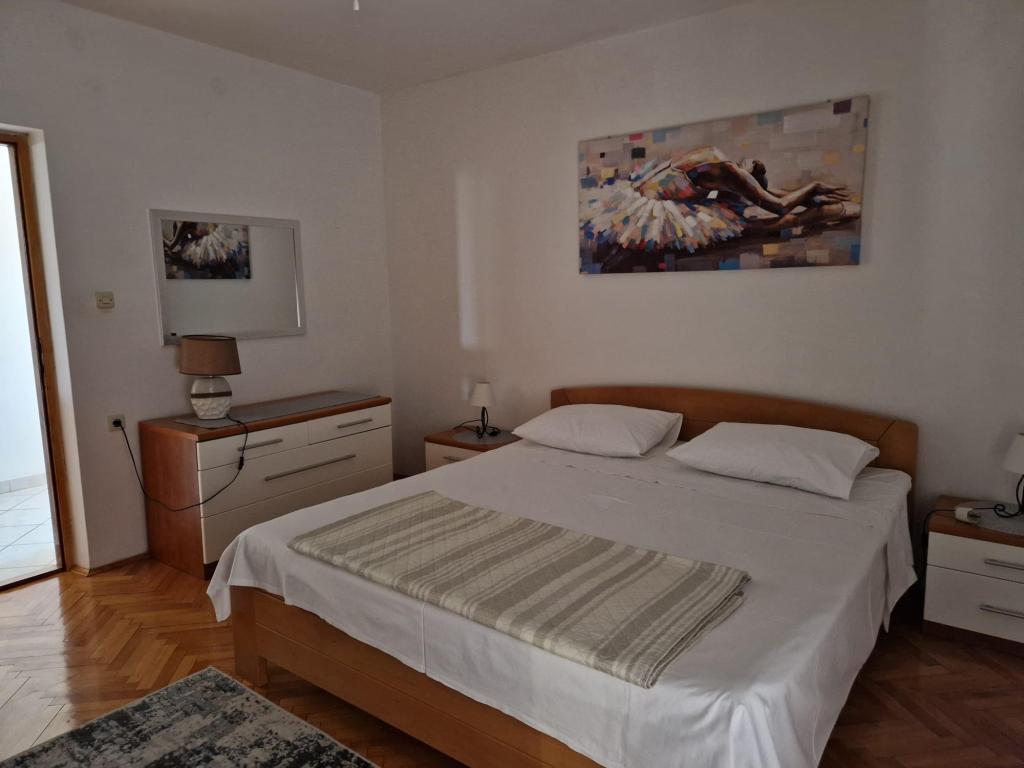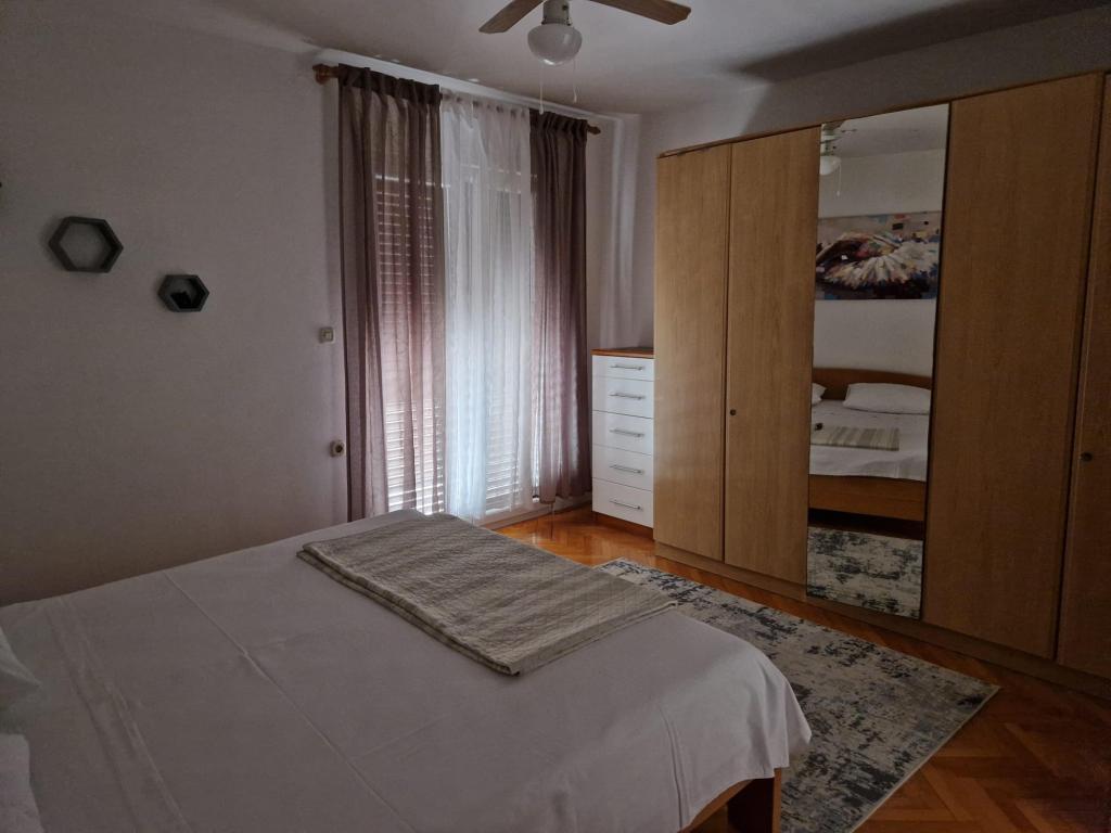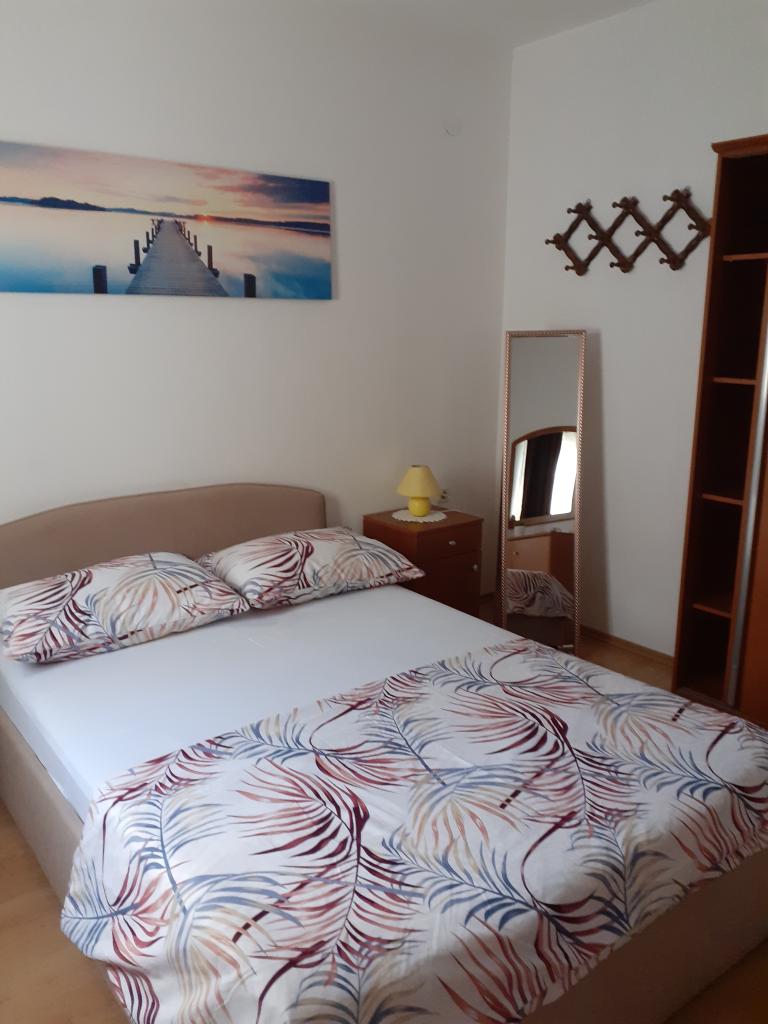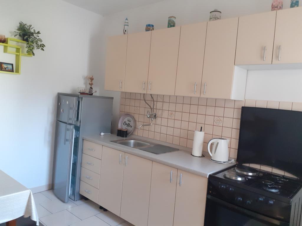 We are renting a three-room apartment in Biograd na Moru. The apartment consists of: two bedrooms, two bathrooms with showers, two balconies (one in each room) and a large balcony in front of the entrance to the apartment, a living room with a large sofa bed, a new and modernly equipped kitchen and a hallway. As for household appliances, the apartment is equipped with a washing machine if necessary, all kitchen appliances and a new refrigerator, in the living room there is a plasma television with foreign programs and other things. There are three air conditioners in the apartment, and each room is equipped with its own air conditioner to make hot temperatures easier to bear. The apartment is located 5 minutes from the beach, in the city center with all the necessary facilities nearby (shops, health center, station, city parks, etc.). Parking spaces are also available in the yard in front of the apartment.