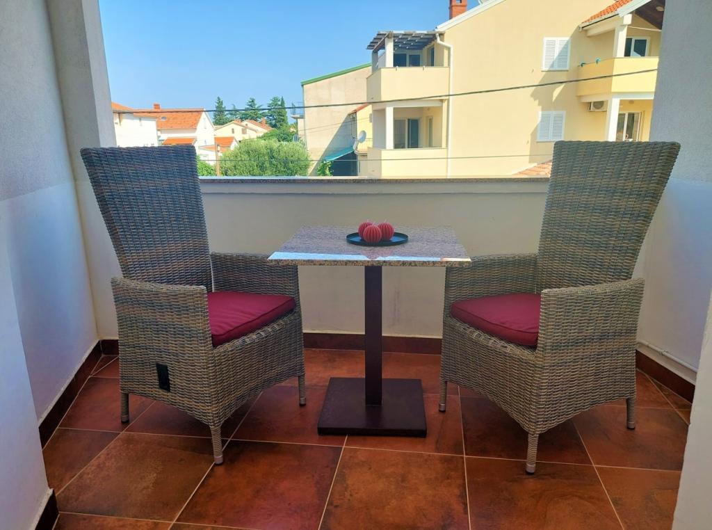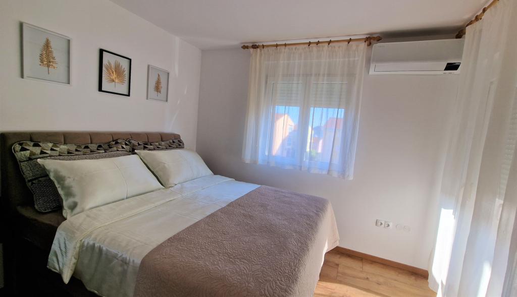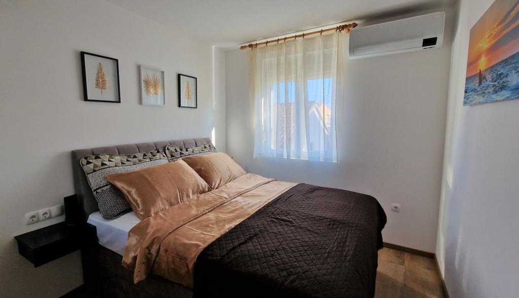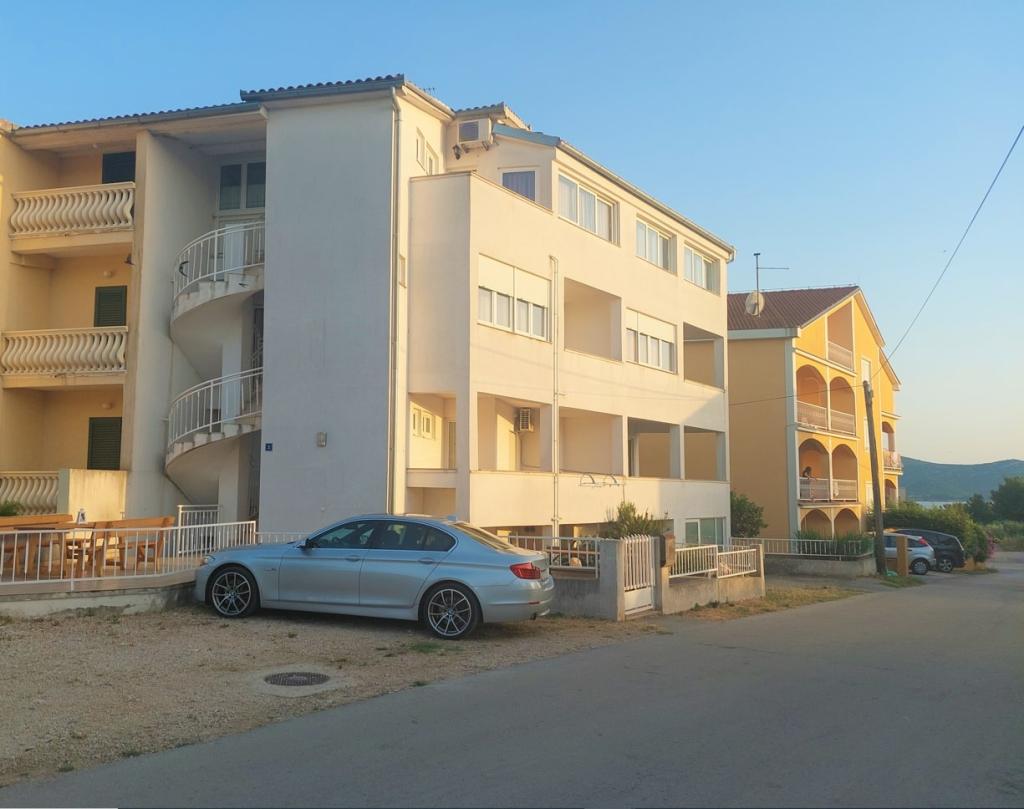 Fully and modernly equipped apartments in a quiet area of Biograd. They are located on the first floor, each bedroom has its own air conditioning. The apartments with a sea view are located just a 3-minute walk from Kumenat beach and 5 minutes from Soline beach. You can reach the city waterfront via a well-maintained promenade along the sea in a 20-minute easy walk. The nearest shop is a three-minute walk from the apartment. Each apartment has a parking space in front of the building.