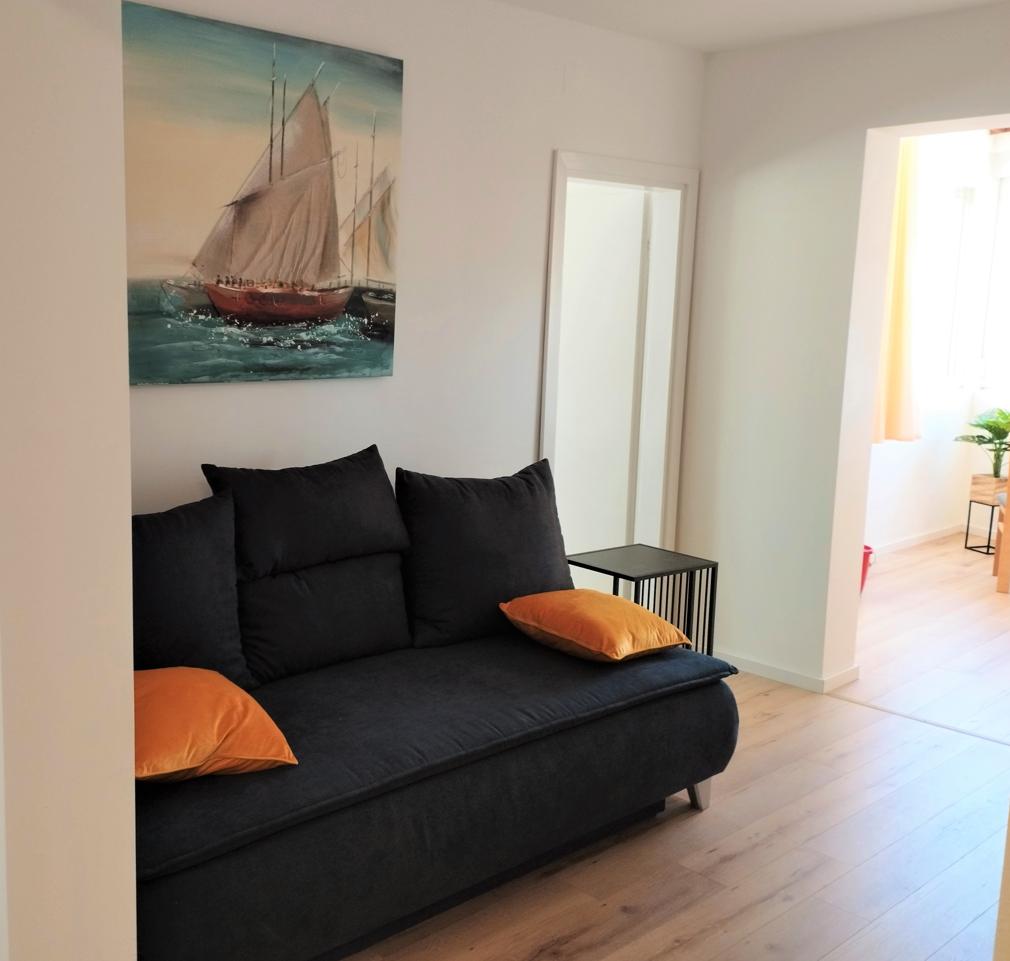 The apartment is nicely decorated, equipped with all the appliances mentioned, spacious enough for a young couple or family with one child. Beautiful terrace overlooking the sea. Shop and beach 3 minutes walk, 10 minutes walk to restaurants and other entertainment. We strongly recommend!