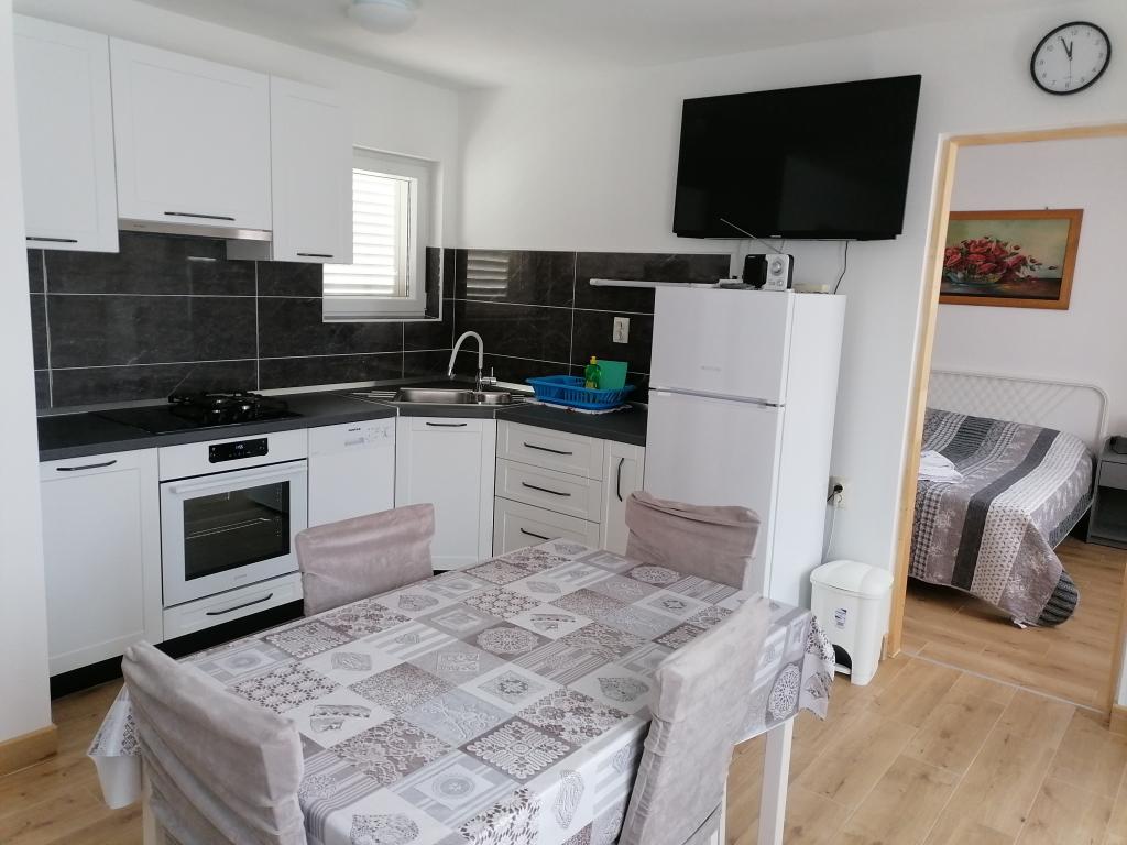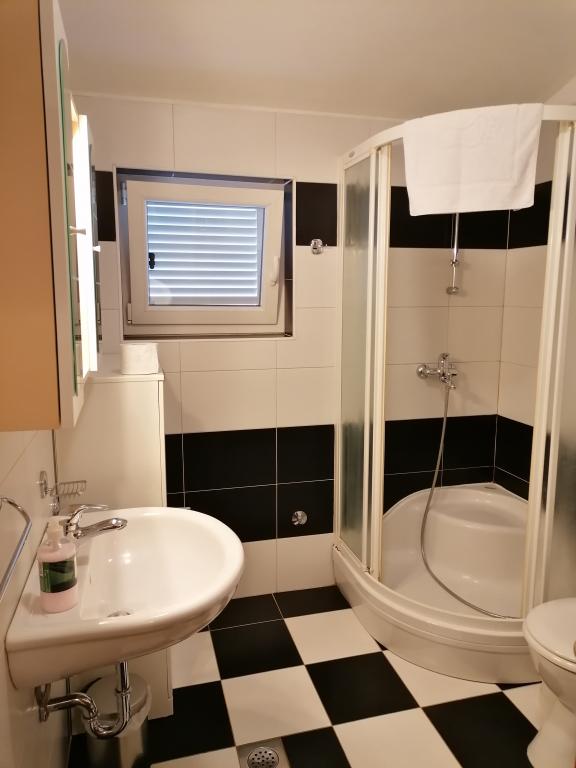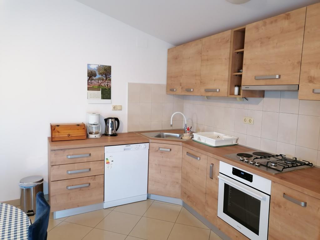 The apartment is located in the city center, close to the Dražice beach, shops, bus station. Apartment A4+2 has two bedrooms (bed dimensions 180*190 and 160*200), and in the living room there is a sofa (sleeping dimensions 140x200), it has one bathroom and one toilet. The apartment is located on the second floor, and its area is 115 square meters, it has two balconies. From the balcony you can see the island of Pašman. Parking in the yard, wi-fi, TV, air conditioning, dishwasher, washing machine, mosquito nets... Apartment A2+1 has one bedroom (bed dimensions 160*200), bathroom and kitchen with living room (sofa 120*190). In the apartment you have air conditioning, washing machine, dishwasher, mosquito nets, TV, parking in the yard. The terrace is in front of the apartment.