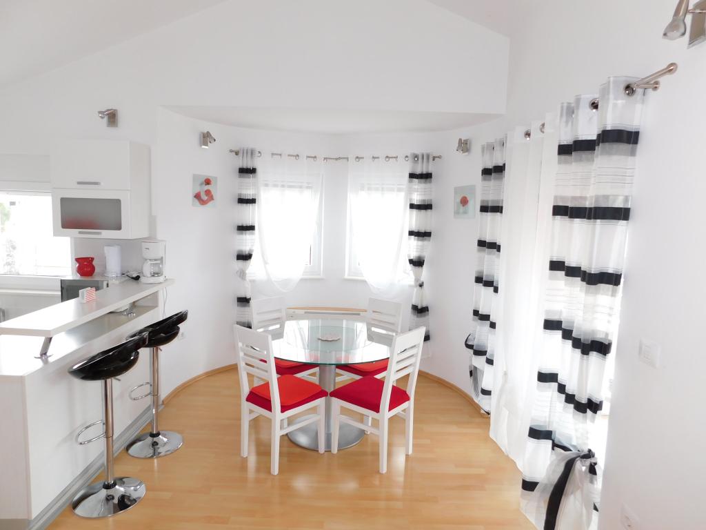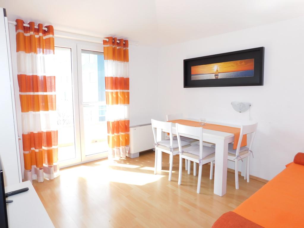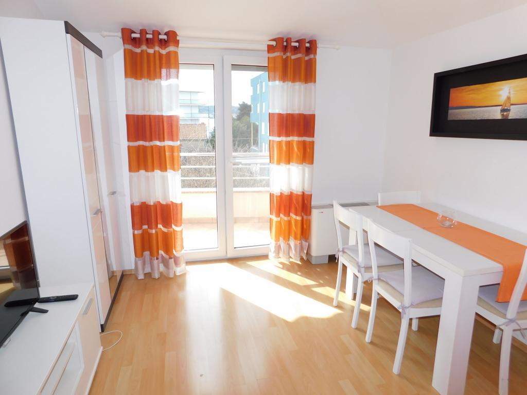 We stayed in a green apartment for 4 people. The apartment is nice, modern, great location, but for the price of 120 € we expected something more. Missing little things that are important and that make guests come back or not come back. For the stated price, we expected at least a set of 6 glasses, 6 plates, spoons and other cutlery. As in other apartments where we used to stay in the kitchen there should be dishwashing powder, a little bit of sugar, salt, possibly spices, a little oil, vinegar and other necessities just enough to have for the first moment. In some other apartments, guests are greeted with a bowl of fruit or a bottle of wine. There is also a parasol on the terrace and comfortable chairs. The terrace is therefore not usable. There is a beautiful sofa in the living room, but it is quite uncomfortable as is the bed in the children’s room. Television has only a few basic TV programs. All in all a nice apartment, a kind host, but there is no additional service that would justify such a high price.