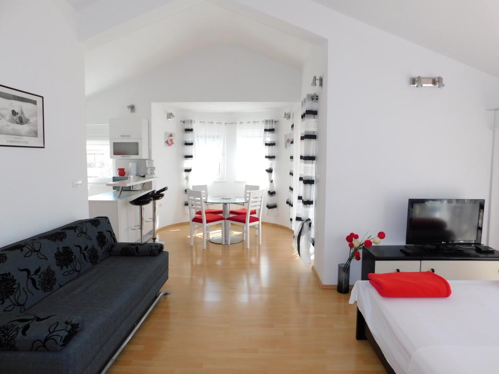 A wonderful apartment. We stayed at the very top in the studio, it is very nicely furnished, there is enough space and the kitchen is very modernly equipped, with enough crockery and other utensils. Mrs. Vanesa welcomed us very warmly, we were only disturbed by the television. Because during our stay, the Olympic Games and watching something was not possible, because there was no signal at all, only the satellite worked, but otherwise everything was fine!