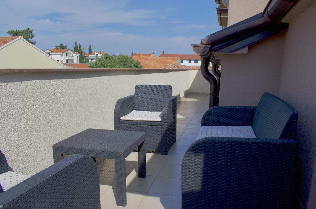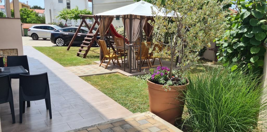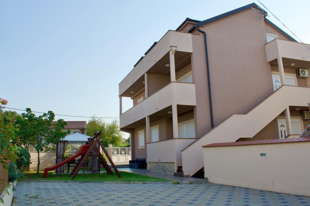 Our apartments are located in Biograd on the sea just 7 minutes on foot above the main city beach Dražica. The nearest shop is across the street from the house, and the city center is 600 meters away. There are also numerous cafes and restaurants nearby, and a summer cinema under the stars is just a 3-minute walk from the accommodation. All apartments are equipped with air conditioning, TV, free Wi-Fi, all without additional charge, and contain a fully equipped kitchen with dishwasher, kettle and coffee machine. In the apartments, you will find free toiletries and kitchen supplies along with clean cloths and towels. In the yard of the house there is an outdoor fireplace with barbecue equipment, and free parking is available.