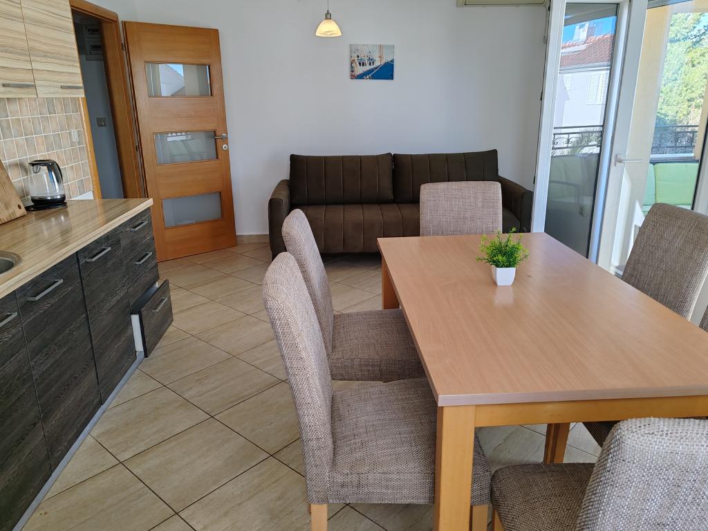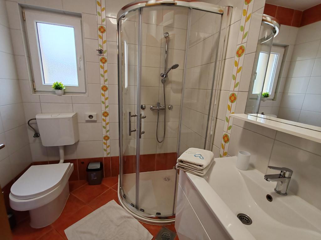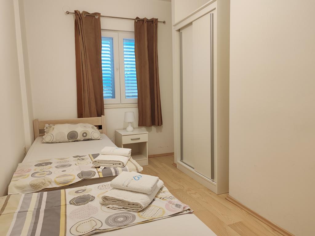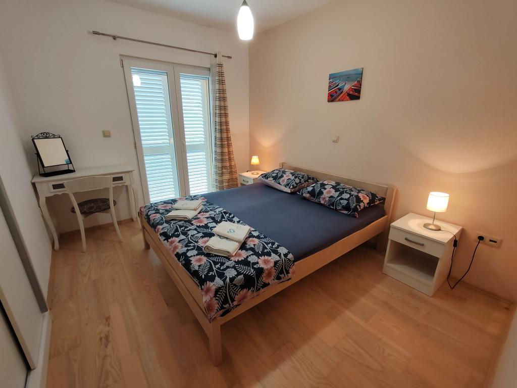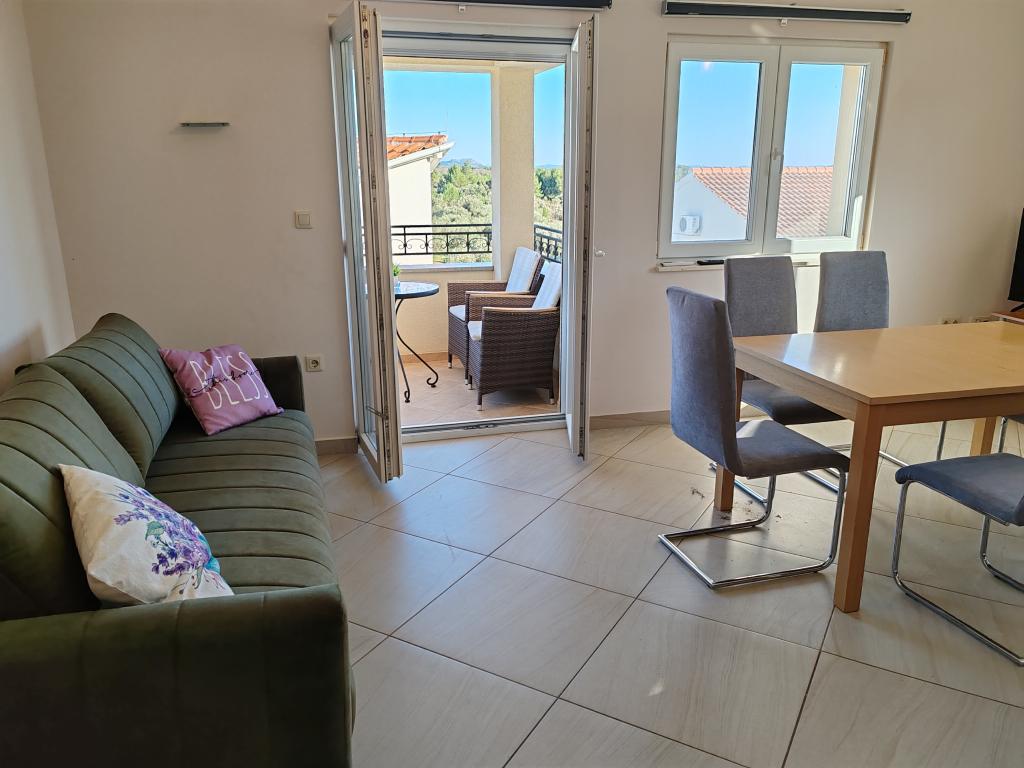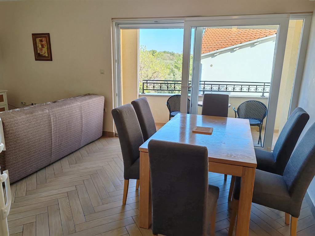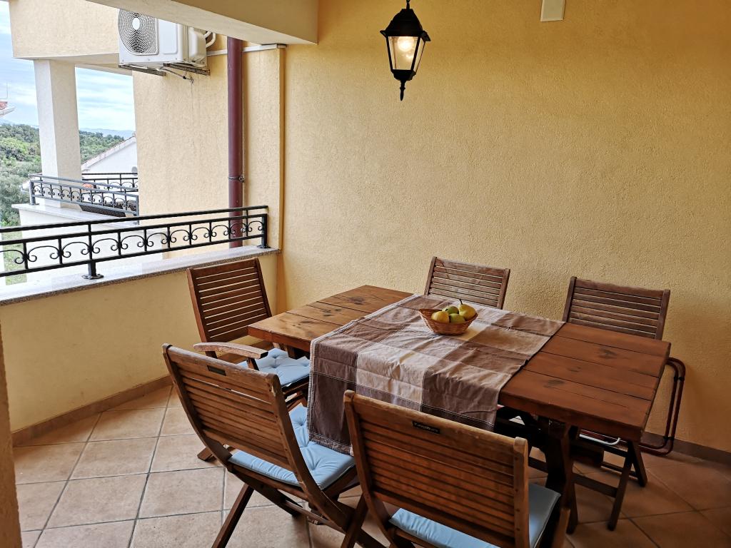 The apartments are located in a house located in the quiet settlement of Kumenat. It is surrounded by greenery and nature, only 250 meters from the sea. The facility consists of 5 apartments with a capacity of 4-6 people. All apartments are air-conditioned, with TV and a terrace with a view of the sea. Each apartment has a washing machine. Around the building, parking is provided for all guests, and if desired, the use of an outdoor grill.