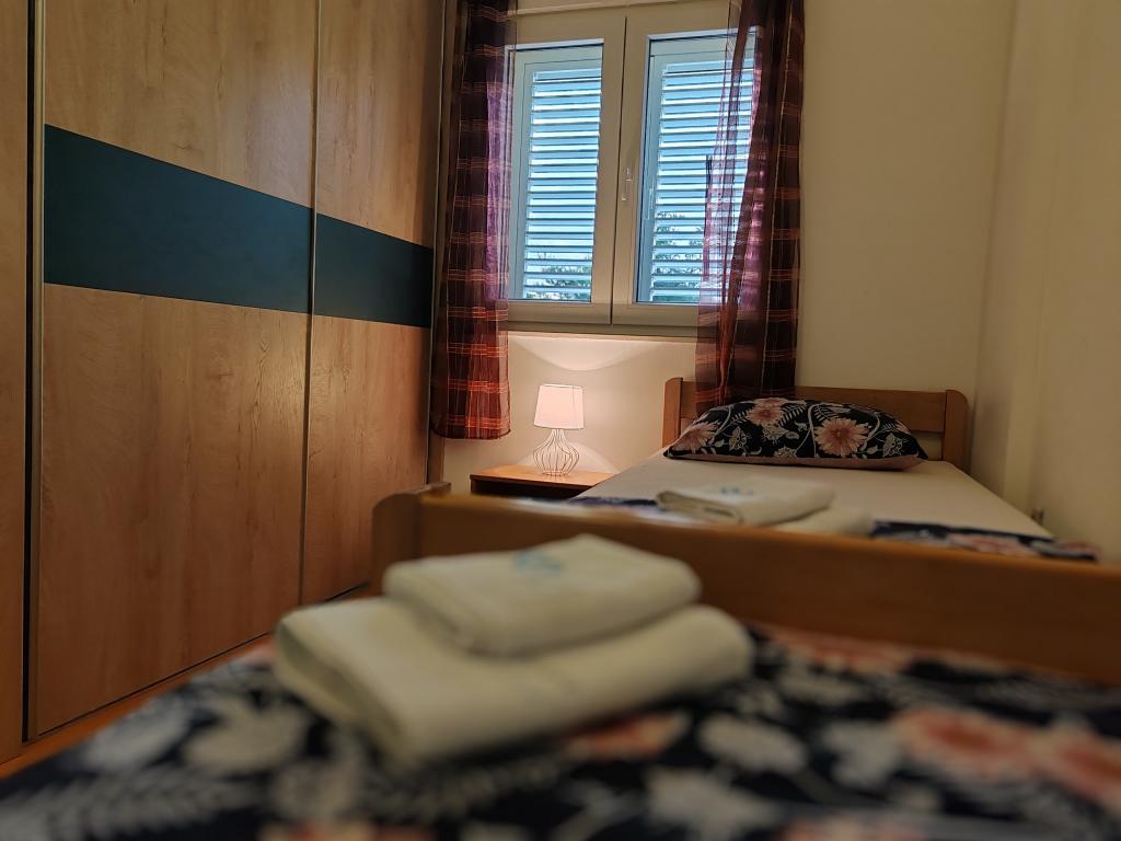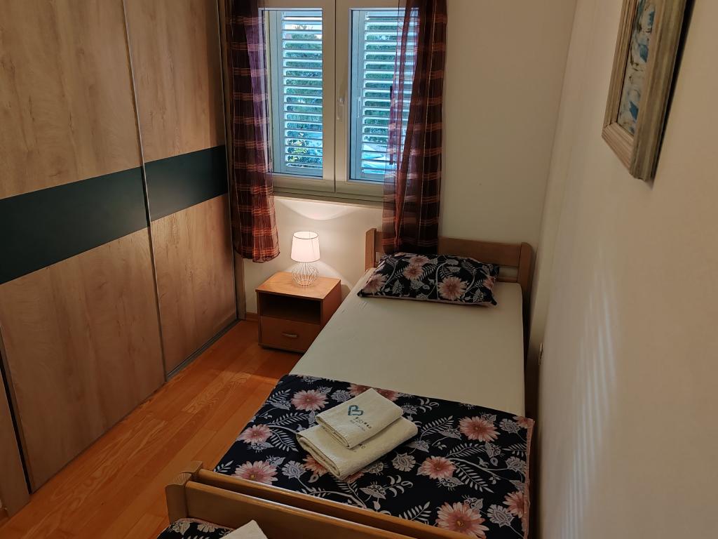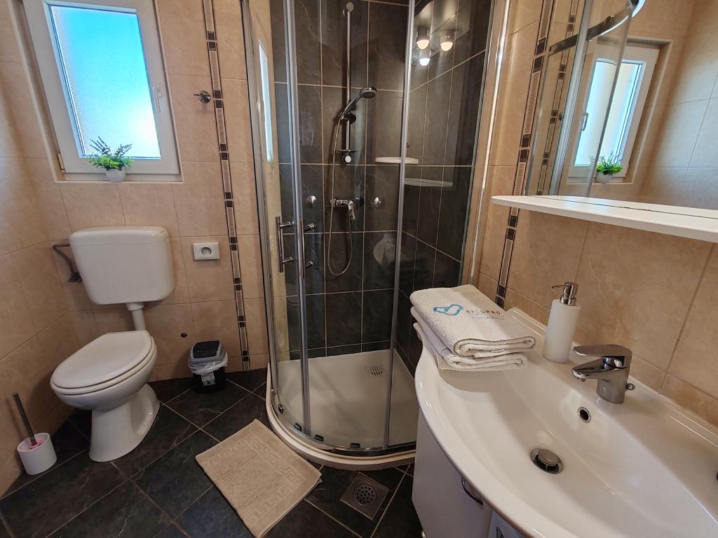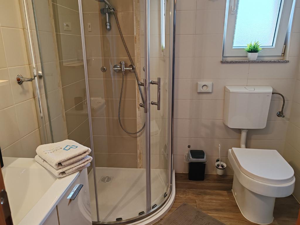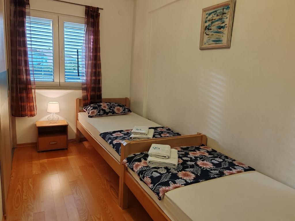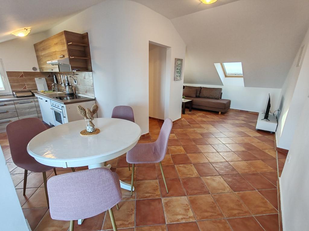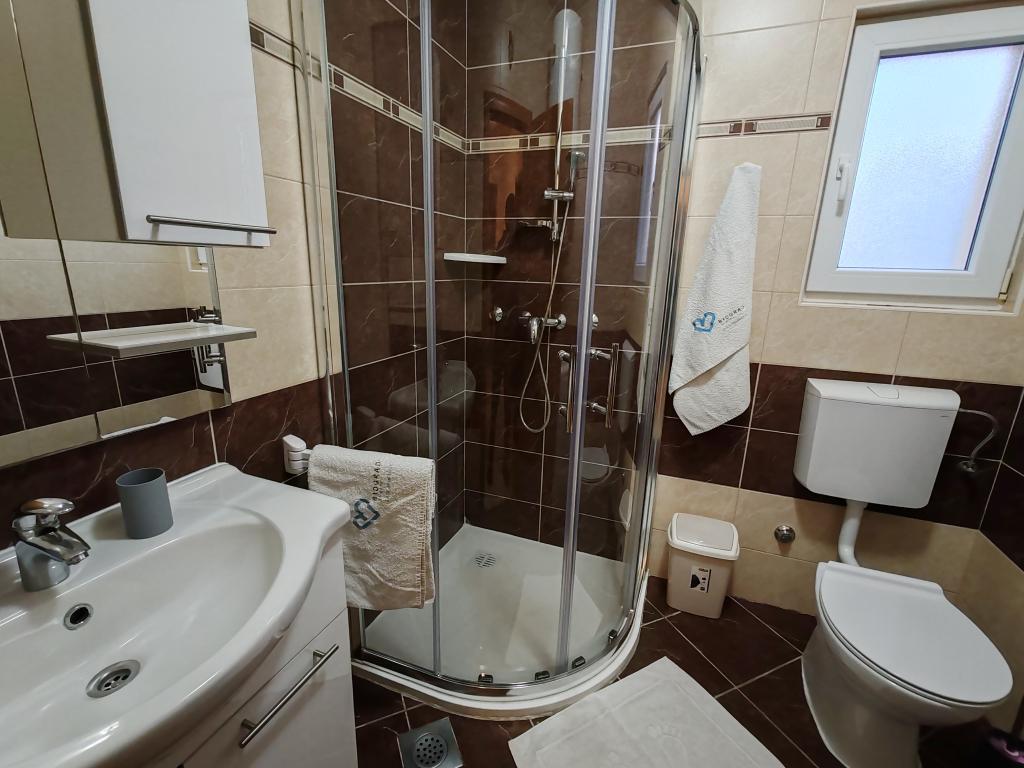 The apartments are located in a house located in the quiet settlement of Kumenat. It is surrounded by greenery and nature, only 250 meters from the sea. The facility consists of 5 apartments with a capacity of 4-6 people. All apartments are air-conditioned, with TV and a terrace with a view of the sea. Each apartment has a washing machine. Around the building, parking is provided for all guests, and if desired, the use of an outdoor grill.