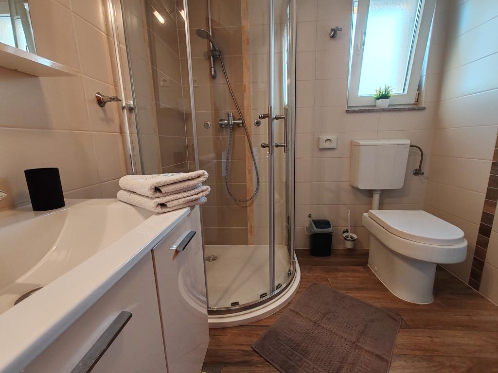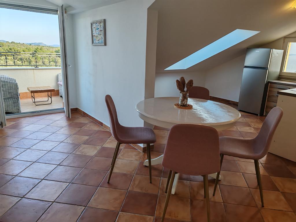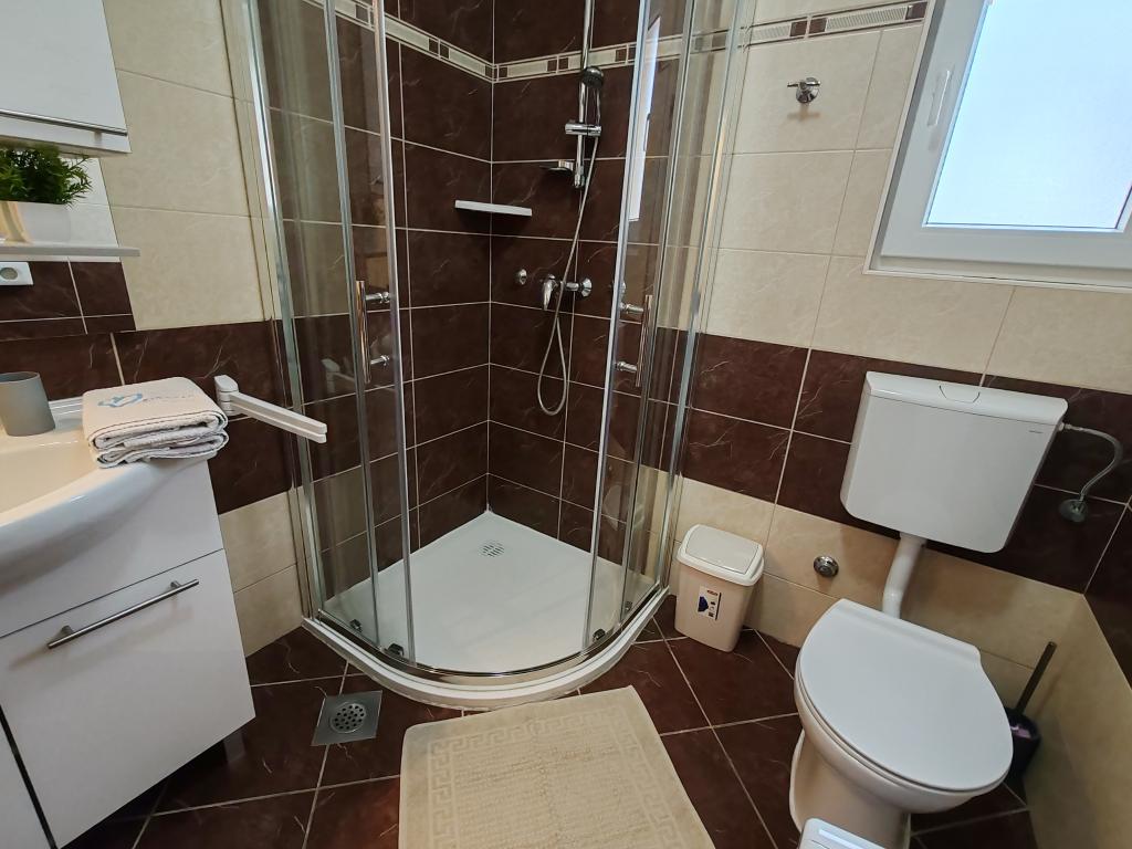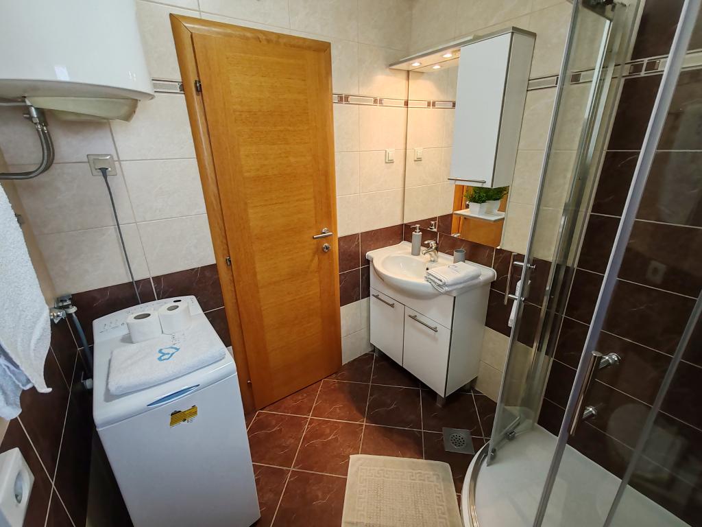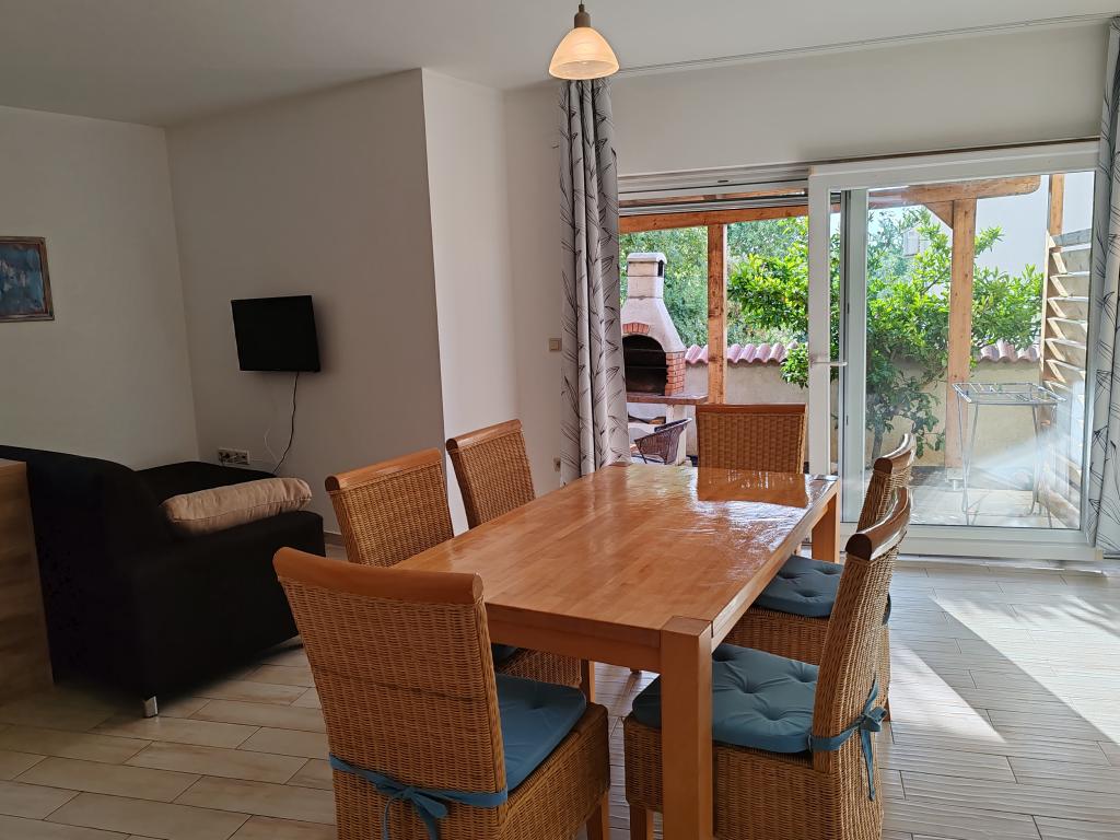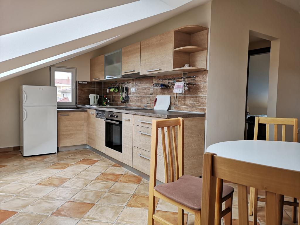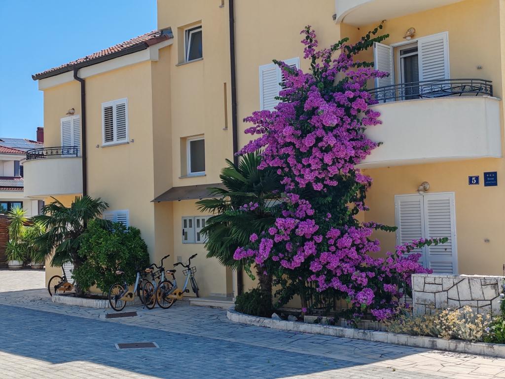 The apartments are located in a house located in the quiet settlement of Kumenat. It is surrounded by greenery and nature, only 250 meters from the sea. The facility consists of 5 apartments with a capacity of 4-6 people. All apartments are air-conditioned, with TV and a terrace with a view of the sea. Each apartment has a washing machine. Around the building, parking is provided for all guests, and if desired, the use of an outdoor grill.