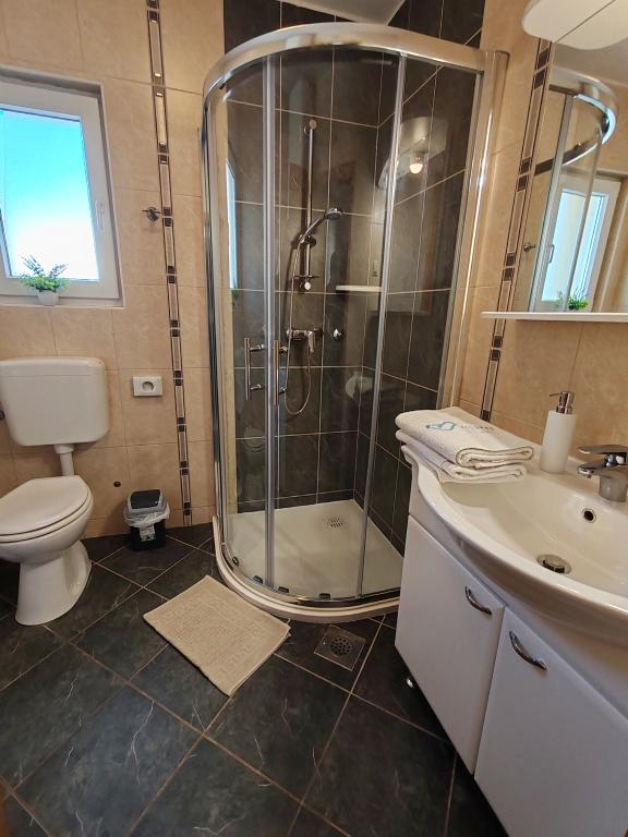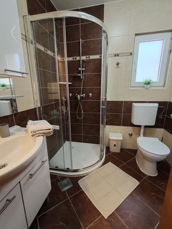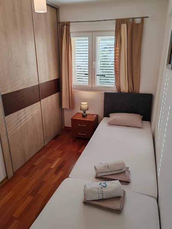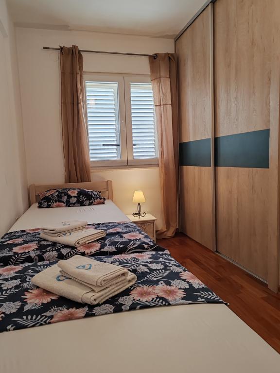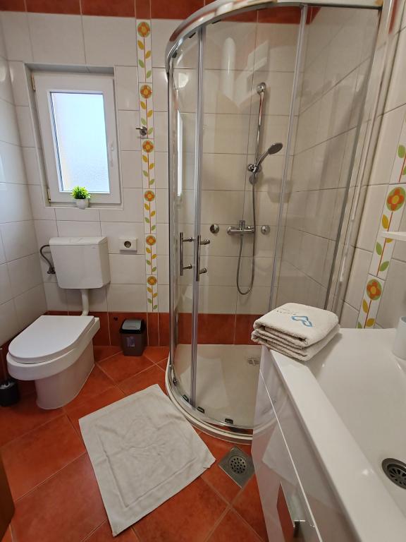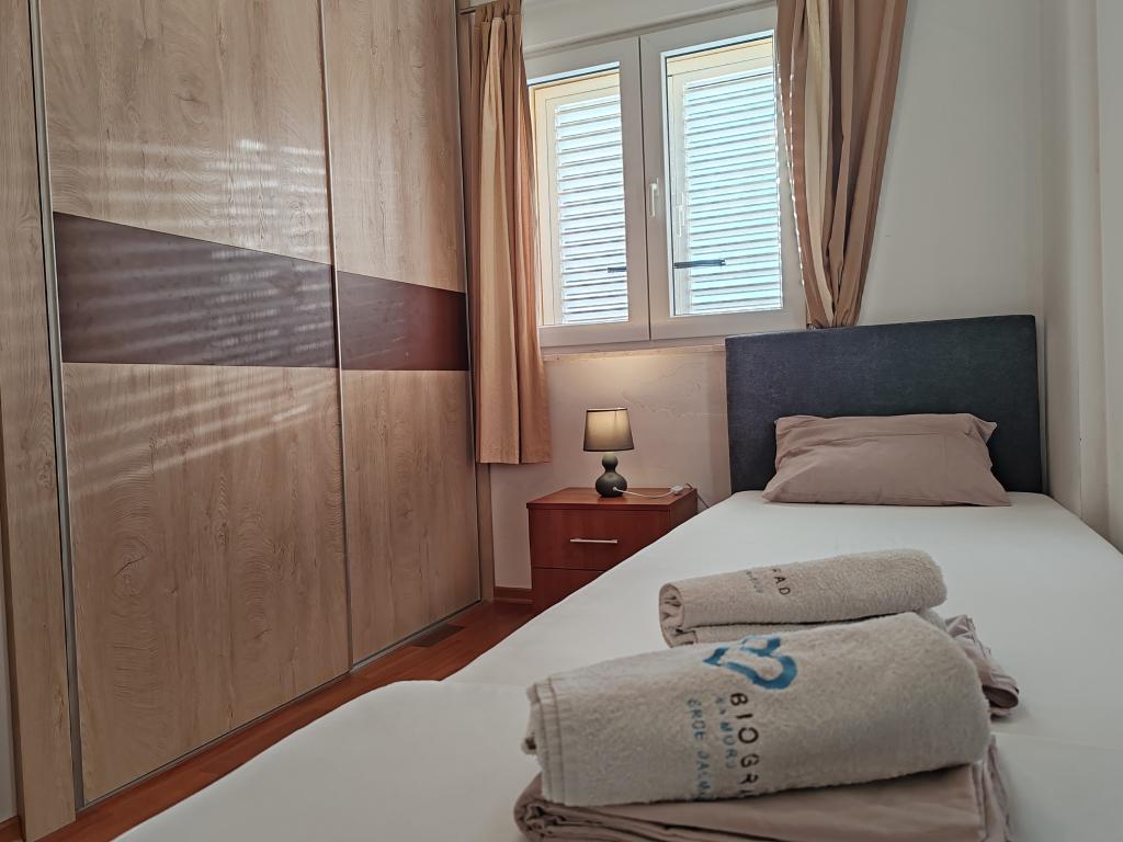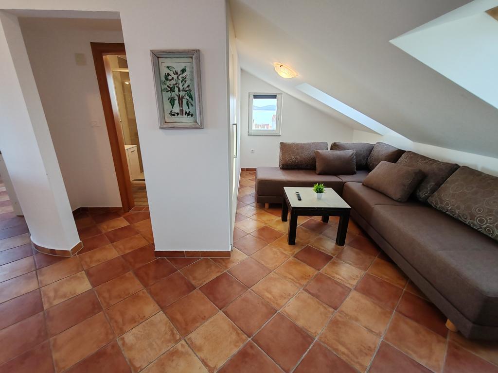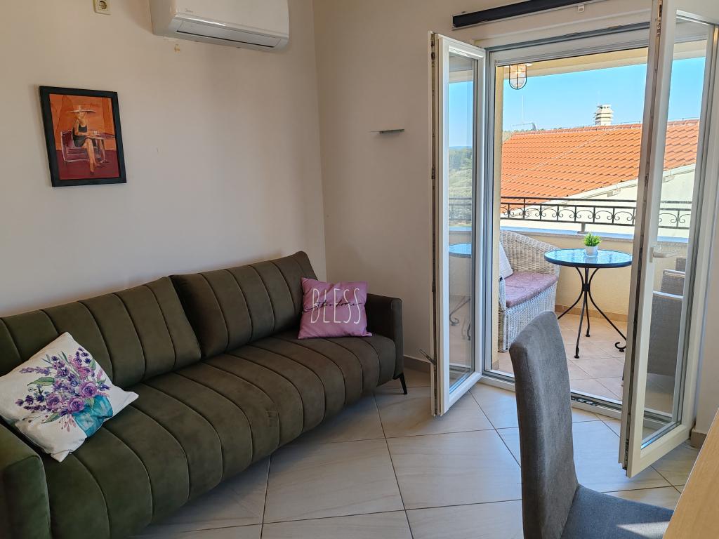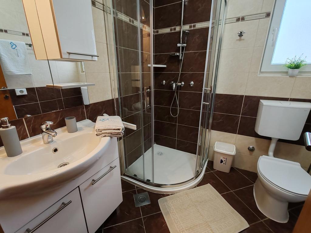 The apartments are located in a house located in the quiet settlement of Kumenat. It is surrounded by greenery and nature, only 250 meters from the sea. The facility consists of 5 apartments with a capacity of 4-6 people. All apartments are air-conditioned, with TV and a terrace with a view of the sea. Each apartment has a washing machine. Around the building, parking is provided for all guests, and if desired, the use of an outdoor grill.