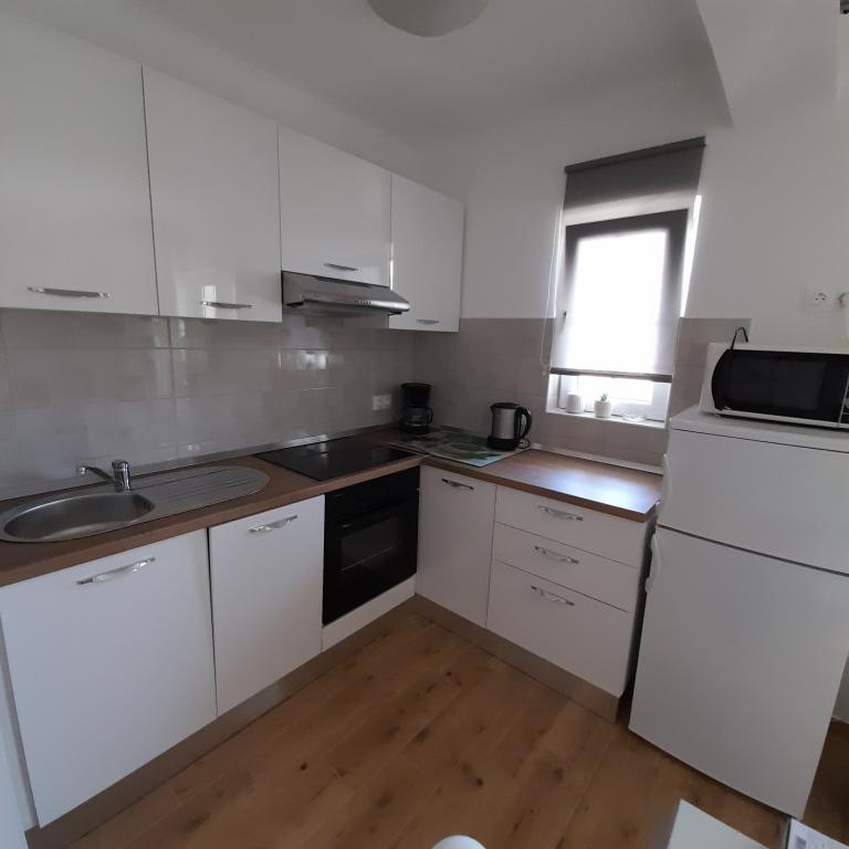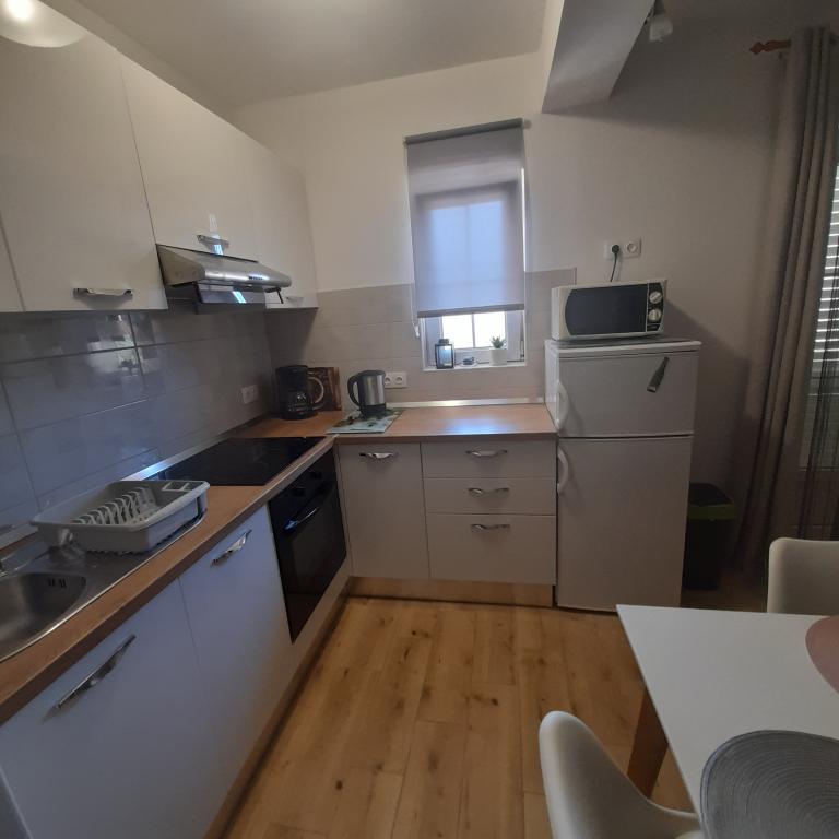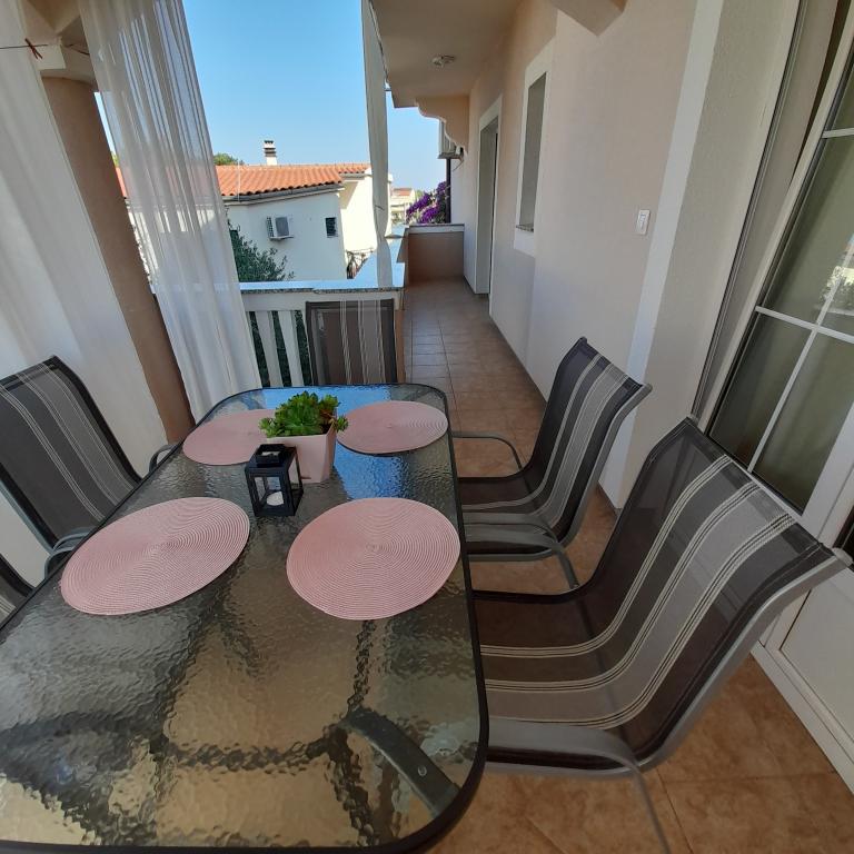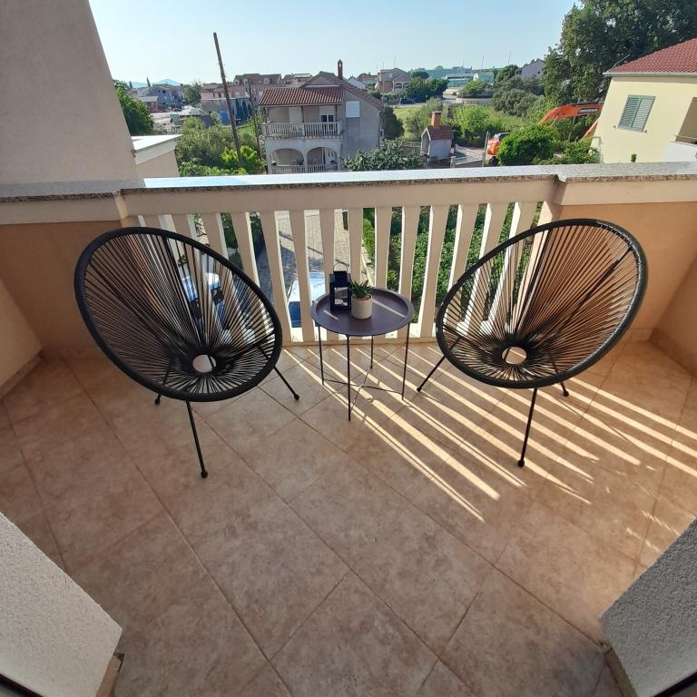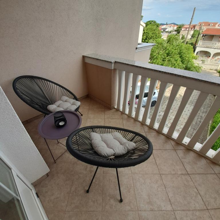 The apartments offer comfortable accommodation in two spacious apartments with large terraces. They are located in a family house in a newly renovated building, in a street without traffic, away from city noise. Accommodation is suitable for family vacations, holidays with groups of friends as well as for active vacations in Biograd. It is a ten minute walk to Dražice and Solina beaches, and also to the city center.