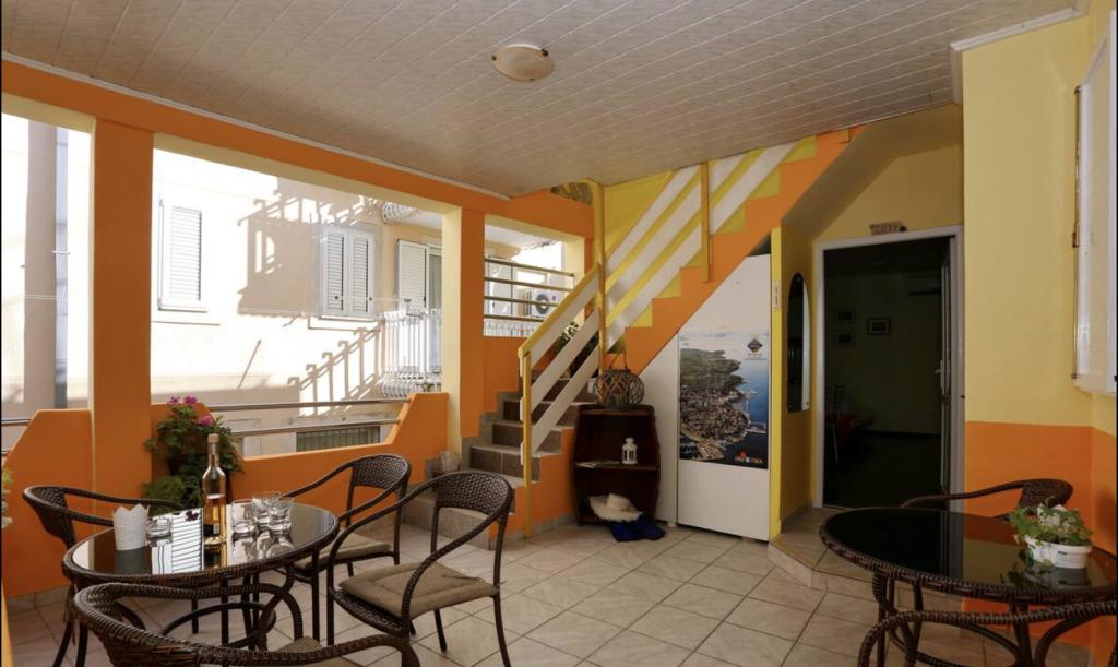 Read more Accommodation unitsThe possibility of organizing meals with an additional charge of 13 eur/day for half board, per person. Due to our location in the center, parking is city-owned and is charged at €60/week or €10/day. With this ticket, you can park all over Biograd. Advance payment of 20% to a giro account and the remaining amount in cash, upon arrival or by agreement. Check in at 1 p.m., check out at 10 a.m. or by arrangement. Please contact us for detailed information and possible discounts.