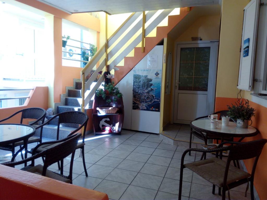 In the yellow apartment we stayed 5 days during the Slovenian weekend. the apartment was the ideal size for us three and in an ideal location for activities. the stage was immediately behind the adjacent building! Our apartment did not have a direct view of the sea but is seen from the shared terrace in front of the apartment. the sea and the shore are 5 steps in front of the house. clean both in and out of the house. nice, made with our own hands, which we appreciate. and a very enjoyable price for our first summer vacation!