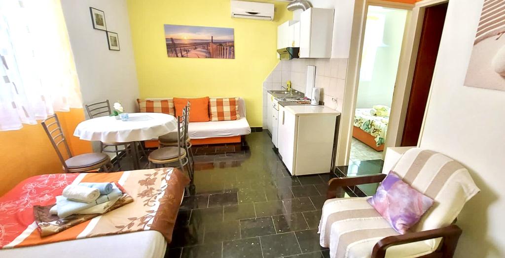 My husband, children and I spent 10 days in the yellow apartment. Caterers were greeted with a drink and a smile, not be seen from the terrace and children have remained enthusiastic sandy beach. The apartment is very clean, has a complete kitchen and restaurant owners have offered us to a cookout on the patio with a view of the sunset. We took the opportunity to go on an excursion to the Kornati islands. I recommend the apartment and would like to thank Mr. and Mrs. Kati Miri.