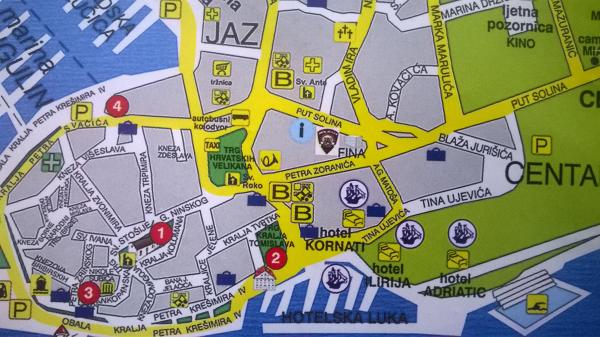 The apartments are located in the very center of Biograd, 10 minutes walk to the beach. The apartments are all air-conditioned. The bus station is 100m from the apartments, so those traveling that way have everything nearby. They can also leave their belongings with us until the bus arrives, the same goes for guests arriving by plane. We offer transportation from Zemunik airport and back for a fee. All apartments and studios have a balcony or terrace with chairs and an awning. The house is in three parts and is entered through one entrance with the same courtyard.