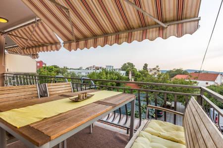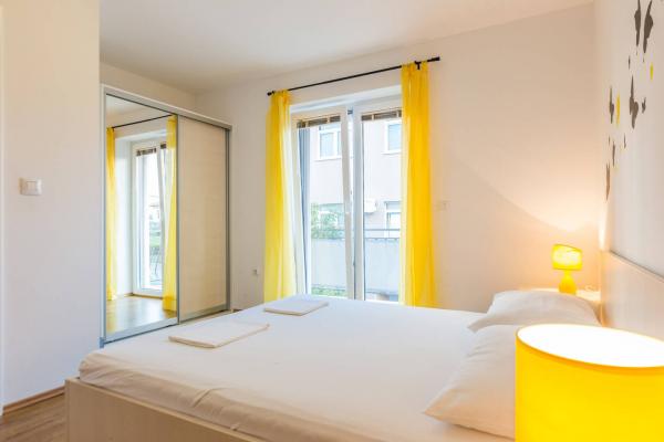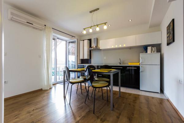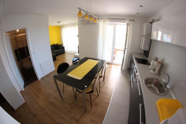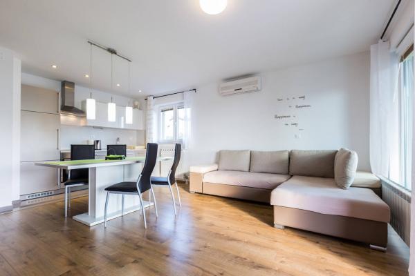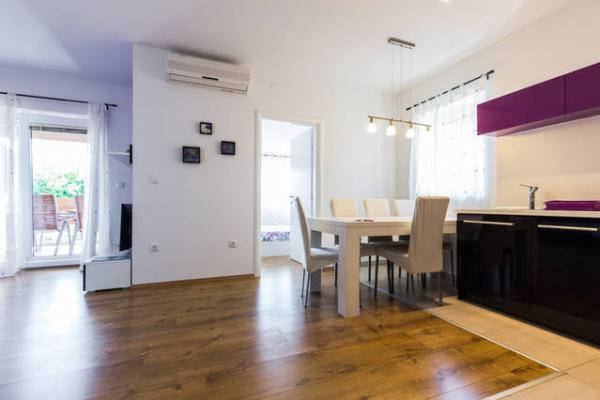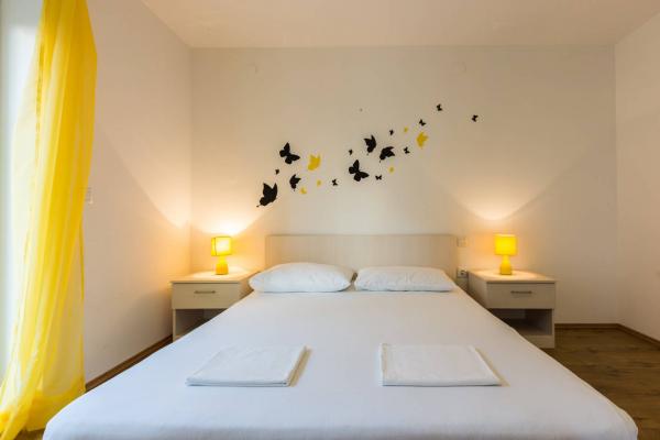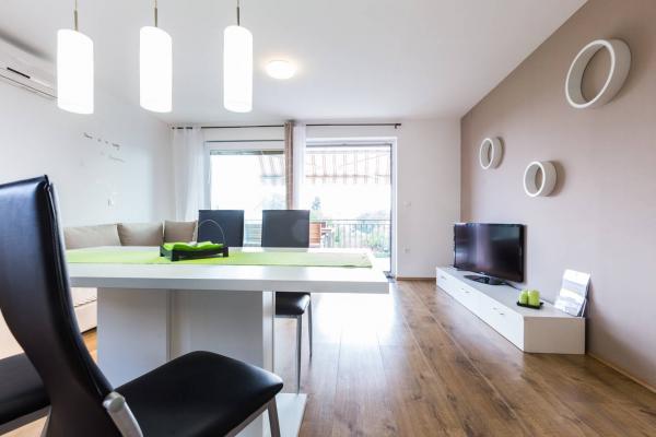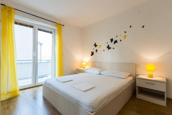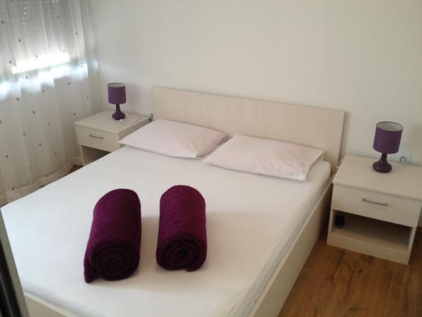 The apartment is unbelievably beautiful and comfortable, with so much new and useful equipment (dishwasher, coffee maker, oven, big fridge with freezer, air condition, tv, wi-fi…). Everything is clean and beautifully decorated. There are also two spacious balconies. The location of the apartment is great – you can reach town center in 5 minutes by foot, the marina and beach Bošana are also very close, but there is no noise so you can enjoy your holidays in peace through day and night. Grocery store is just around the corner. The owners are very kind, they provide fresh towels every two or three days. I recommend staying here!